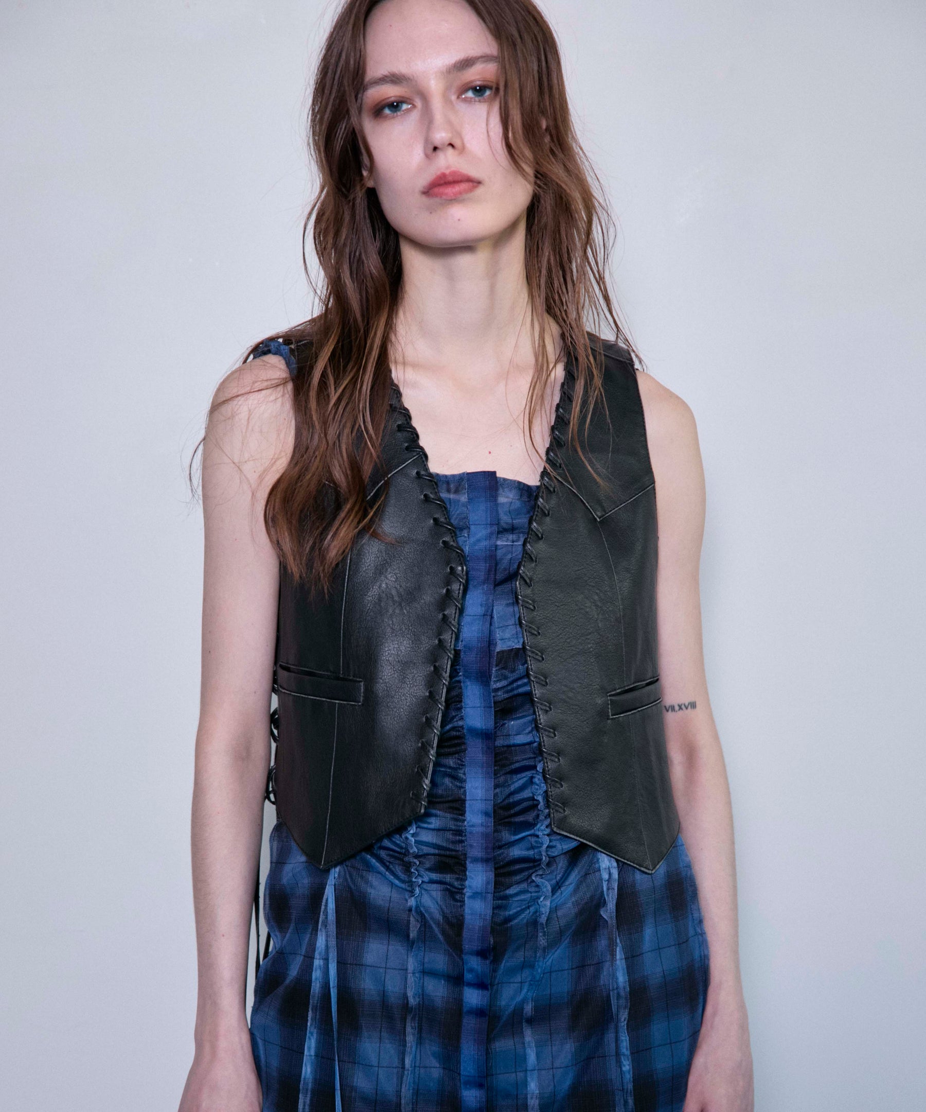 【SALE】Lace Up Short Length Vegan Leather Vest