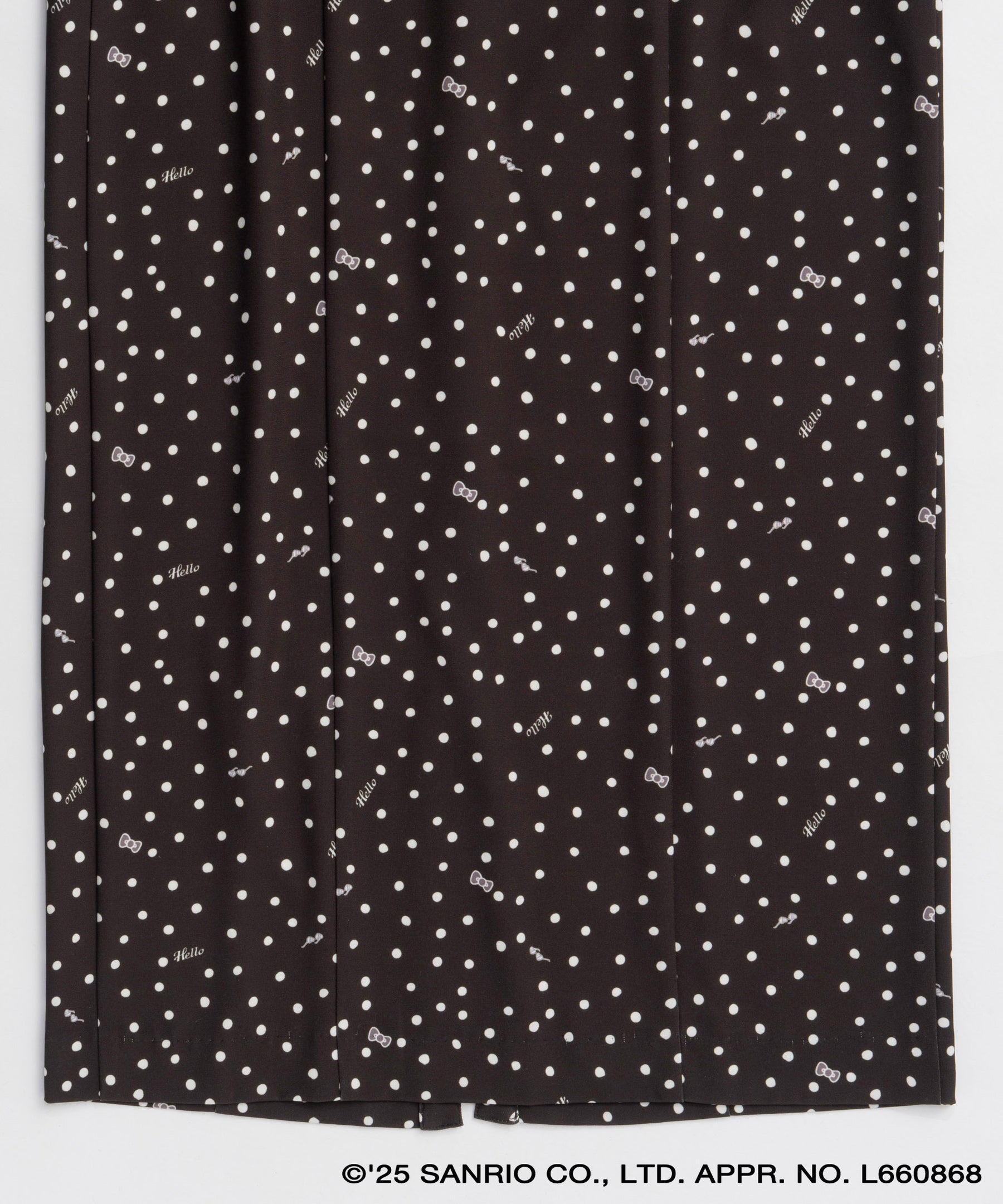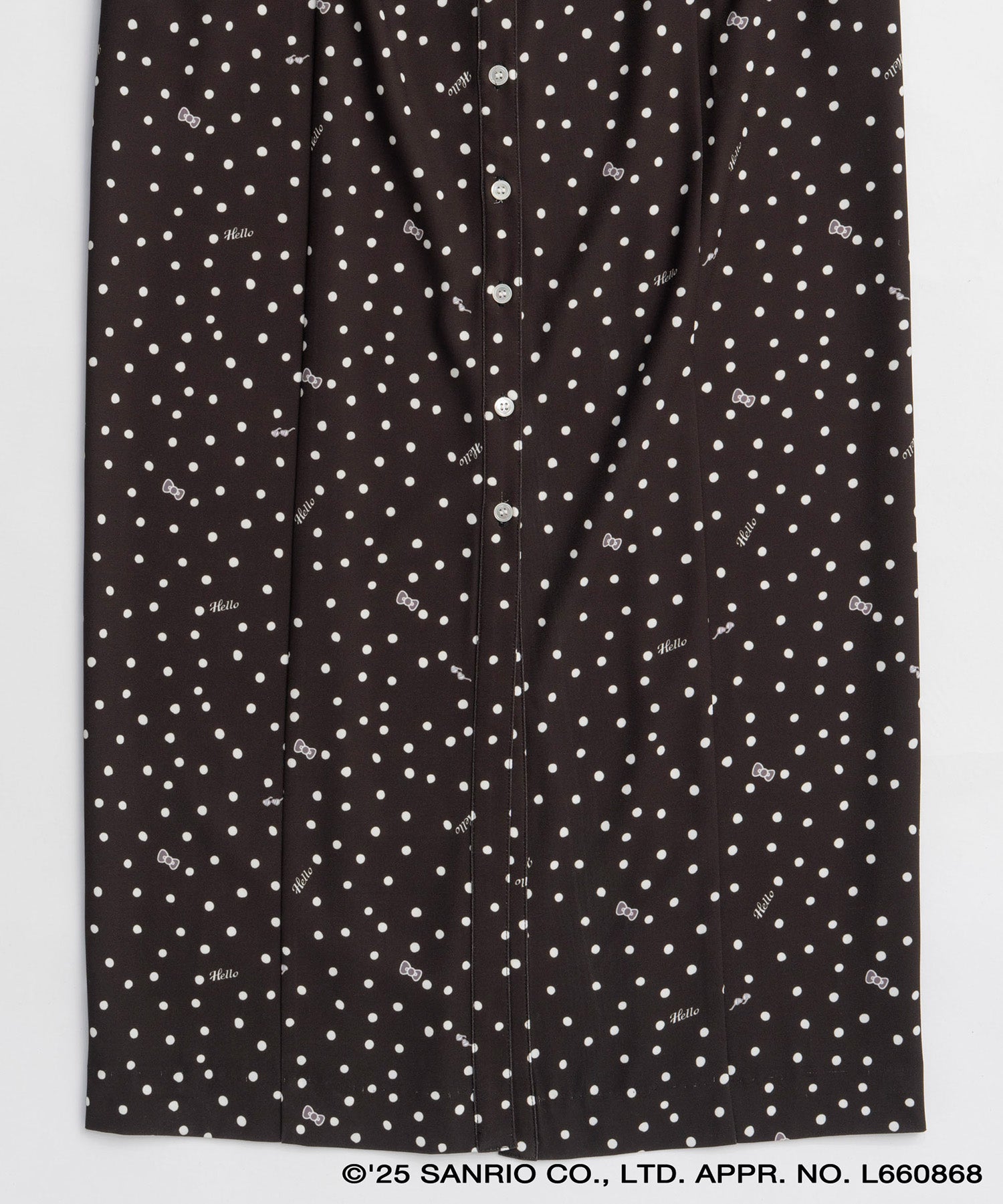 オリジナルのランダムドットの中にHELLOのロゴとHELLO KITTYのハート型のサングラスがランダムに配置されたオリジナルテキスタイルを使用し、レースとのドッキングで女性らしいワンピースに仕上げました。