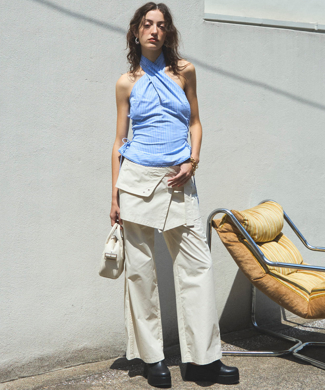 程よい肌見せが抜け感を生み出し、1枚でスタイリングが完成する主役級アイテムです。