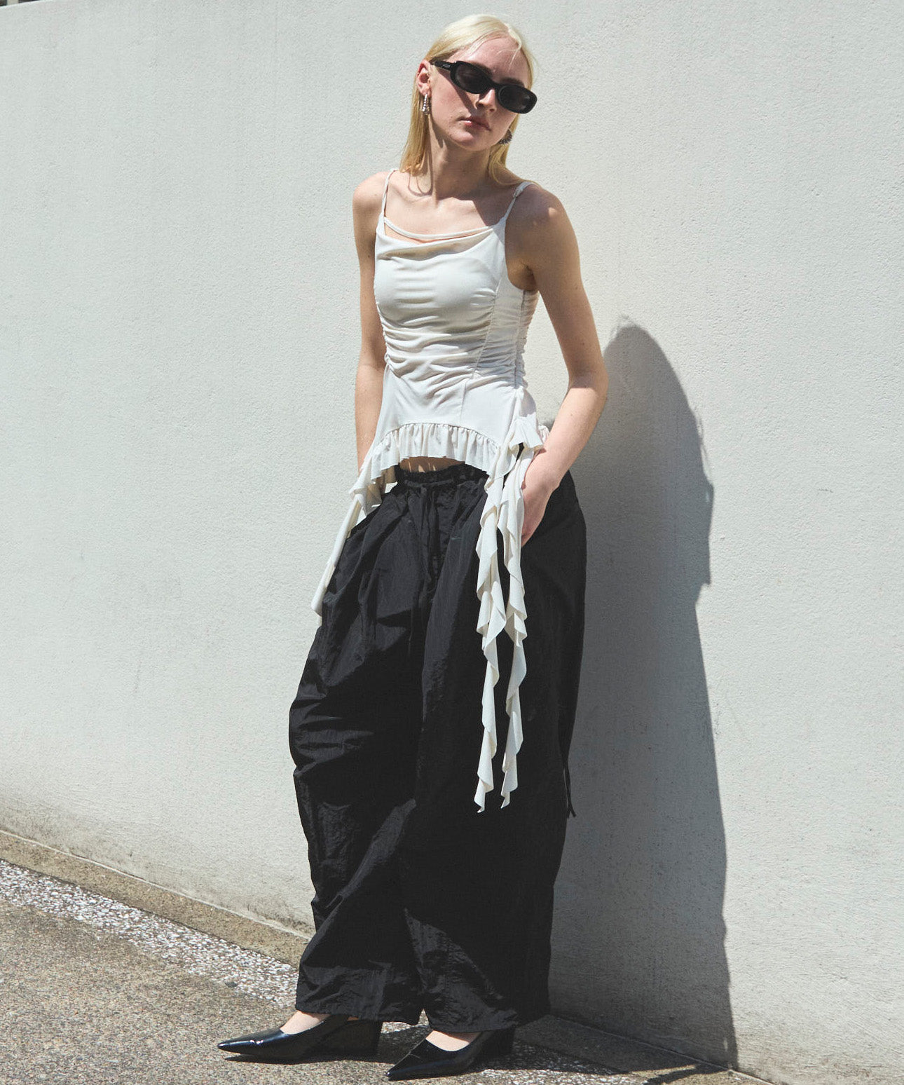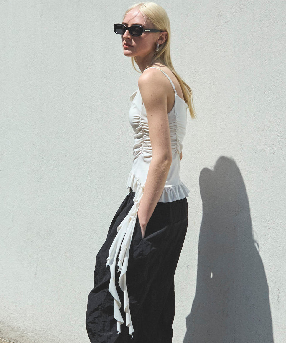 ・胸パッドは取り外し可能なので、Tシャツなどとのレイヤードスタイリングも◎