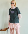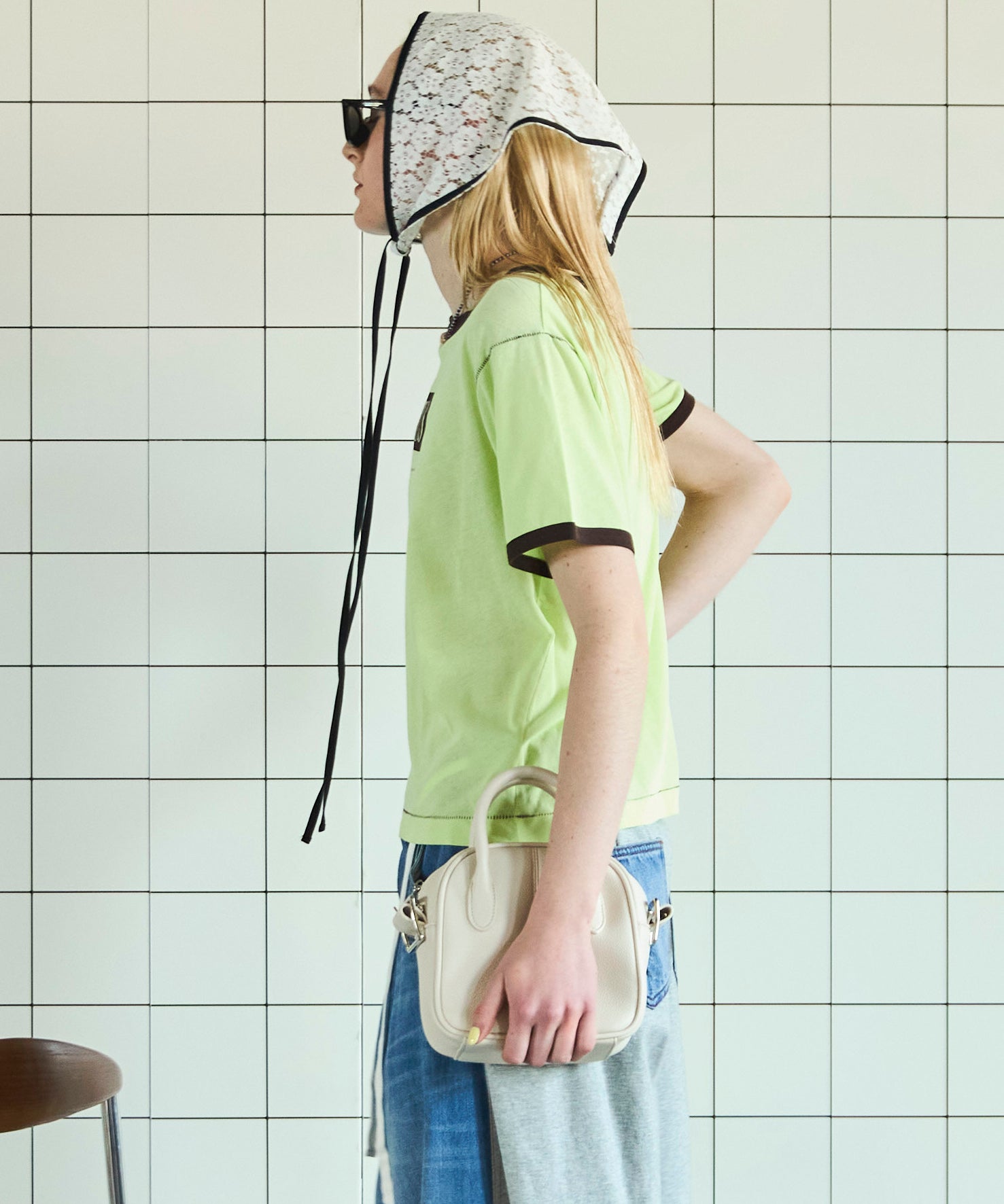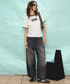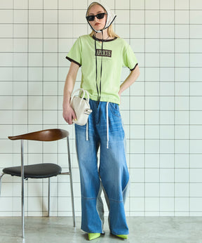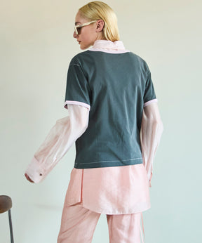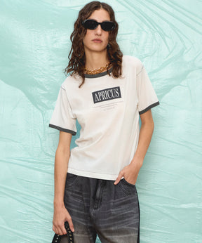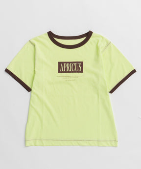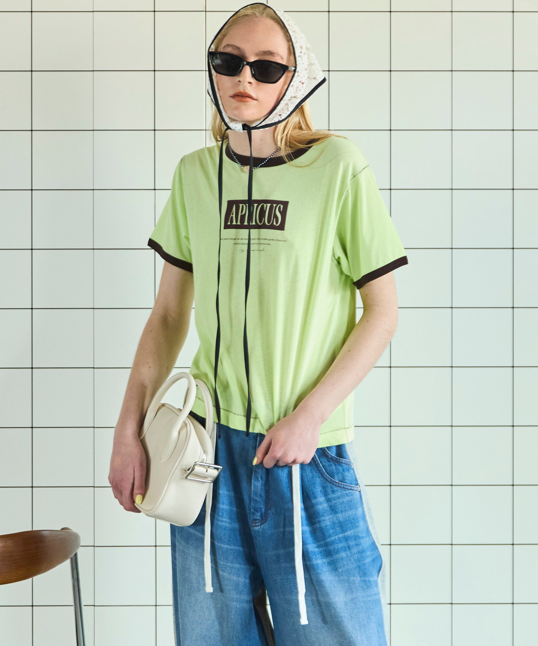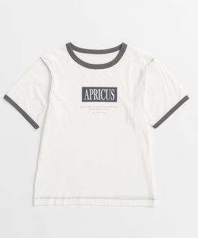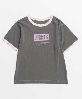 ・襟と袖口が配色にトリミングされたリンガーTEE。