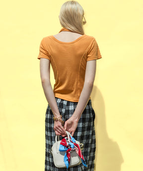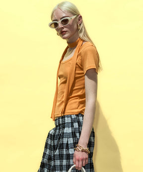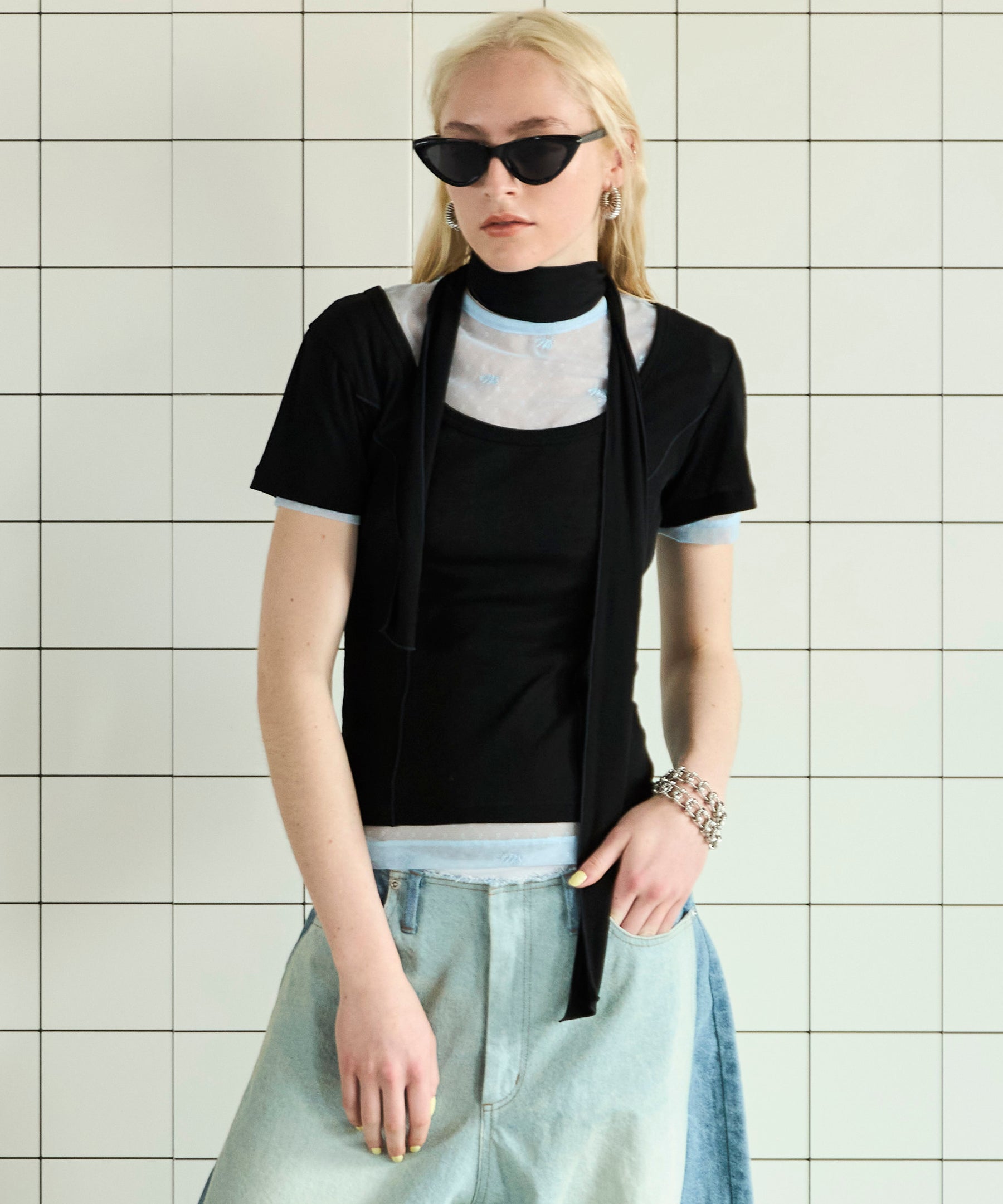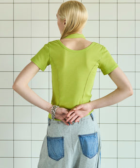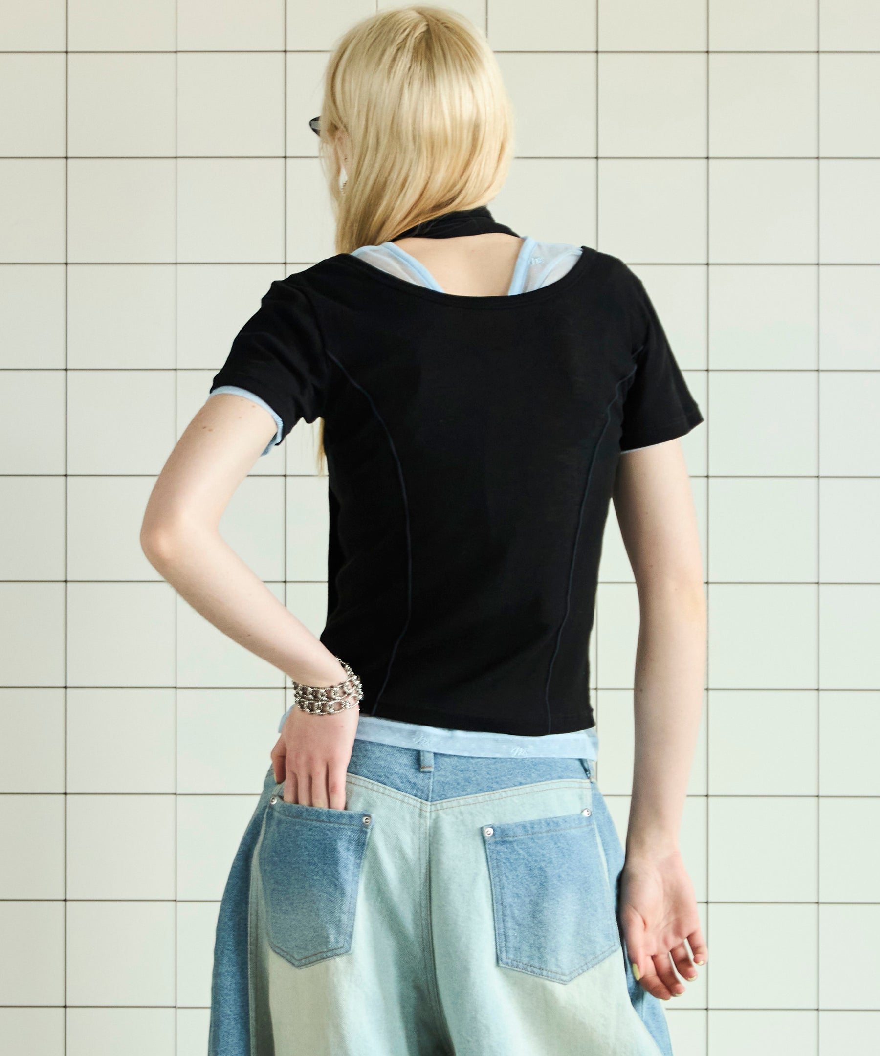 ・クルーネックとUネックの前後2WAYで着用いただけるコンパクトなTシャツ。