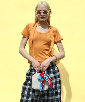 ・トレンドのスカーフはUネック側で着用いただくのがオススメ。
