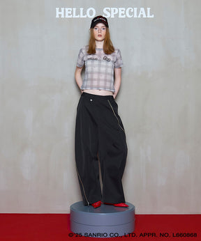 チェックの中に「HELLO KITTY」のリボンをランダムにちりばめたオリジナルグラフィック。