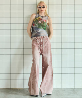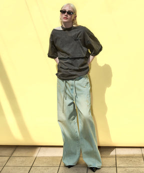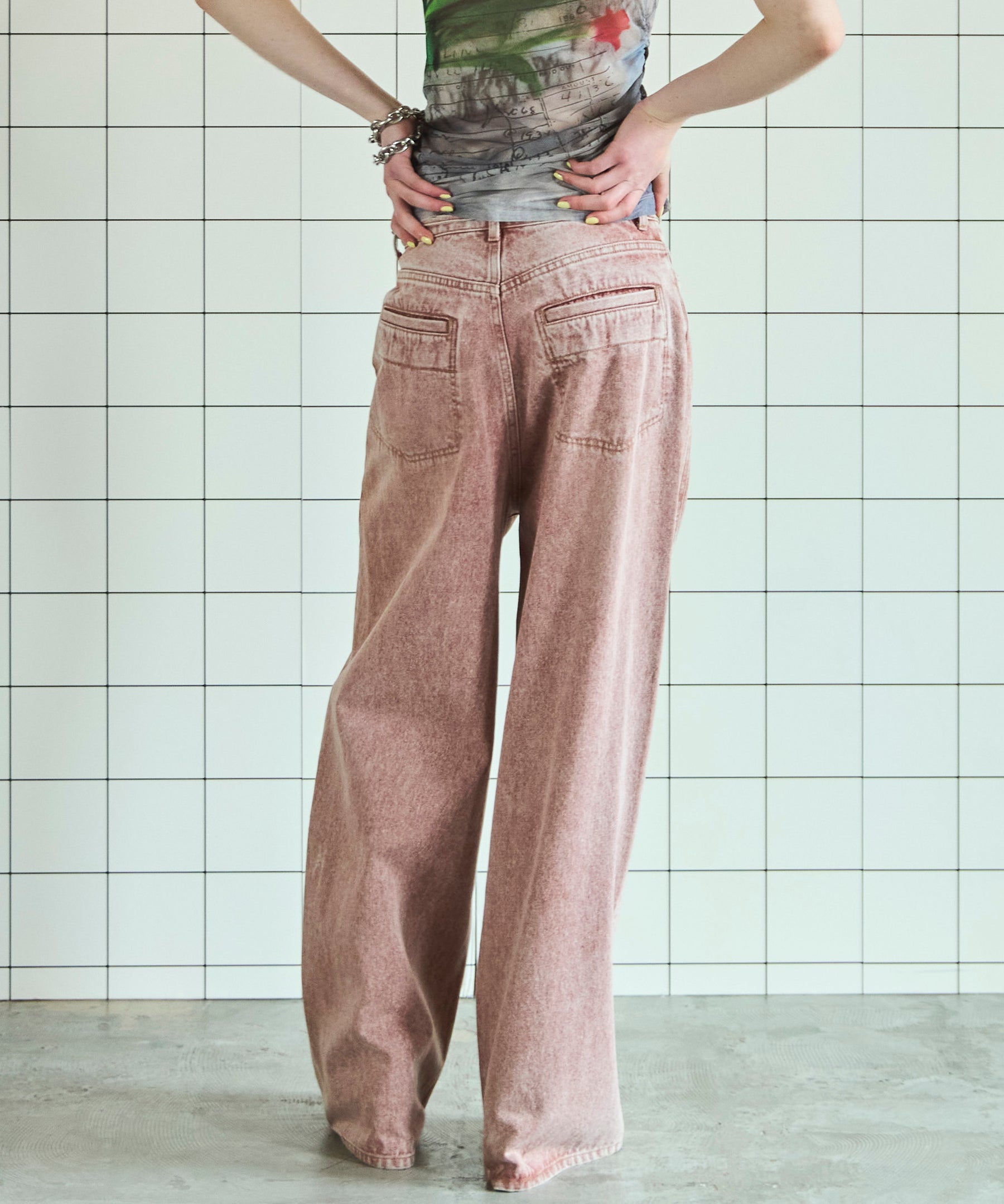・ローウエストが今年らしい抜け感のあるワイドシルエットのデニムパンツ。さりげなく入っているグラインダーやブラスト
