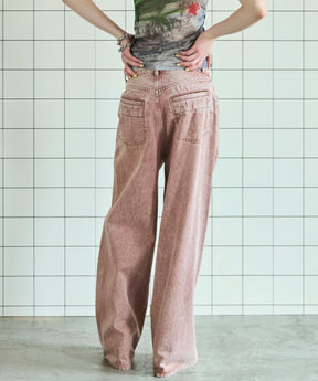 インディゴデニムの色を落とし、さらにオーバーダイでメランジ感のある独特な色合いに。