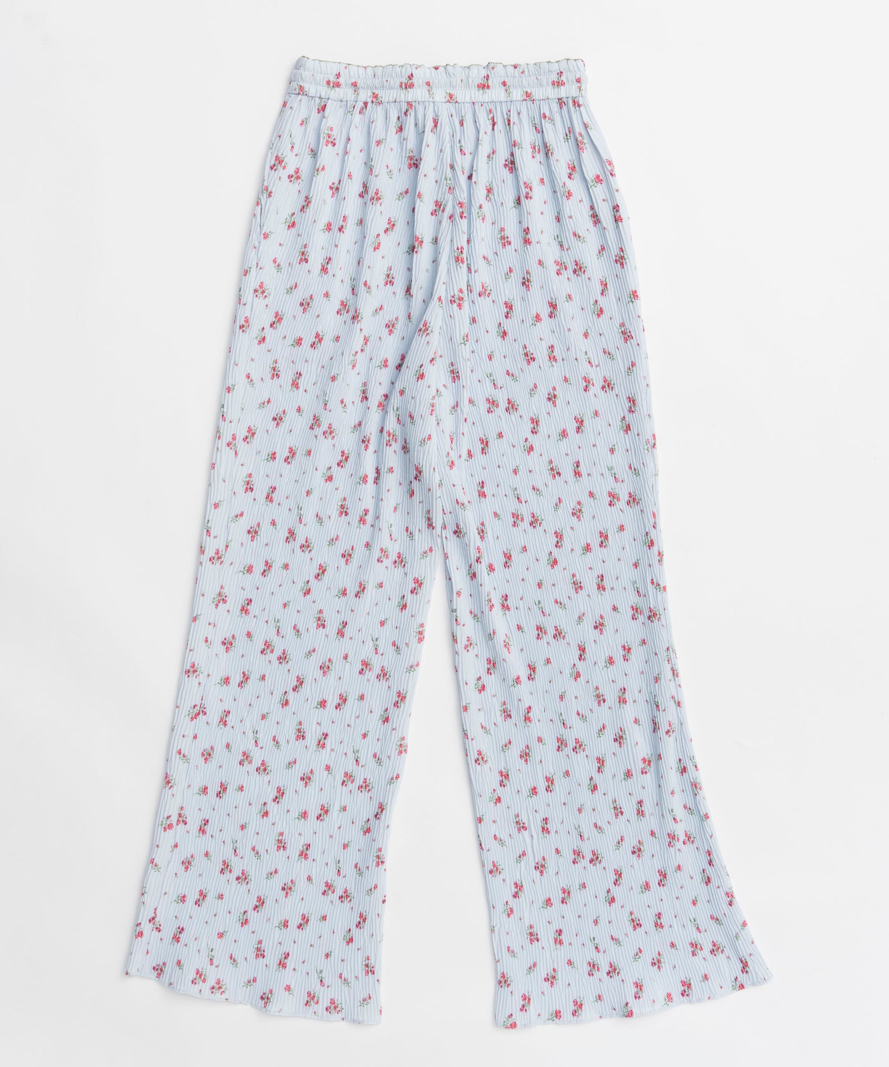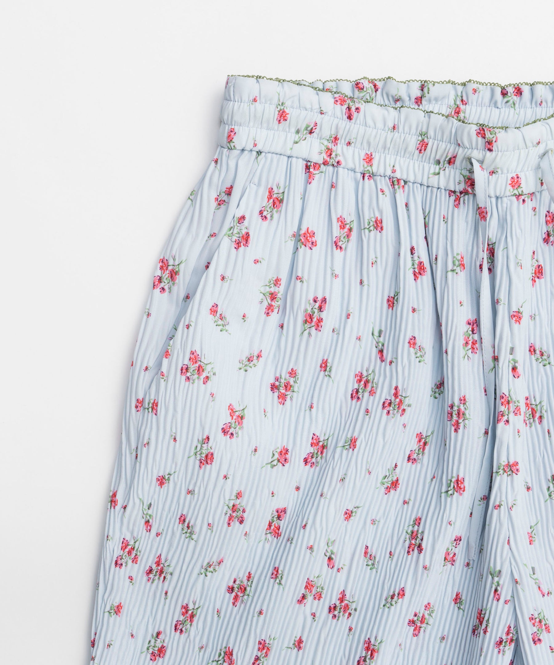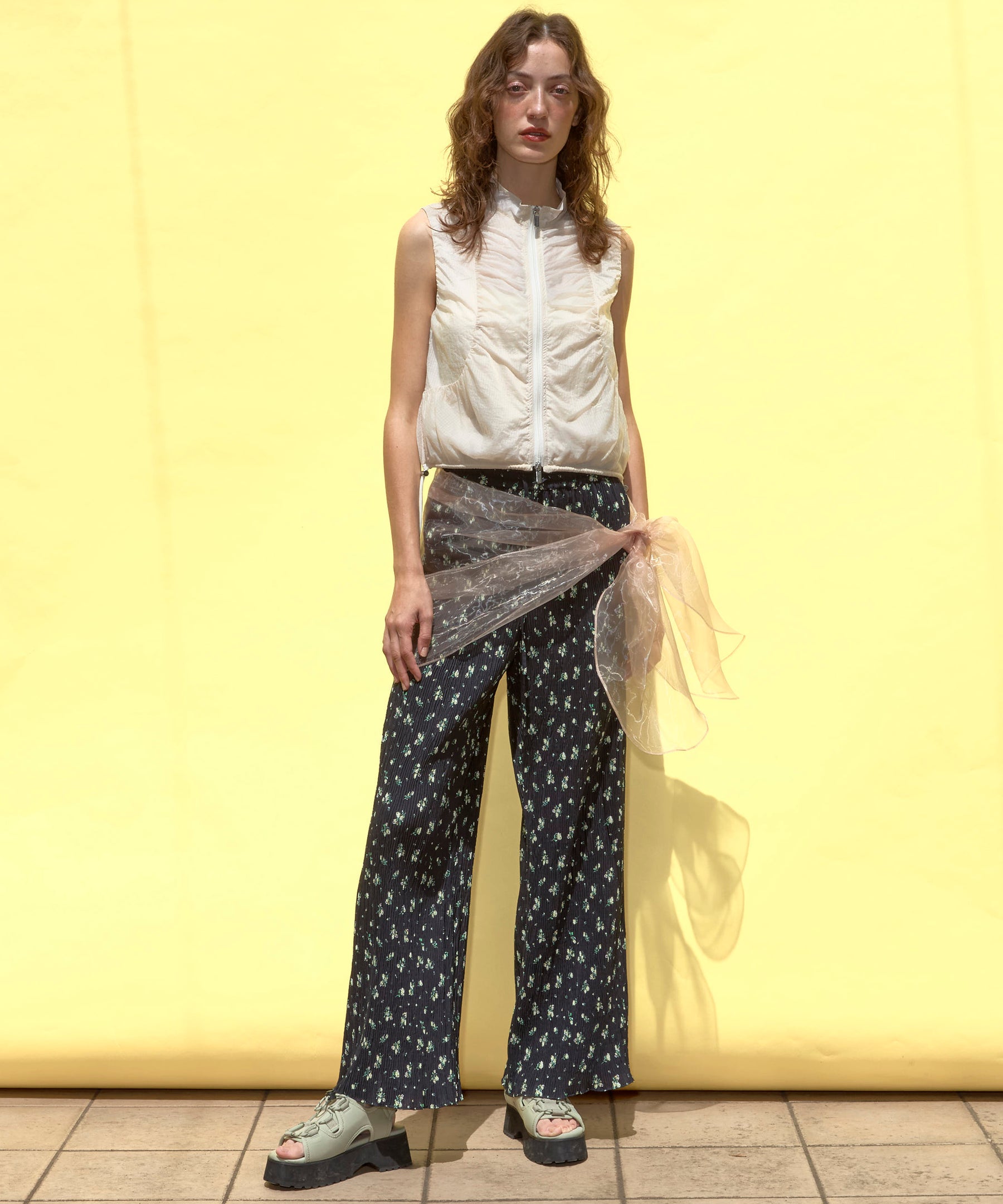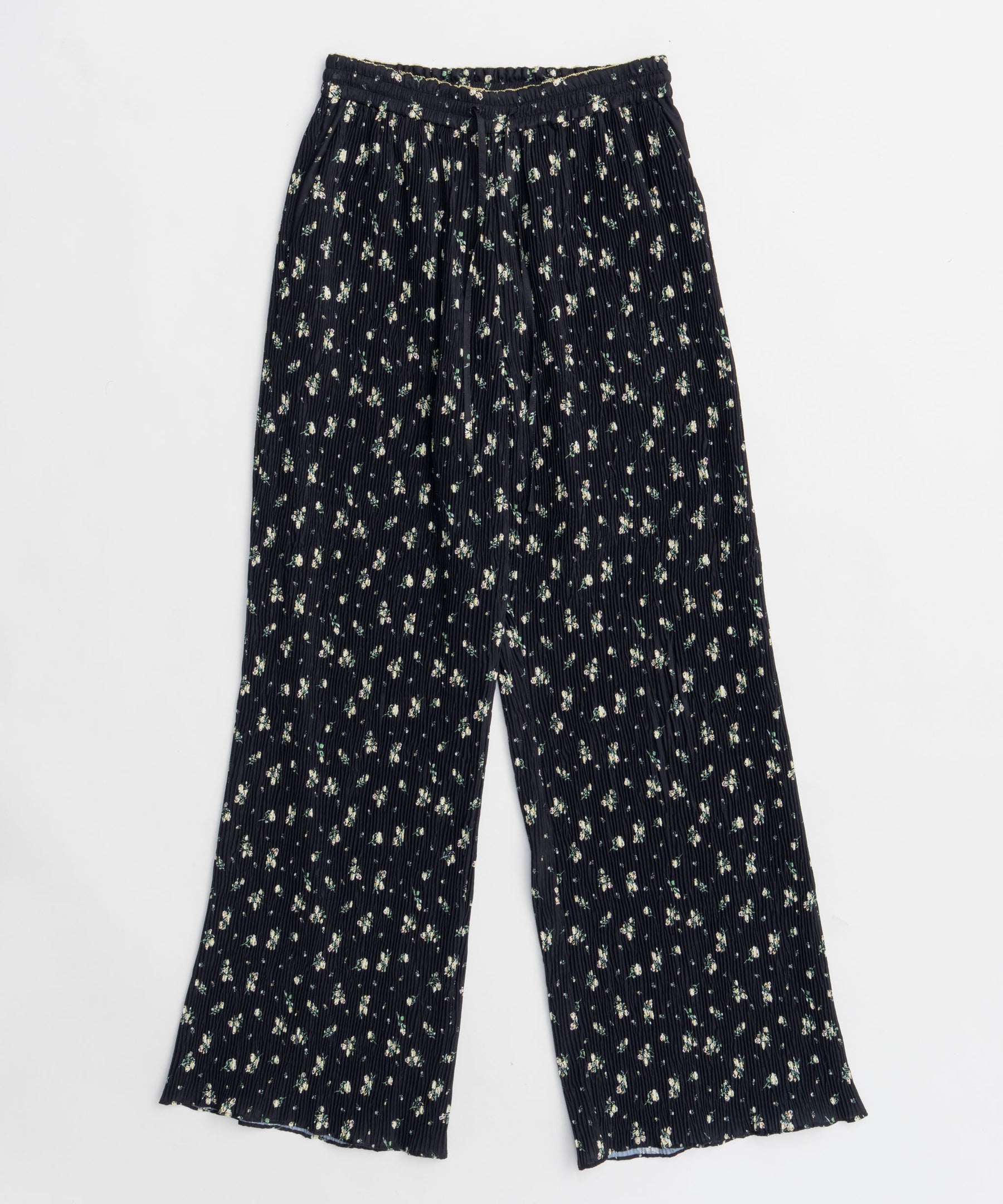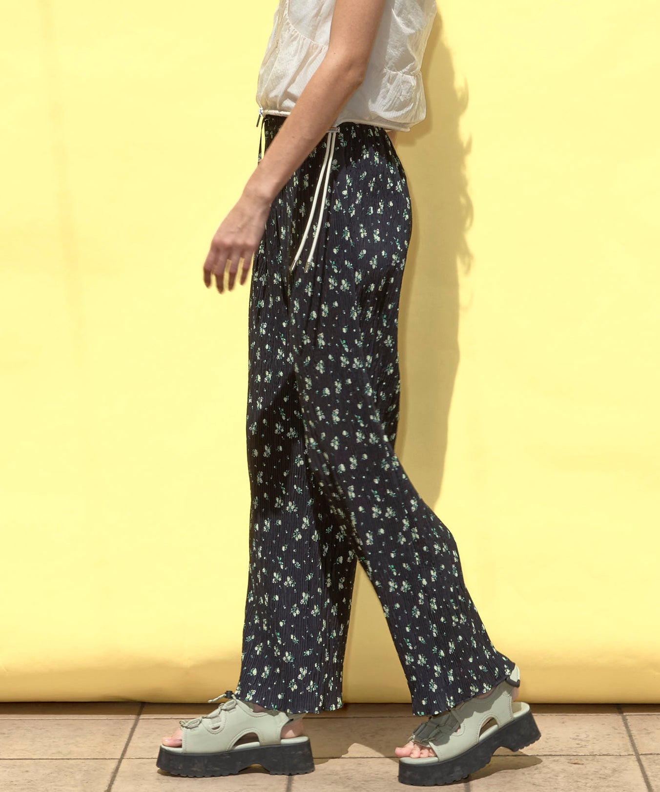 薄手のデシンにオリジナルの花柄プリントをし、クリスタルプリーツをかけています。