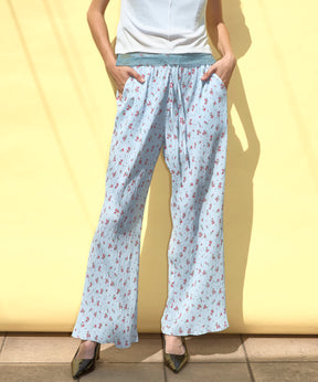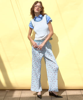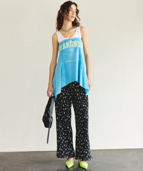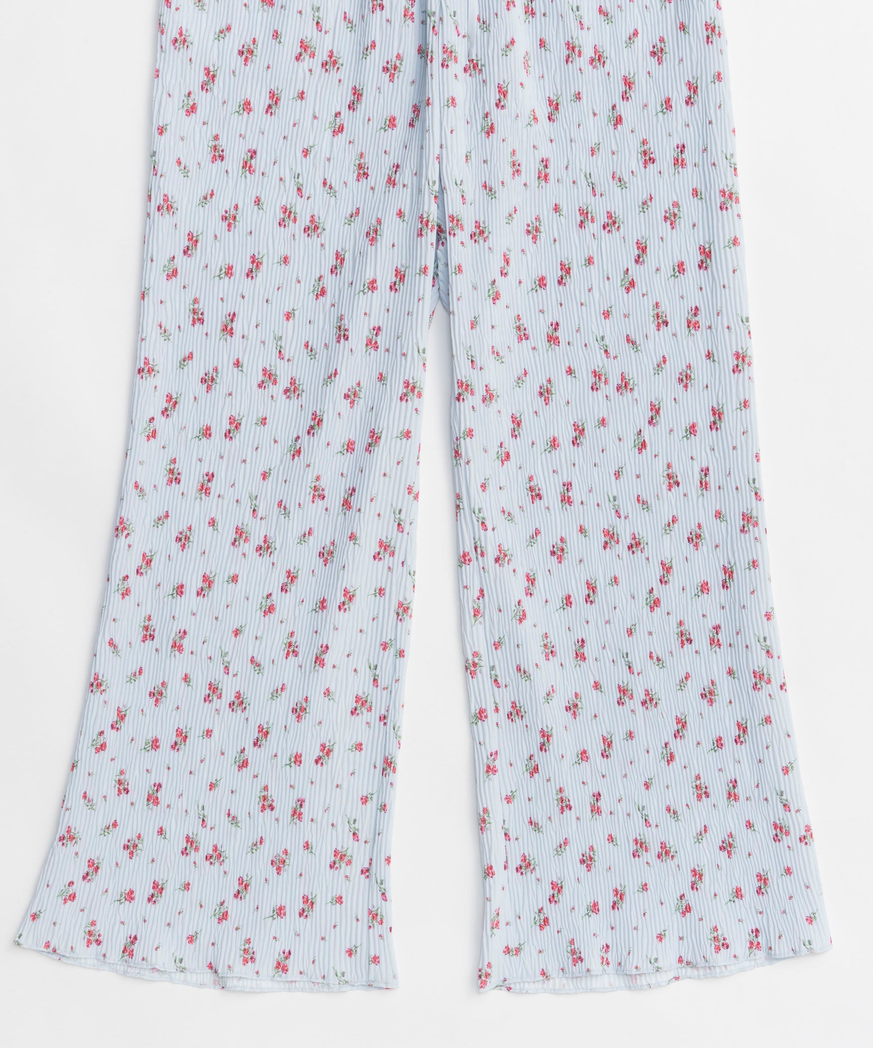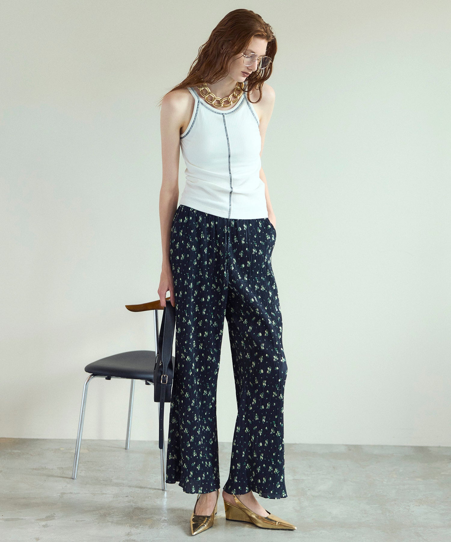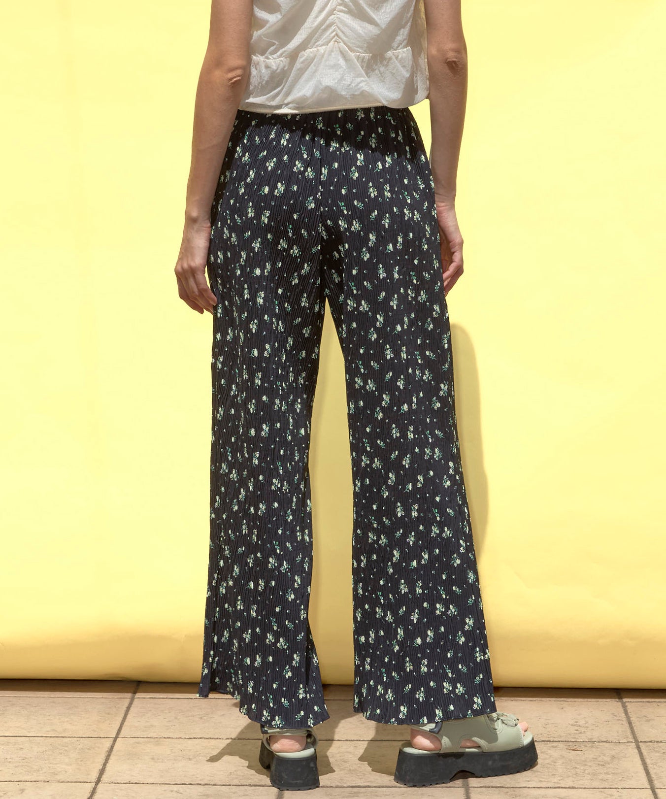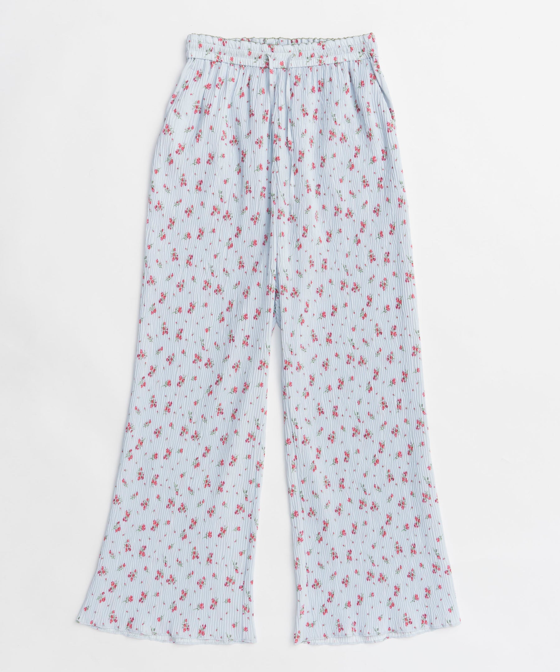 薄手のデシンにオリジナルの花柄プリントをし、クリスタルプリーツをかけています。
