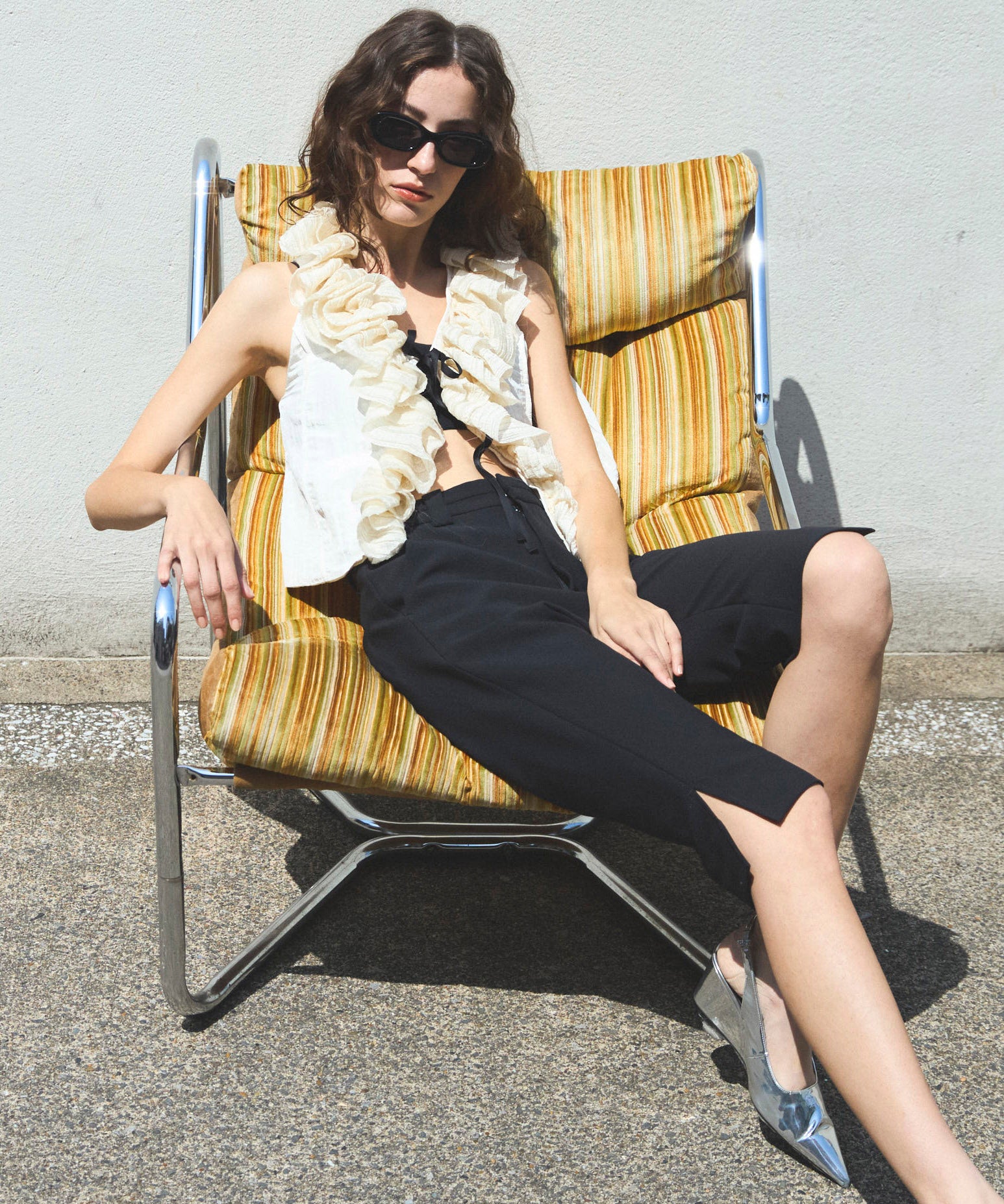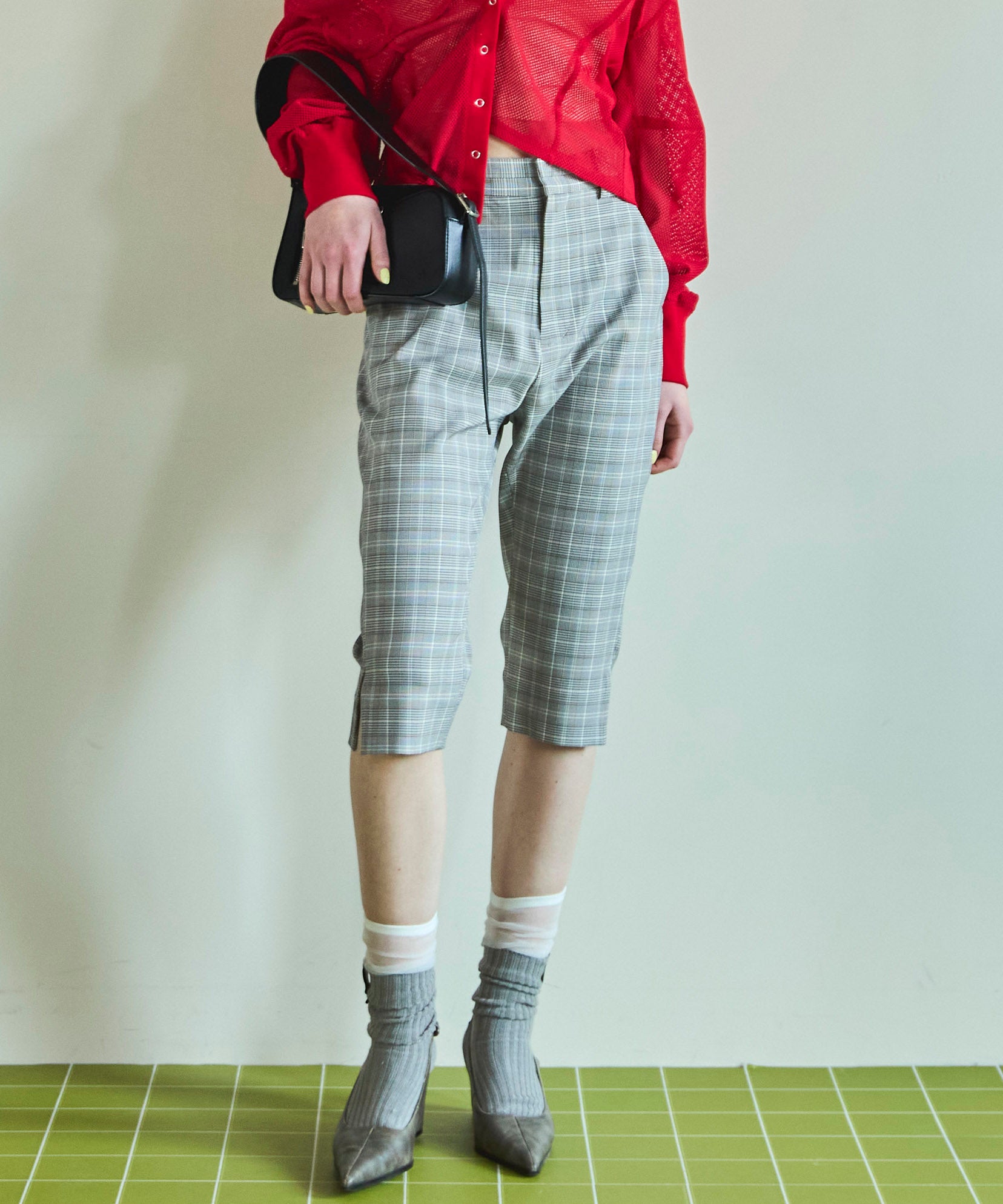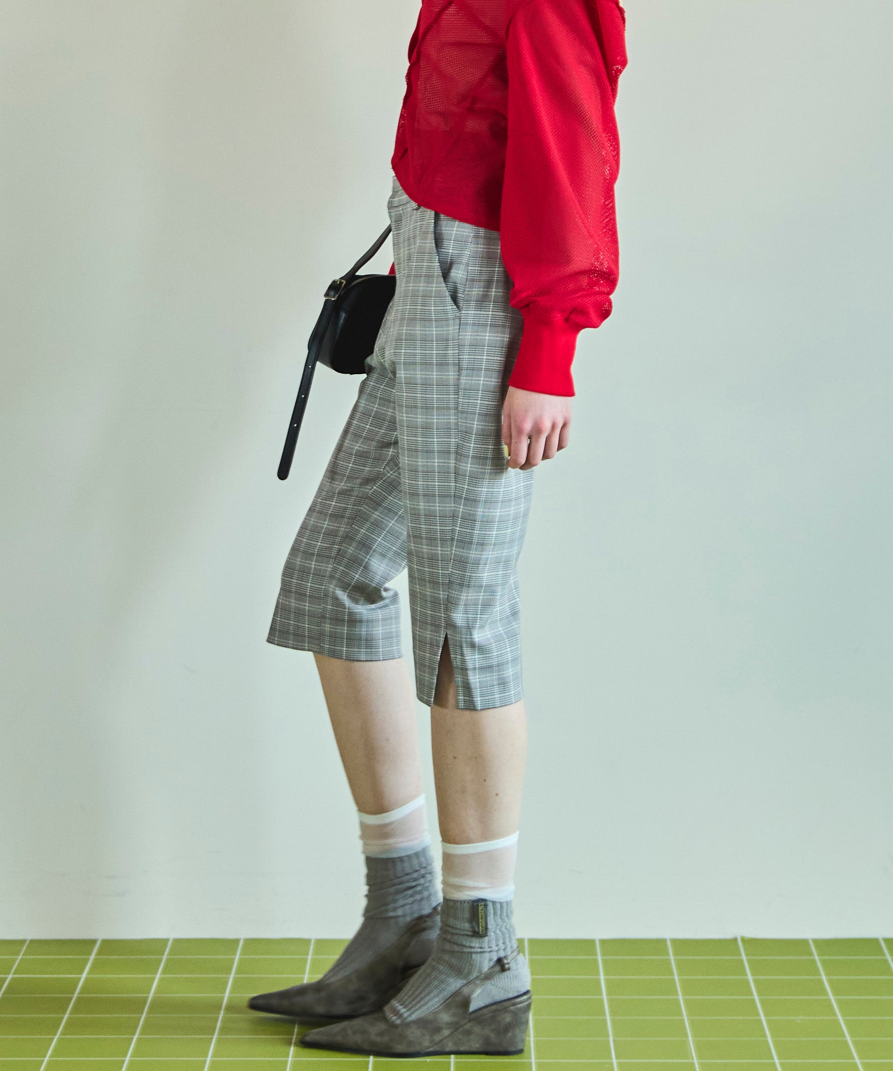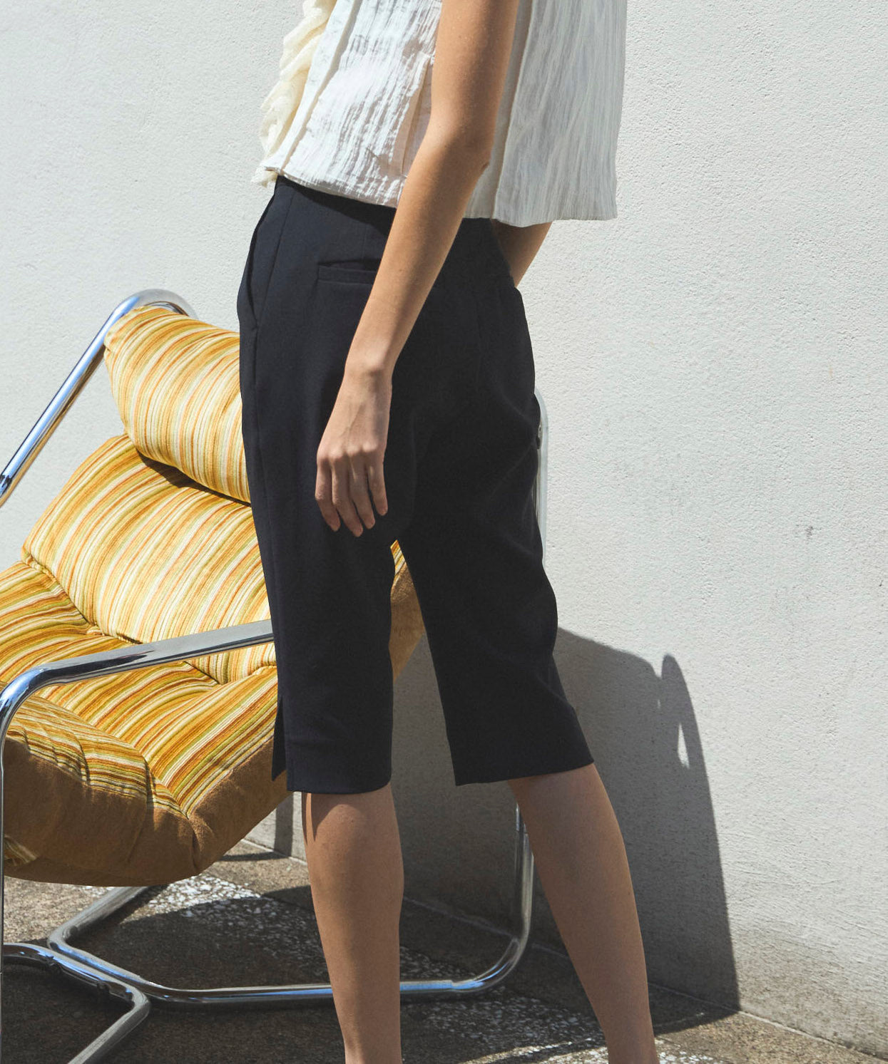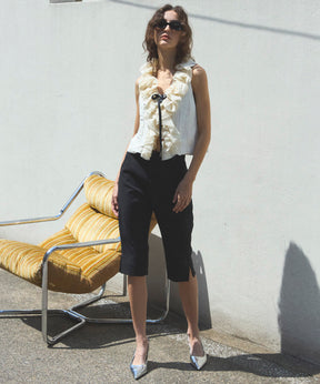 トレンドのサブリナパンツは高級感のある素材でカジュアルにもエレガントにもスタイリングできるように仕上げました。