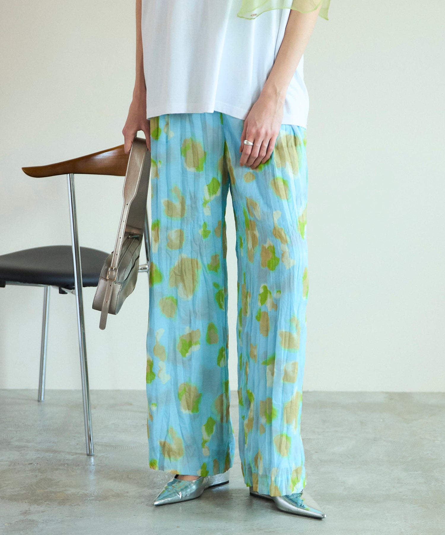・お花をイメージしたオリジナルモチーフを大胆にプリントした存在感あるイージーパンツ。