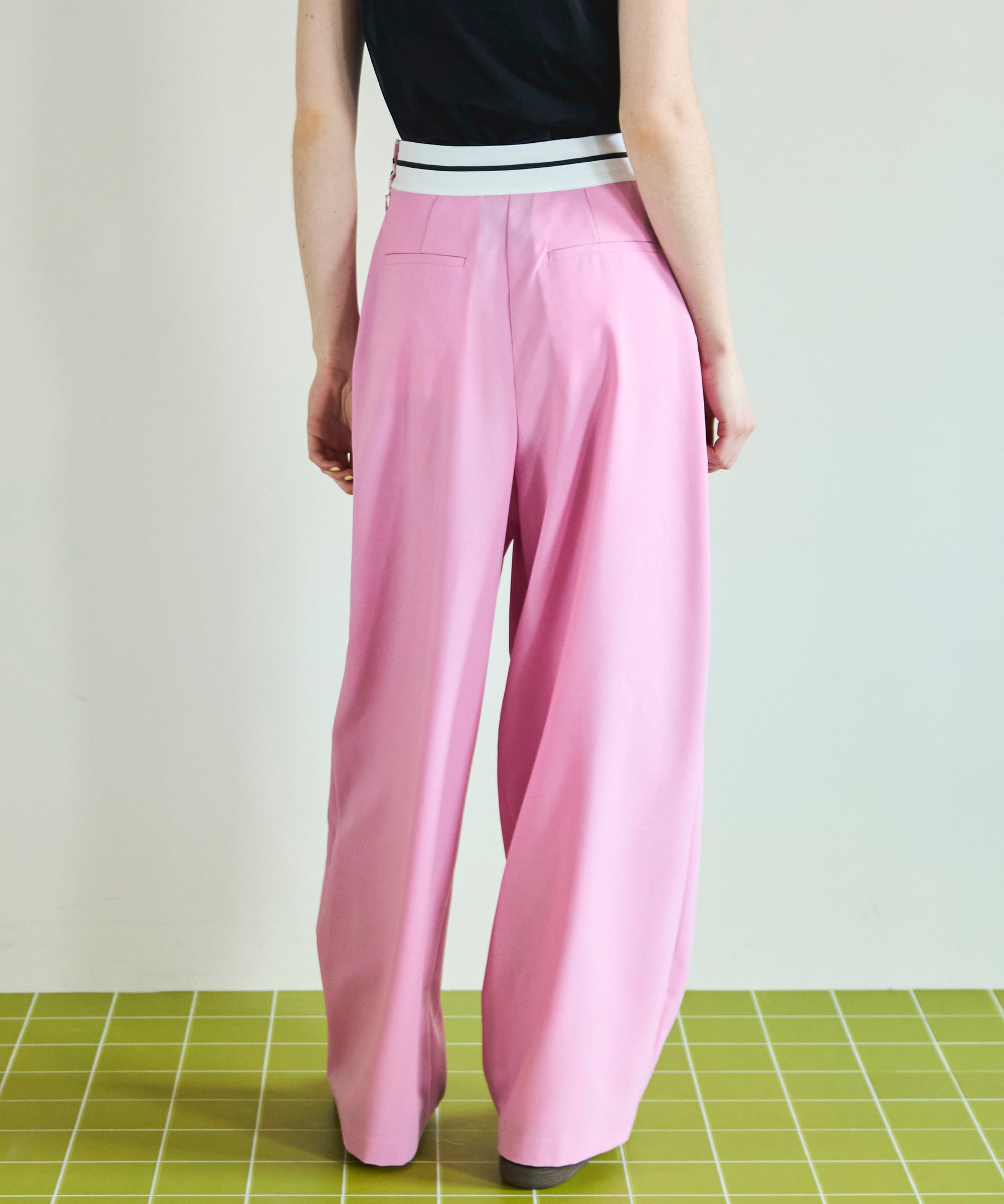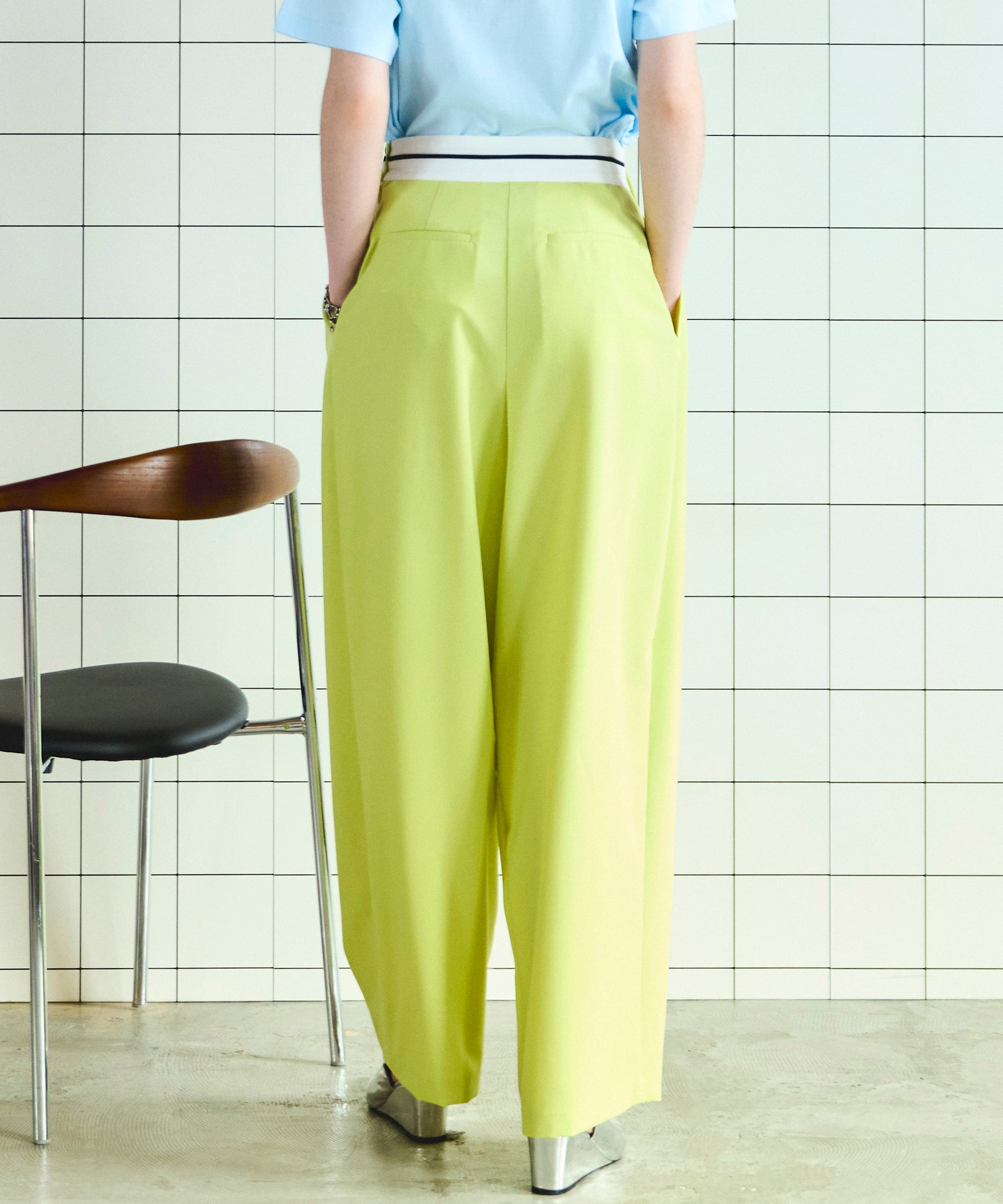 リラックスした履き心地ながら、タックデザインによりお腹周りがすっきり見えるのもポイント。