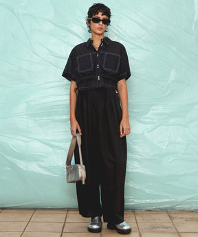 ダブルクロス素材を使用し、しなやかなハリ感と上品な光沢感を実現。シワになりにくく、美しいシルエットをキープ。