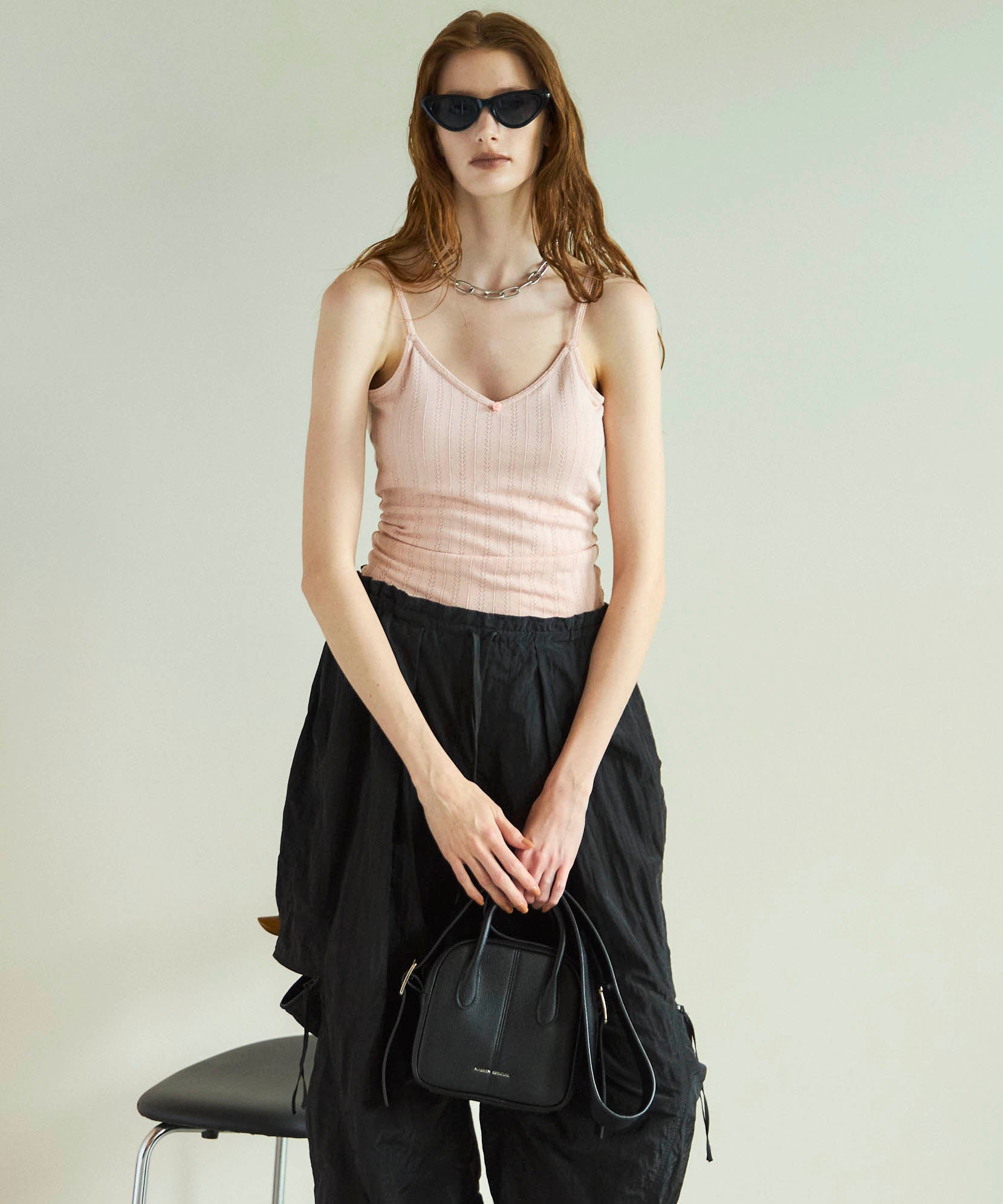 ショルダー付きで2WAYの持ち方ができるのでスタイリングに合わせてデイリー使いし易いアイテムです。