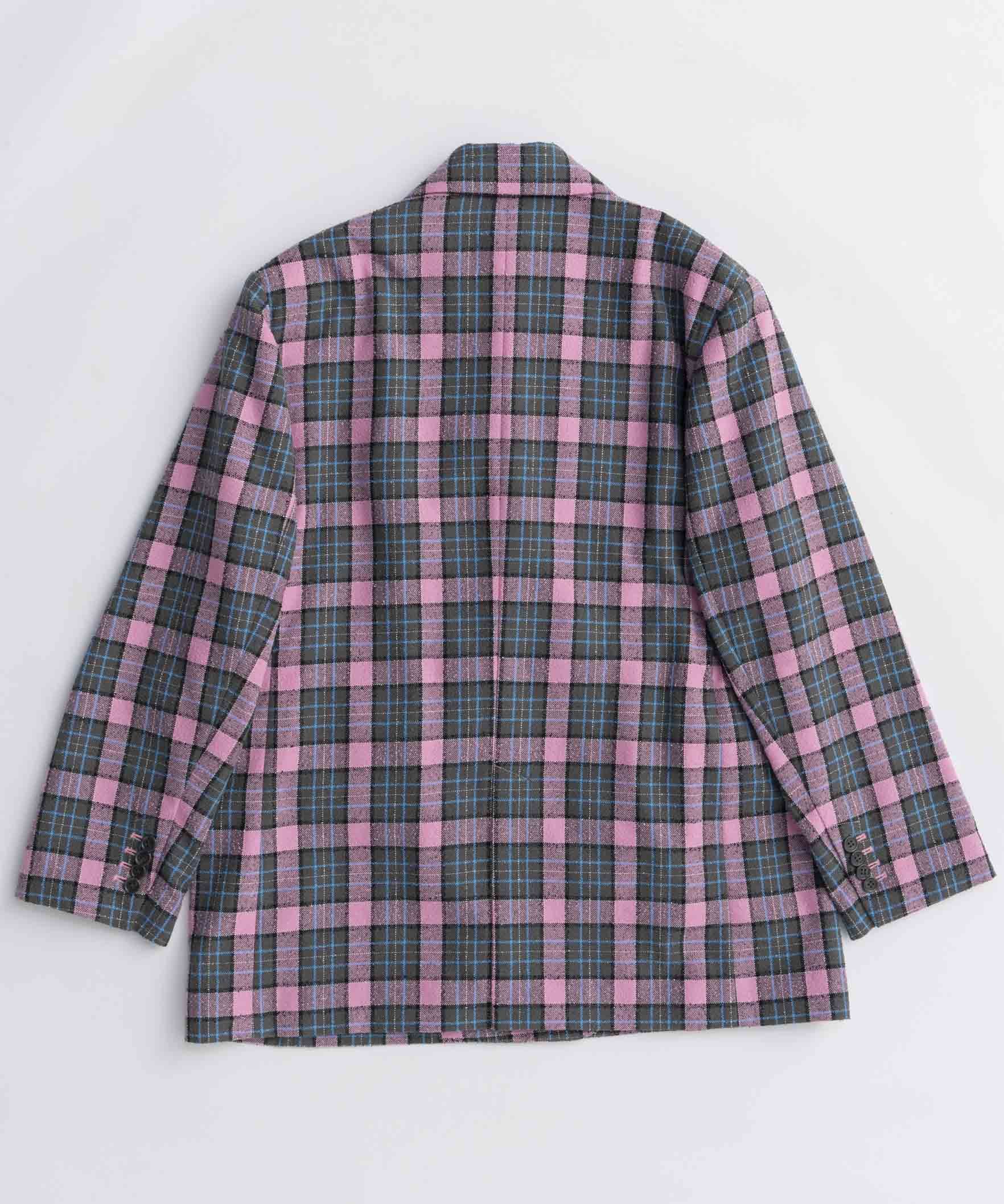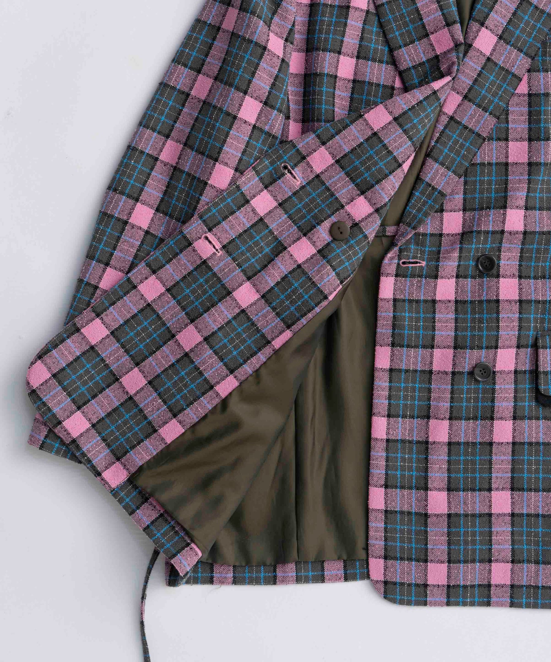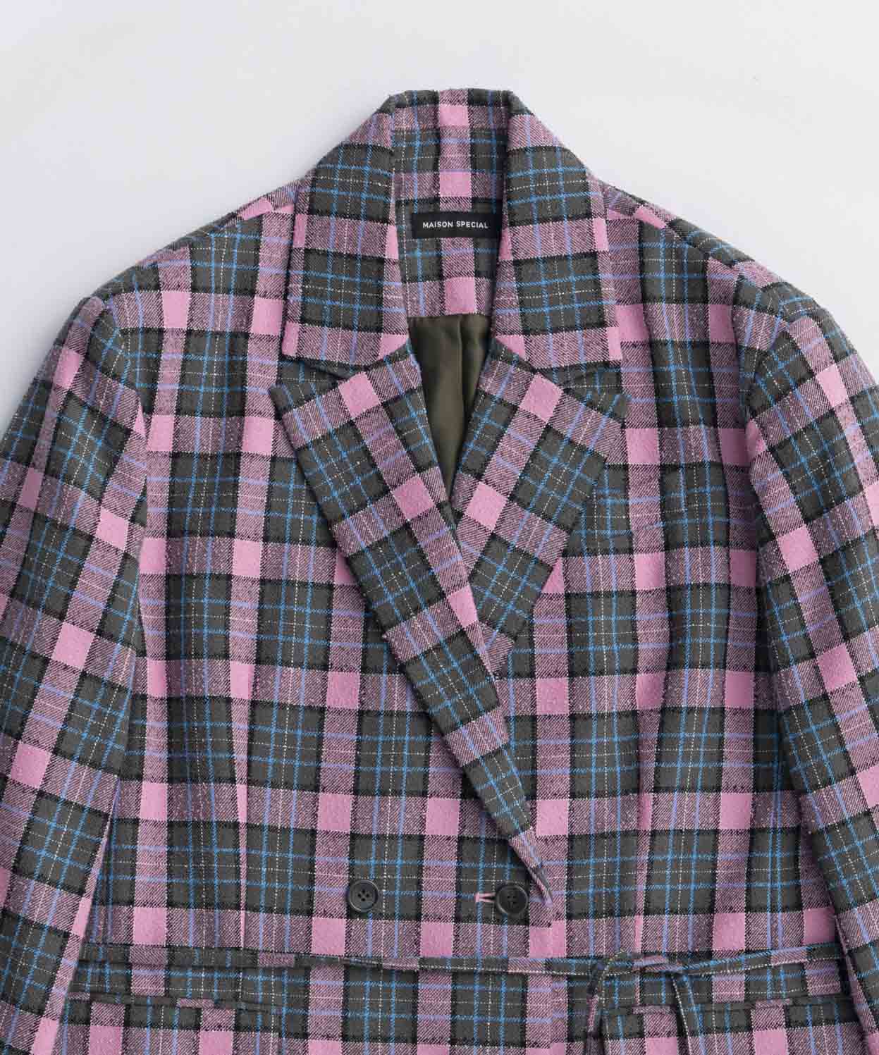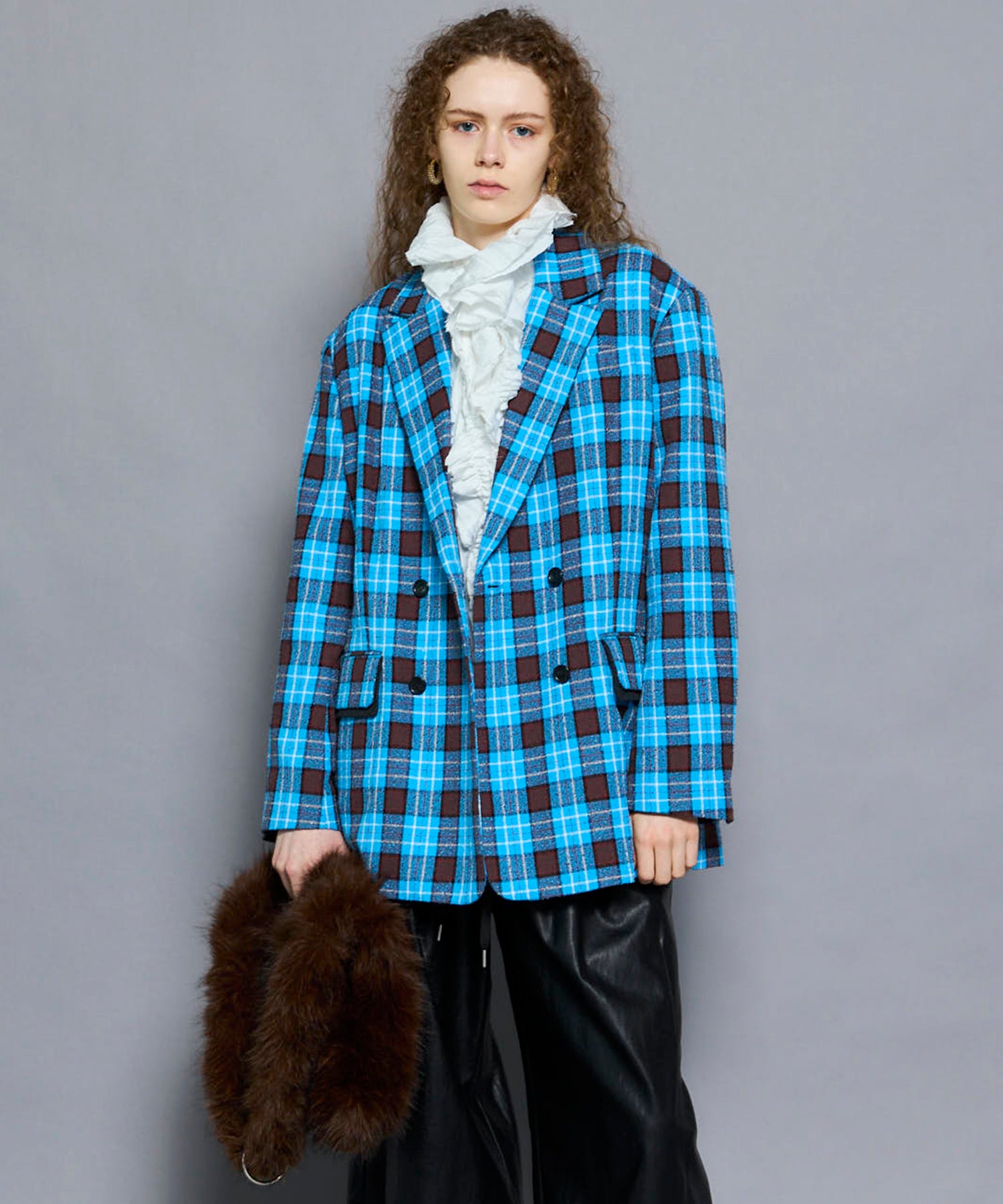 ・オーバーサイズなシルエットでトレンド感のある一着に仕上げたダブルジャケット。