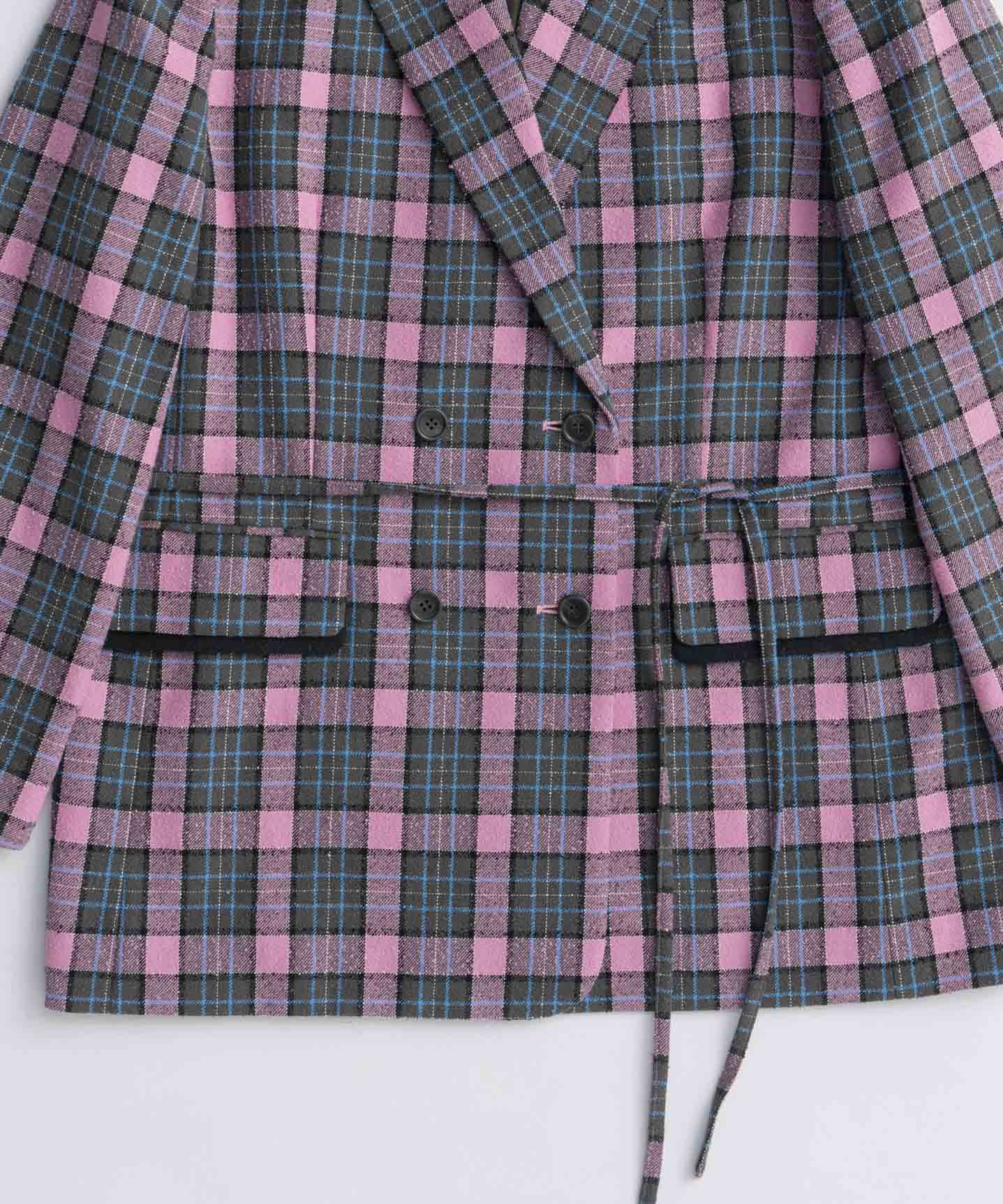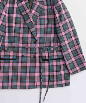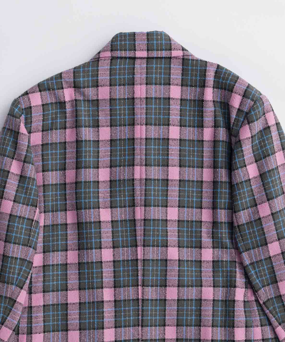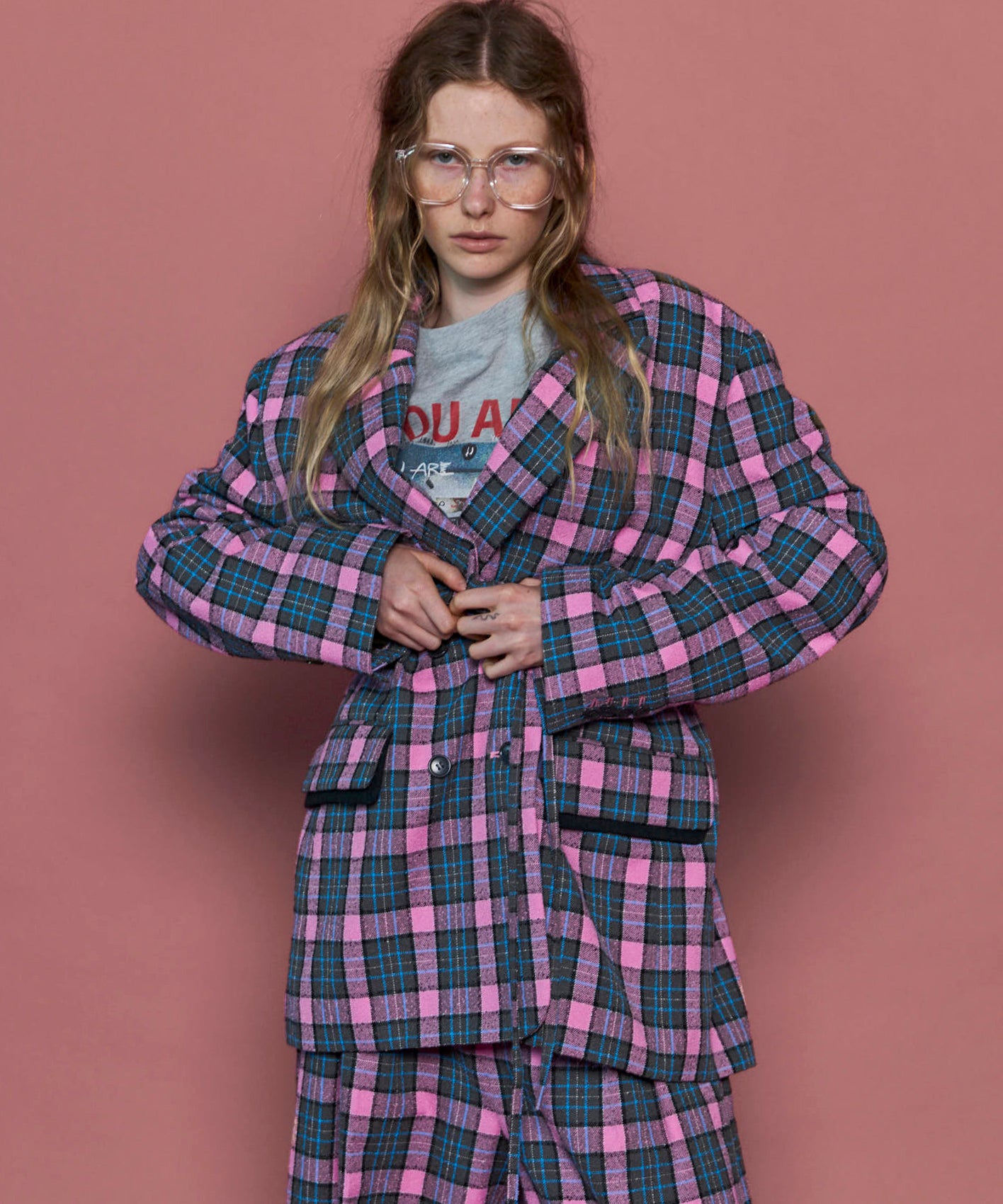 ・オーバーサイズなシルエットでトレンド感のある一着に仕上げたダブルジャケット。
