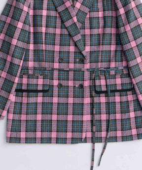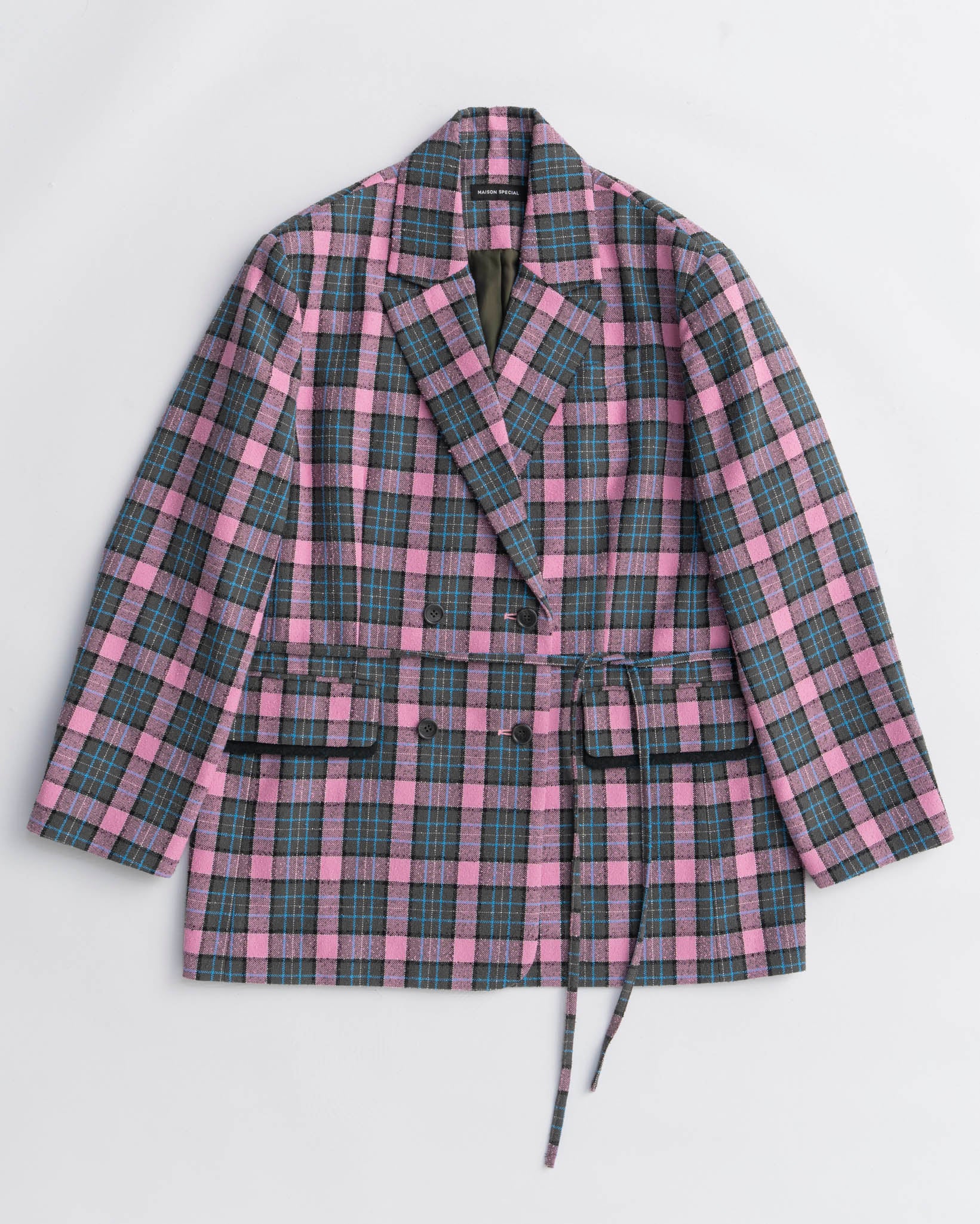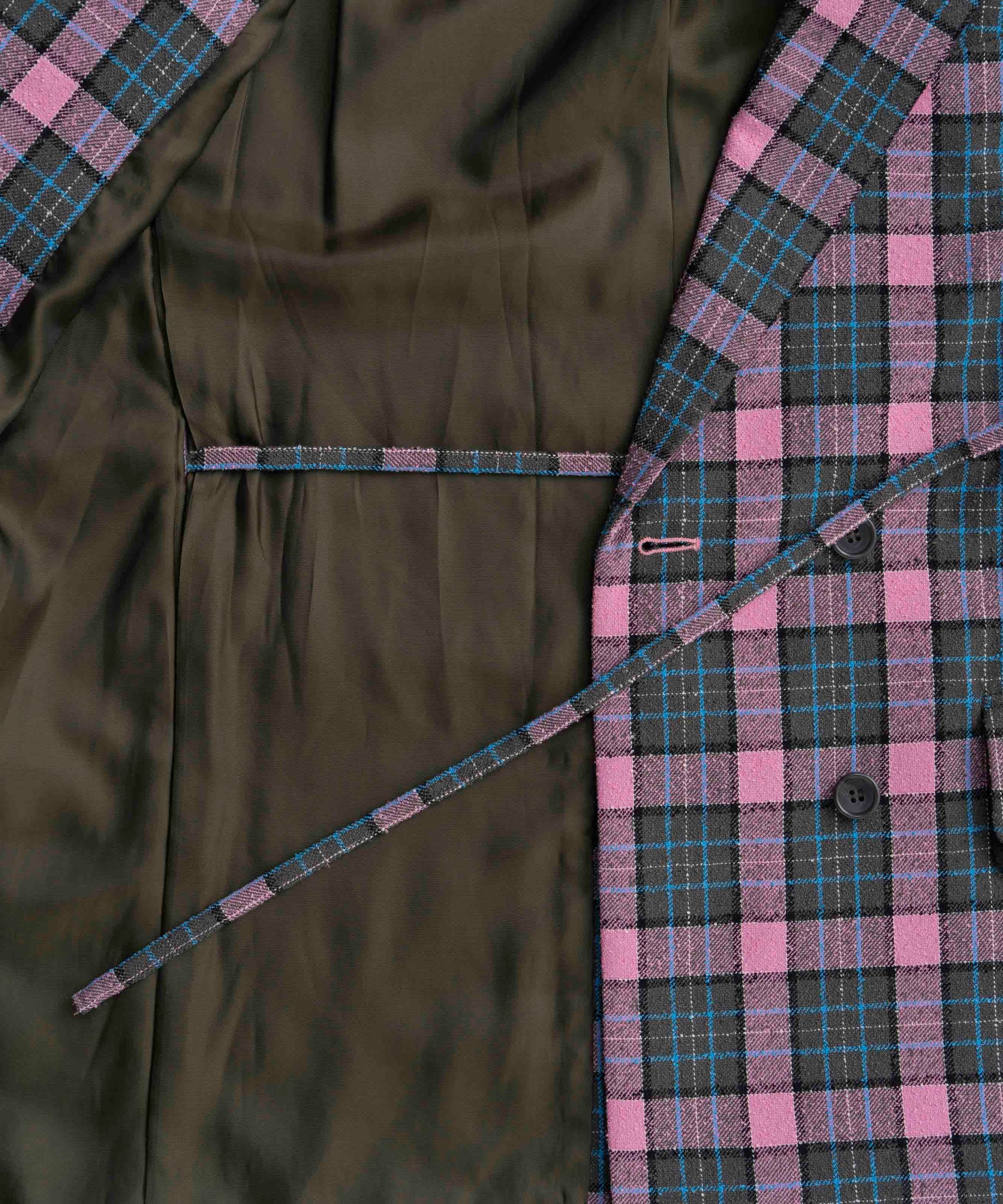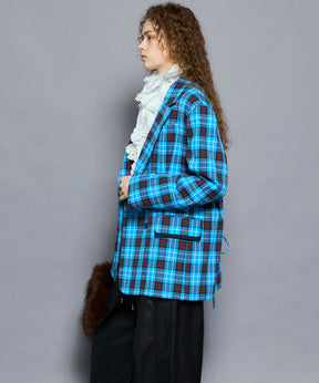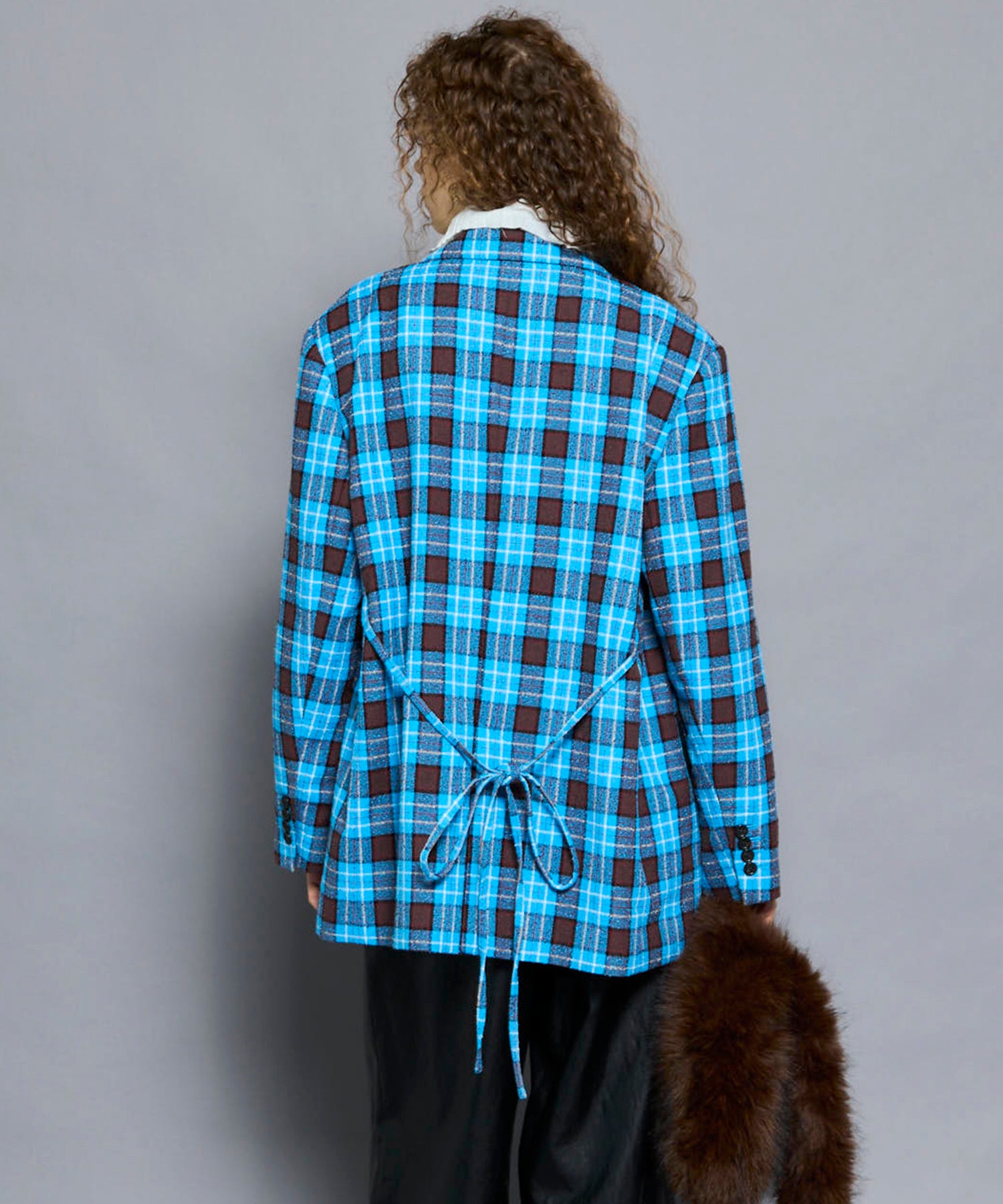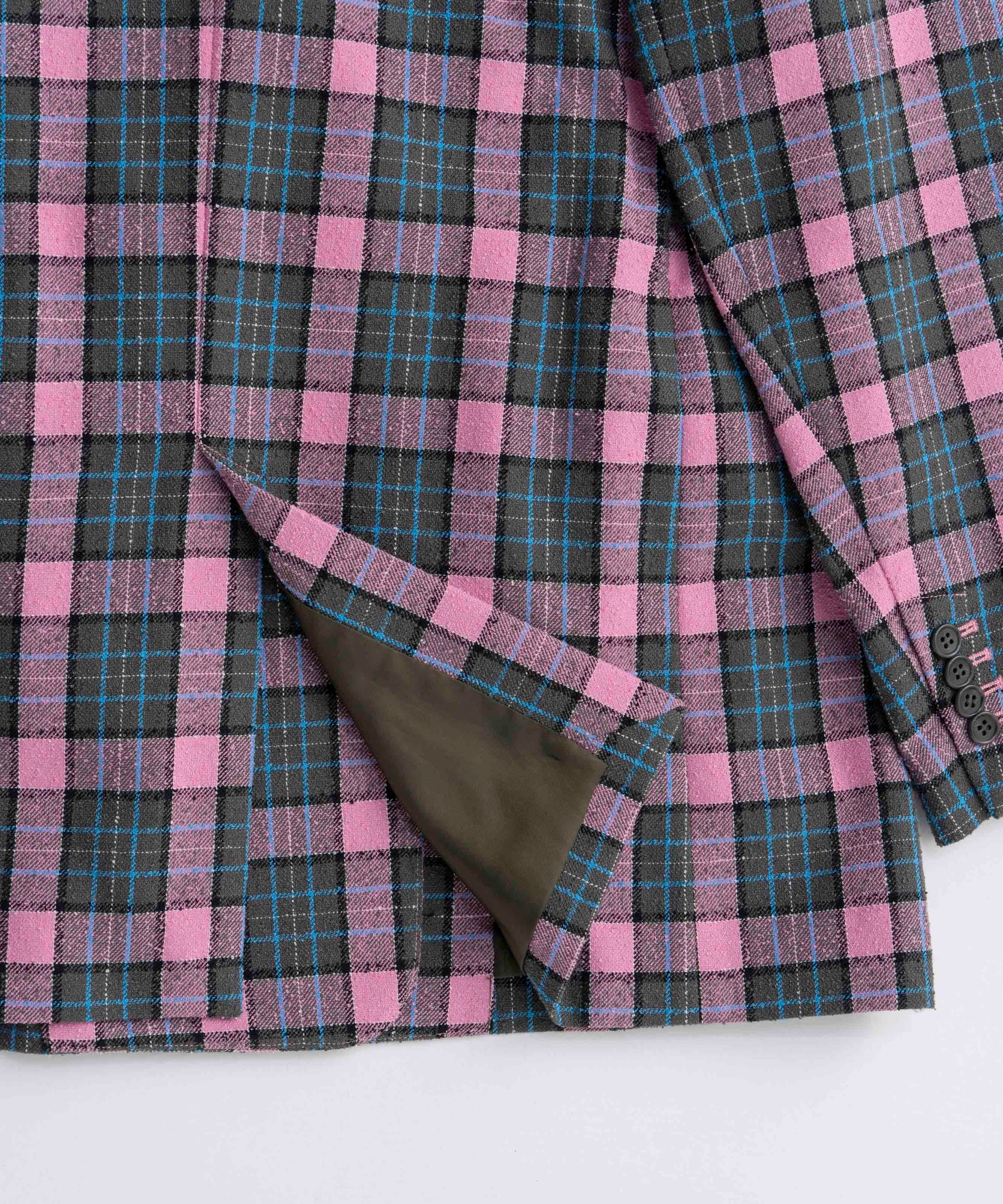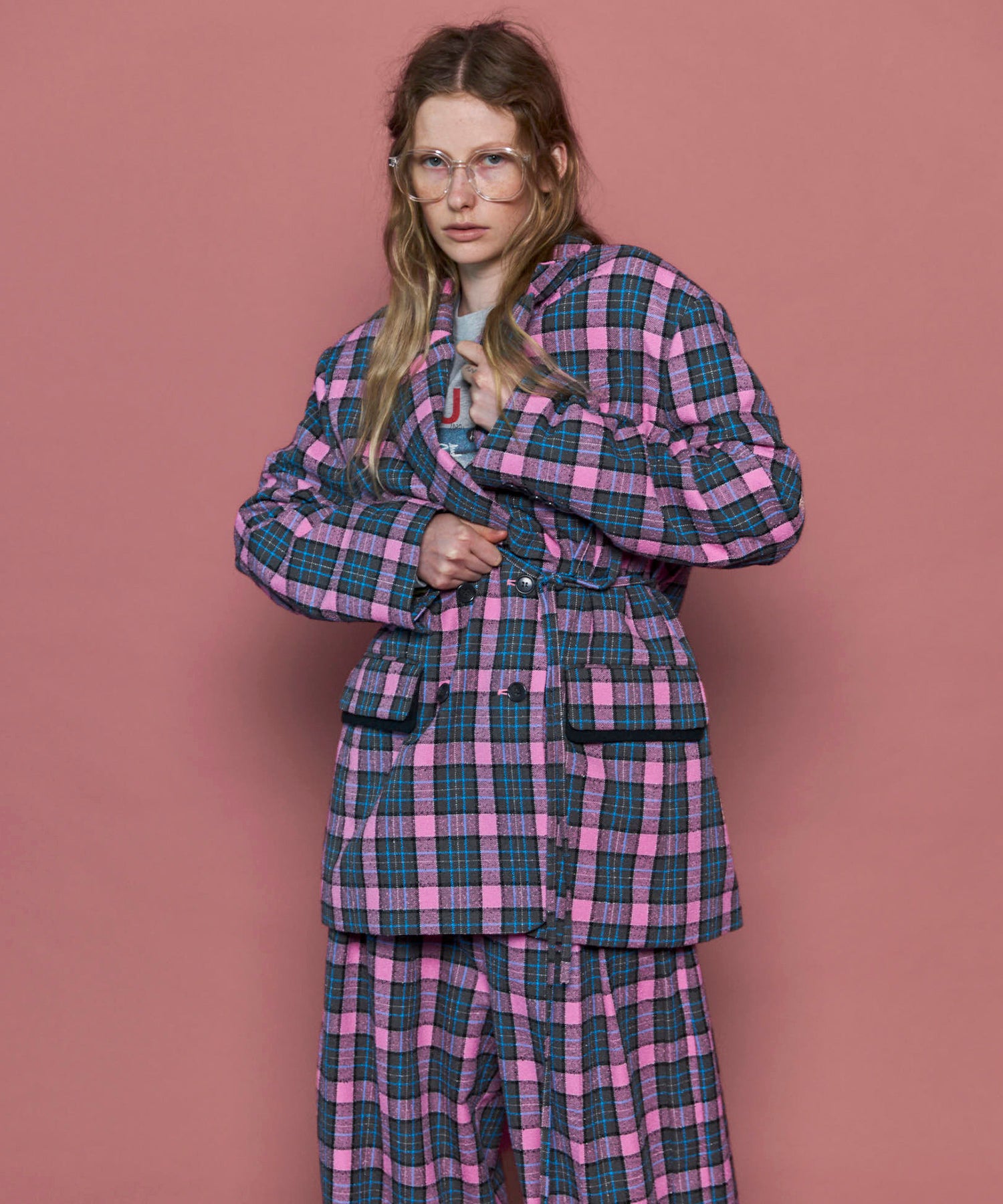 ・オリジナルで編み立てた目を引くチェック生地を使用。