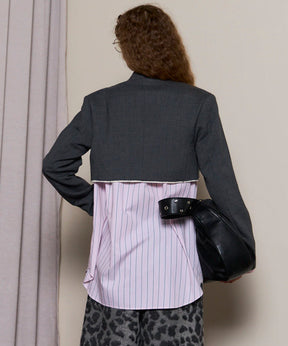 ・モードなエッセンスを効かせながらも、どこかクラシカルな品の良さも備えたショートボレロジャケット