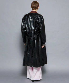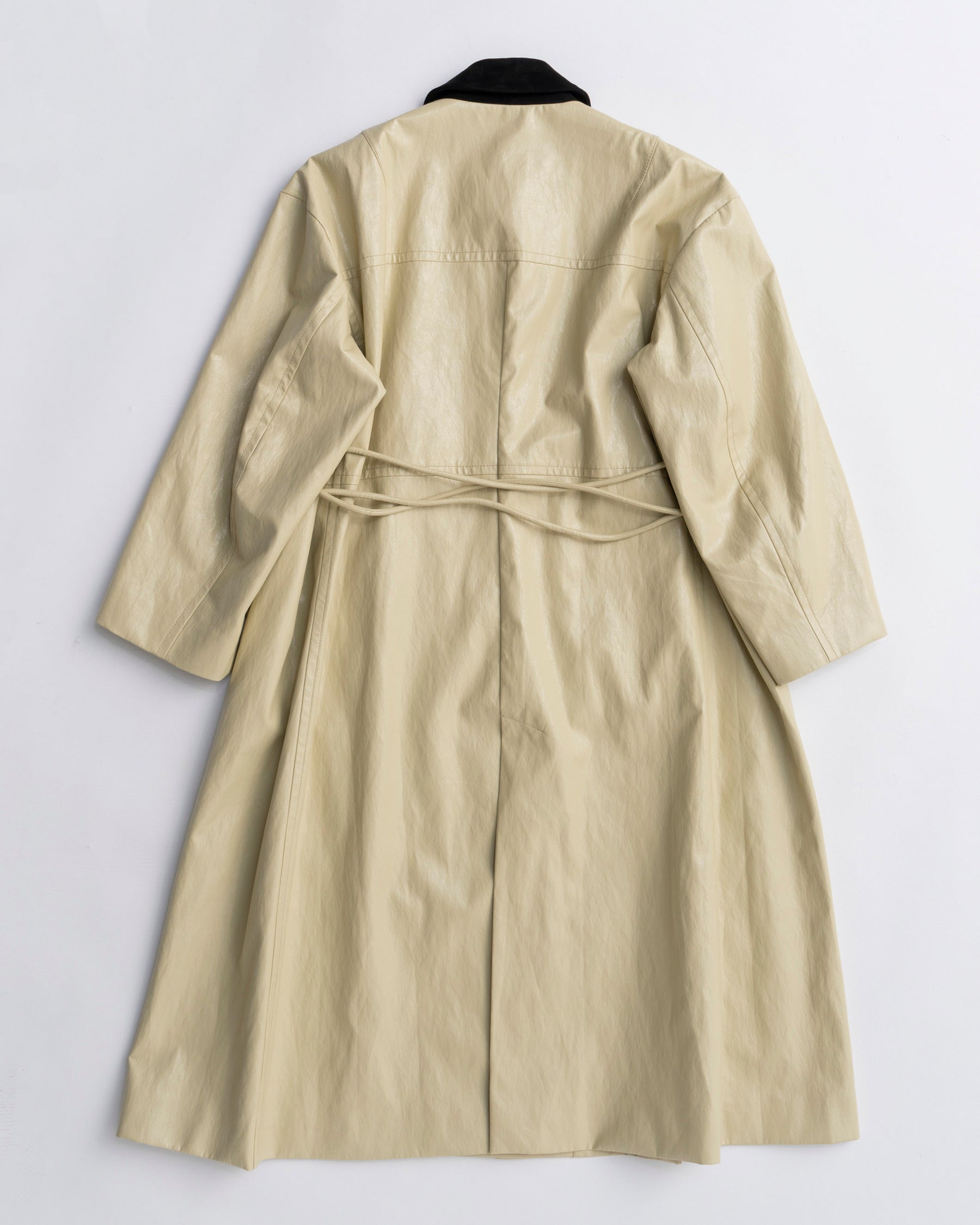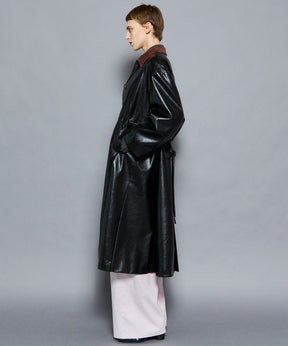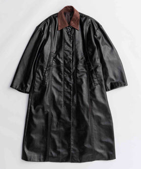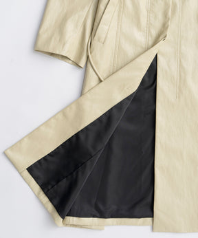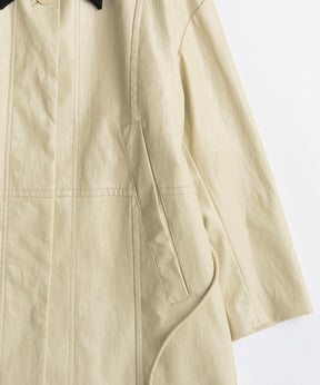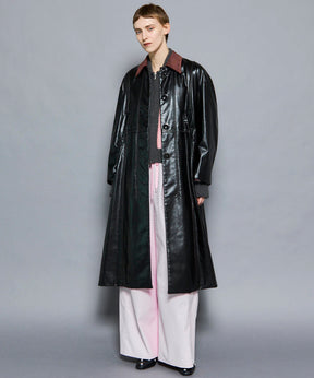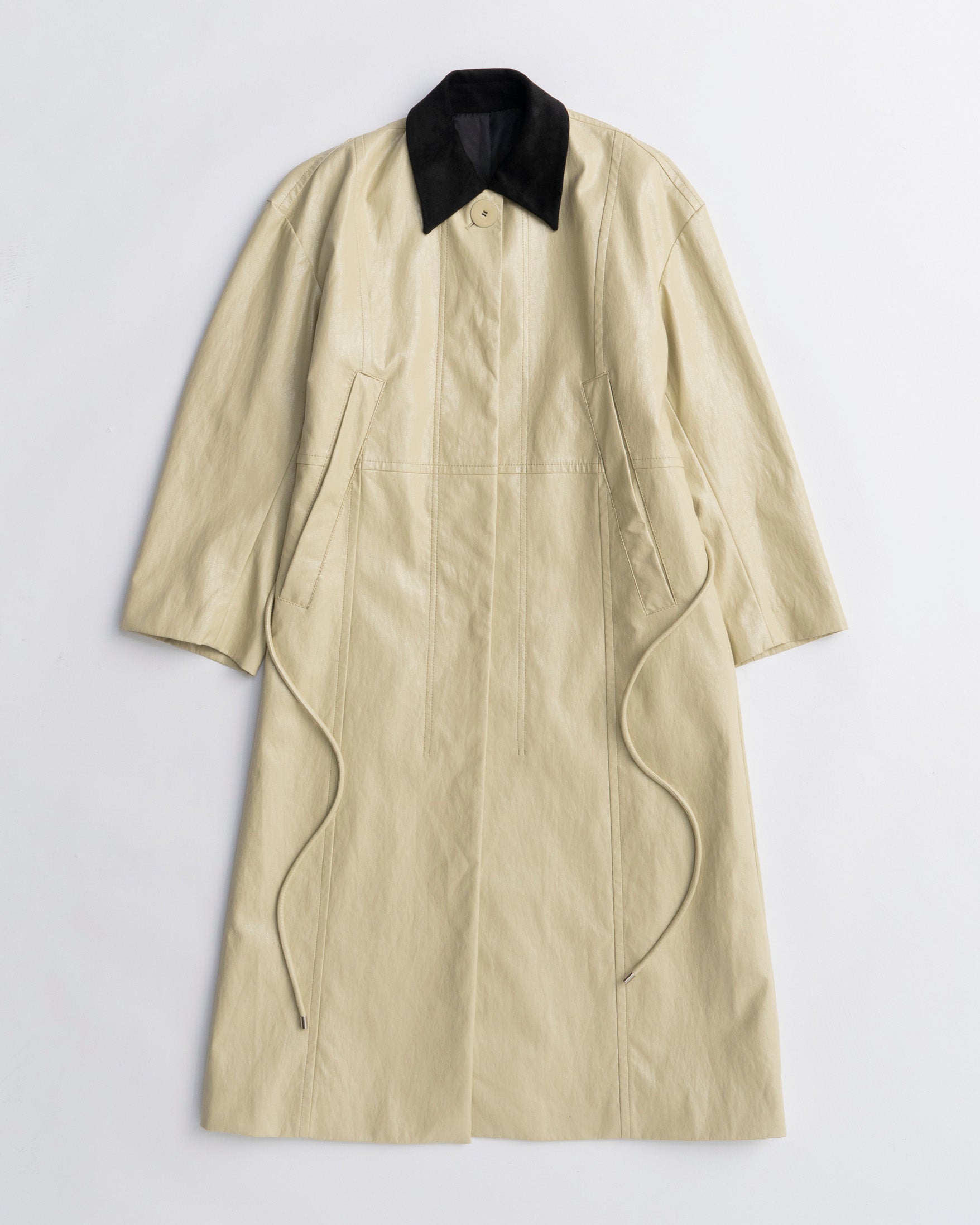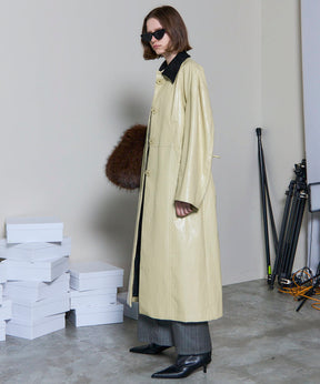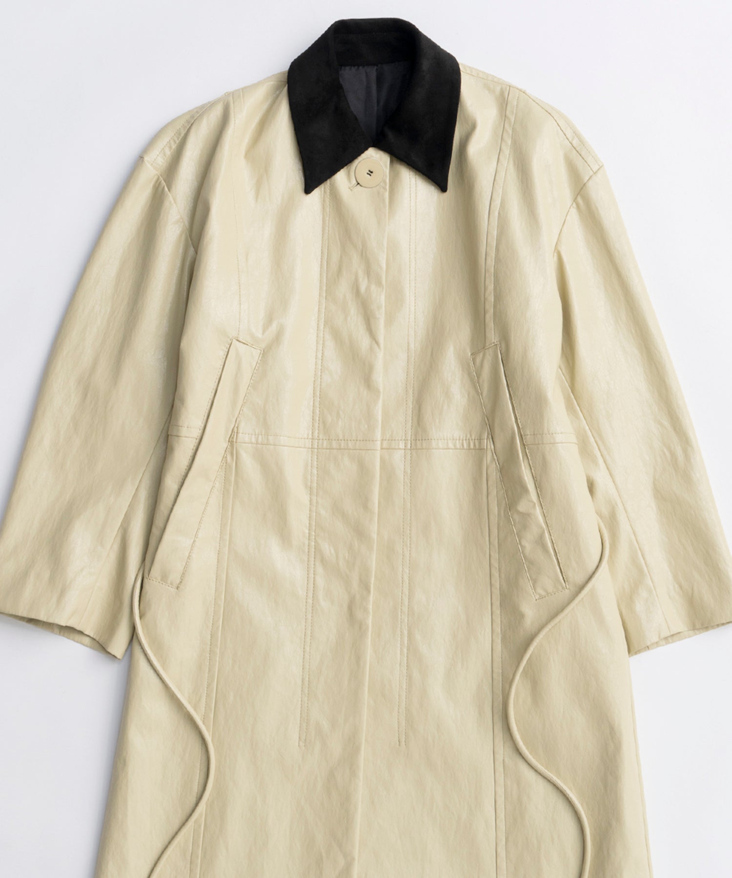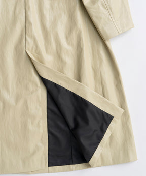 ・シャープな襟とボックスシルエットのロング丈で1枚で決まるステンカラーコート。