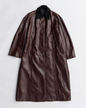 黒にほど近いダークブラウンをベースに、ほんのり見えるダークボルドーが品のある色味のヴィーガンレザーを使用。