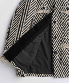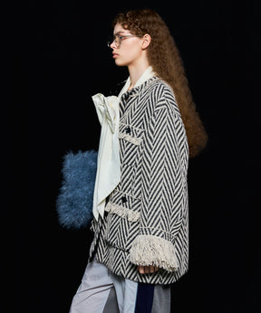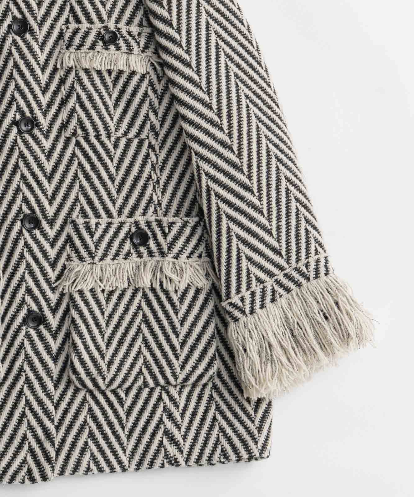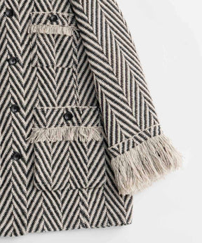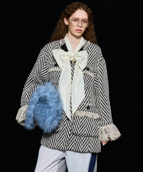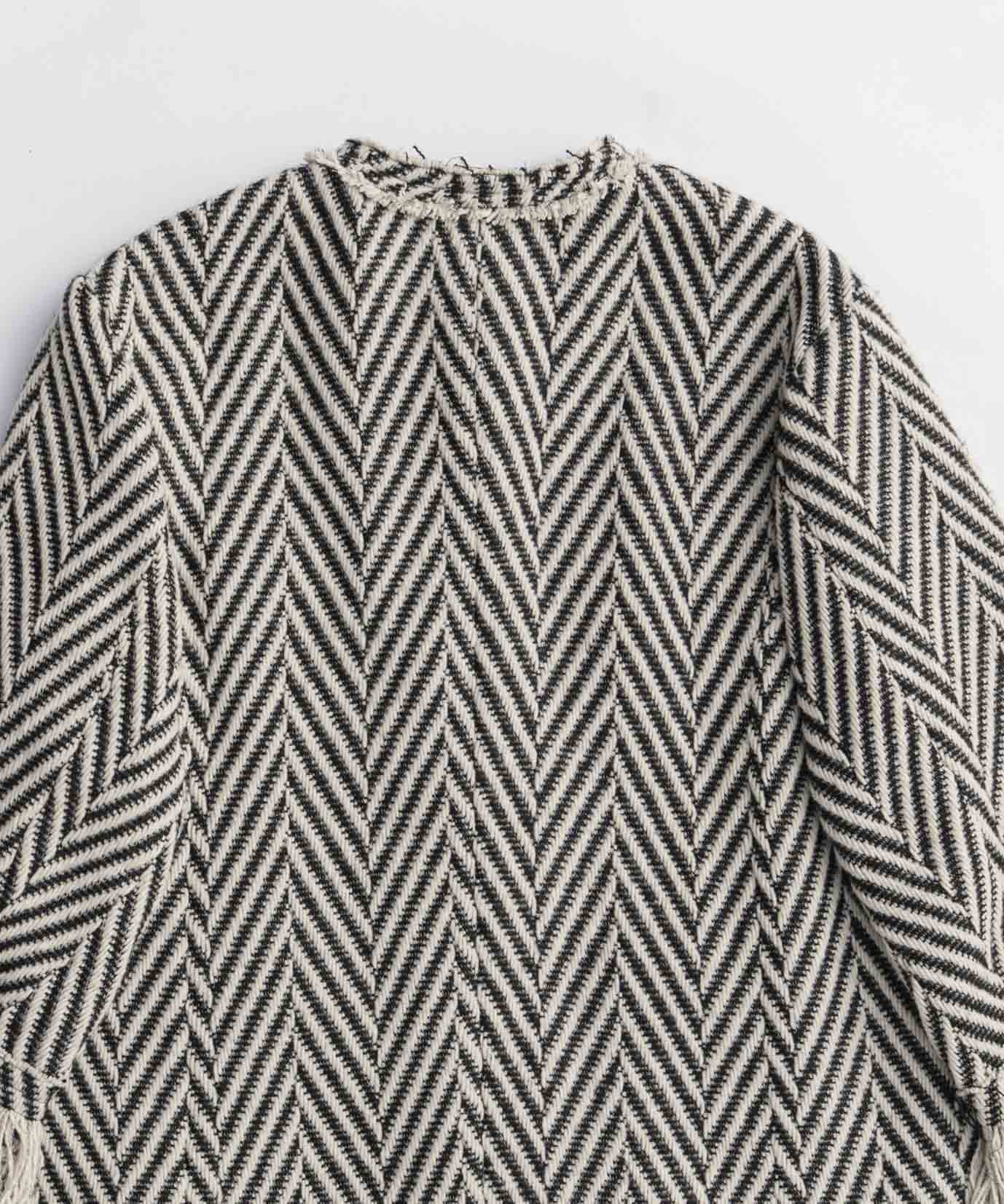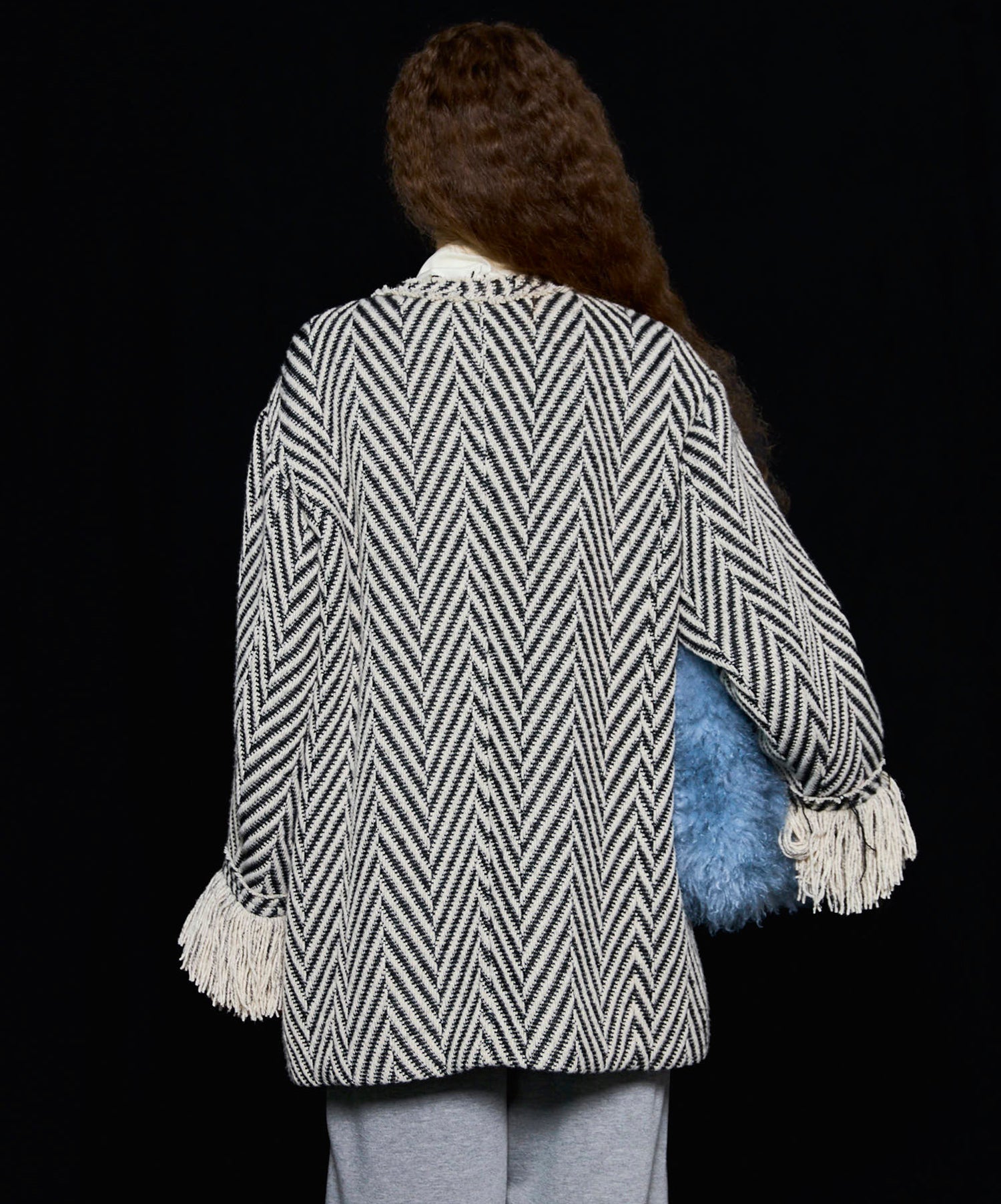 袖口の二段フリンジデザインが他にはなくモードな雰囲気を漂わせてくれています。