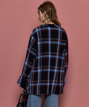 【NVY】ロービング糸の立体感のあるチェック素材。