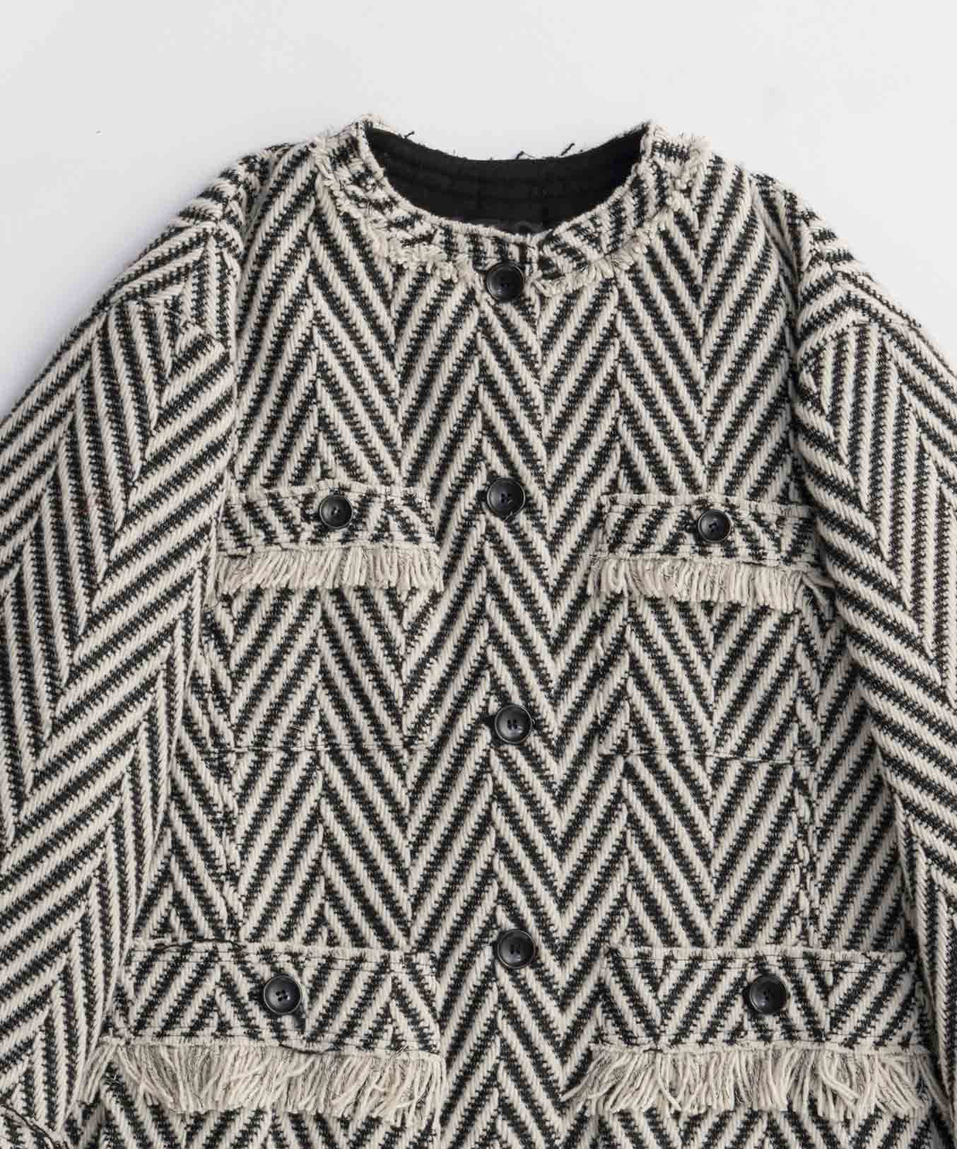 ・クラシカルなノーカラージャケットをオーバーサイズでモードな印象にアップデート。