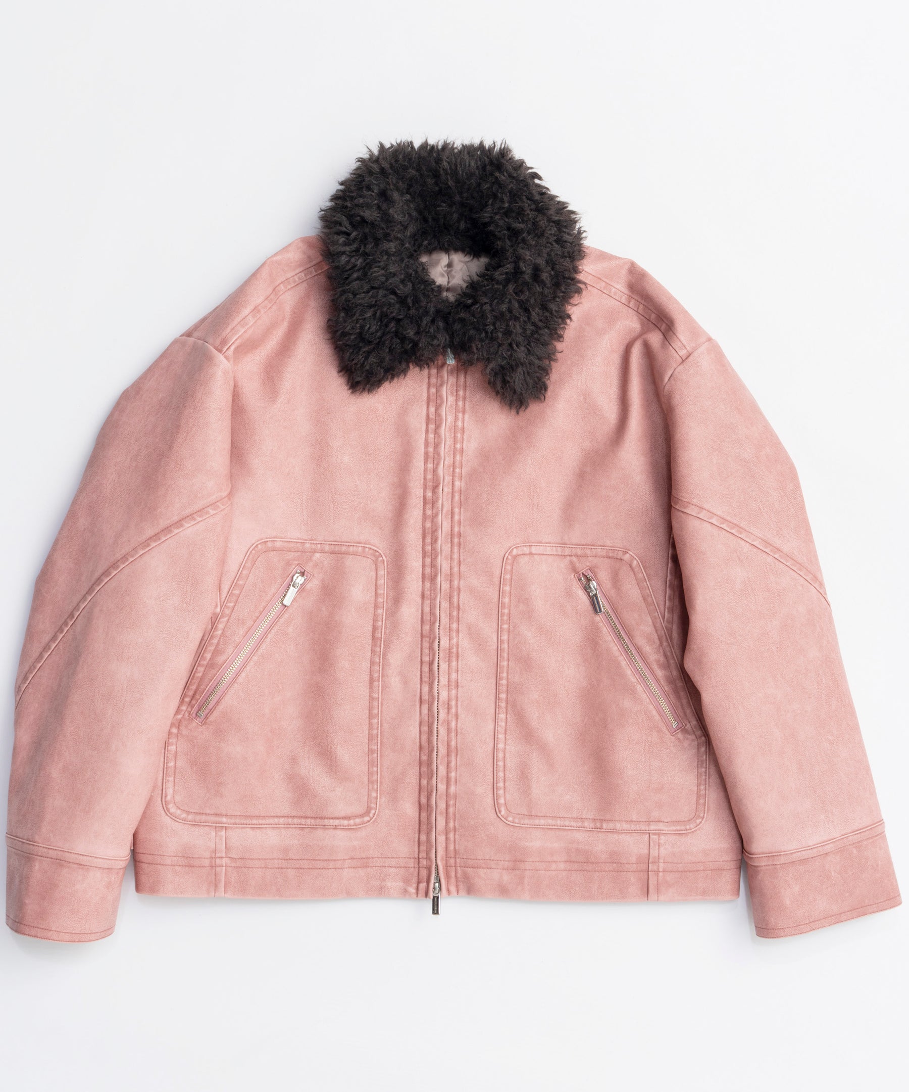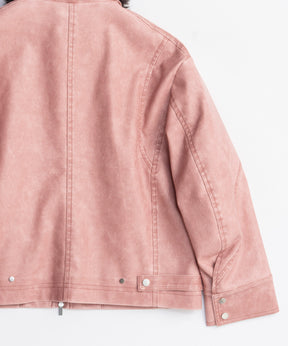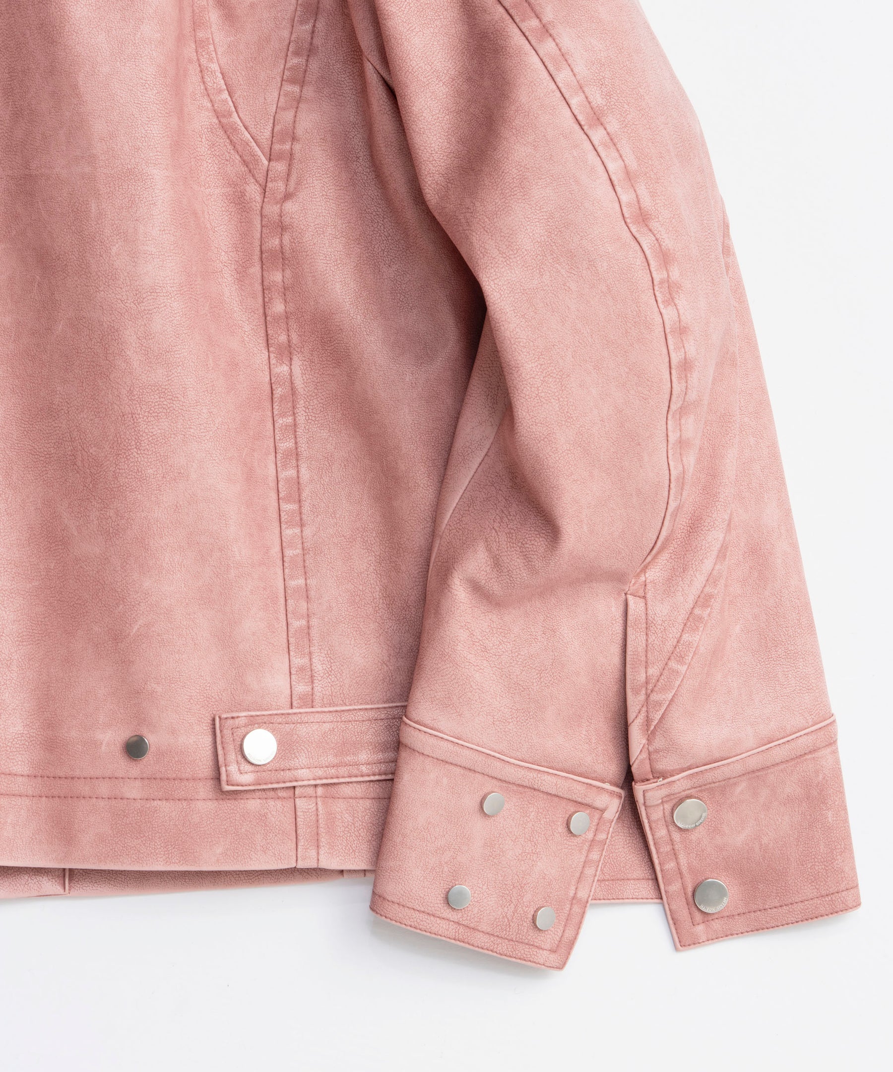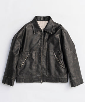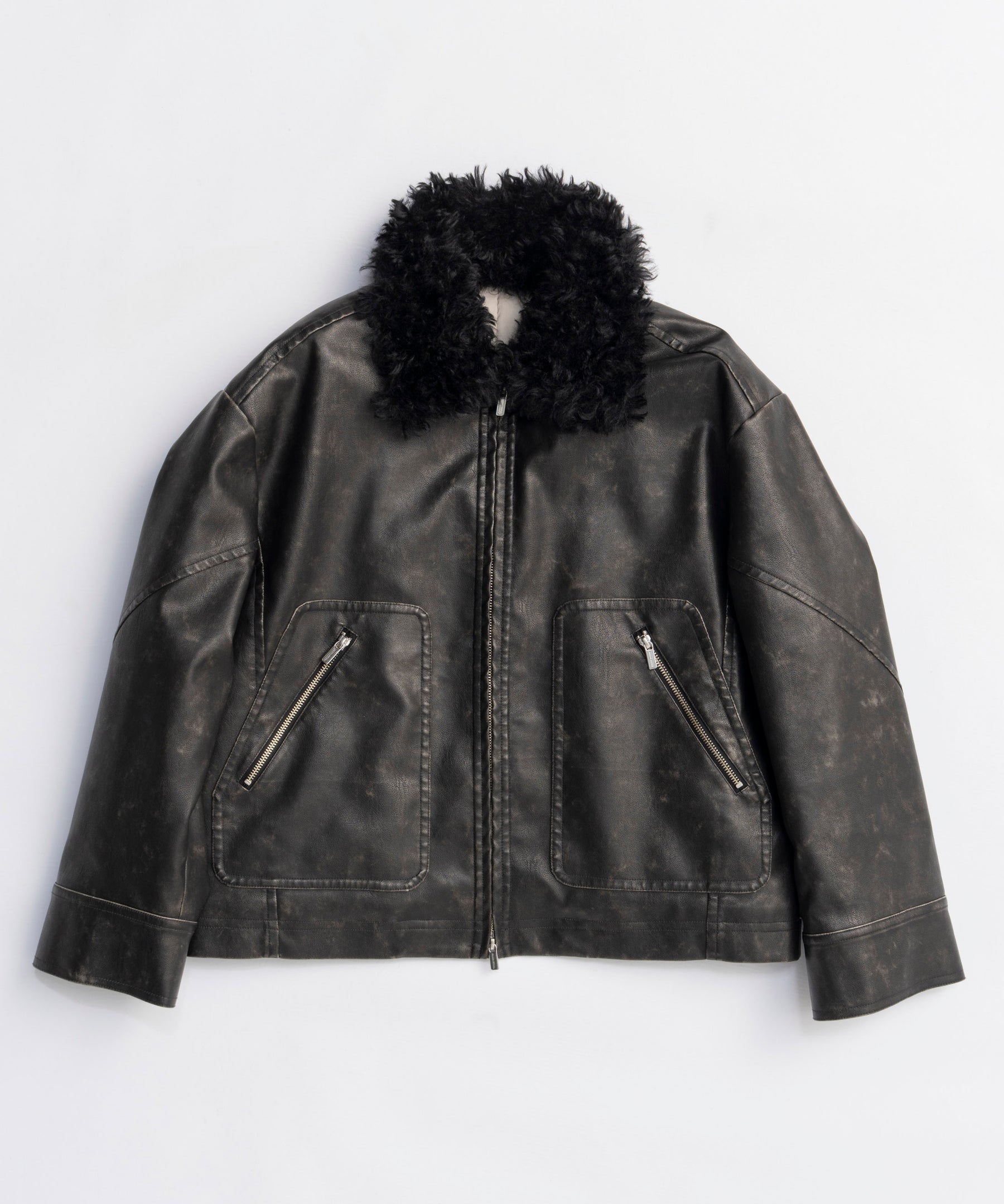 ・フェイクレザーのクールな質感に、エイジング加工を施したシーズンムード高まるジャケット。