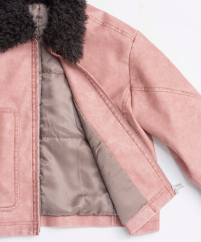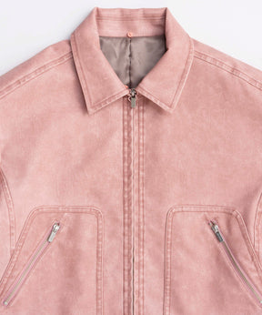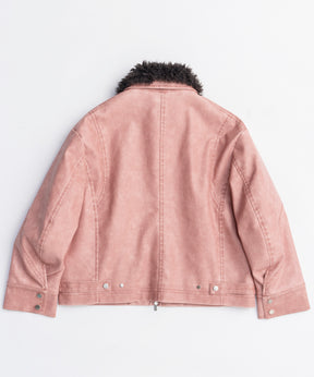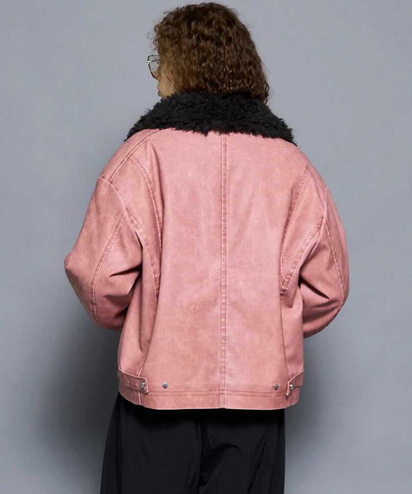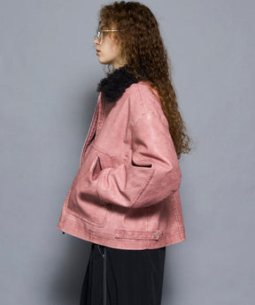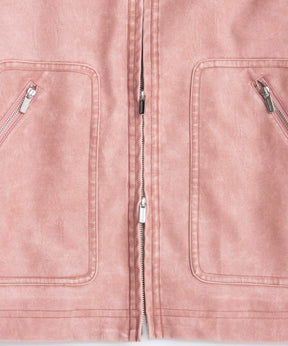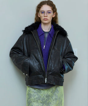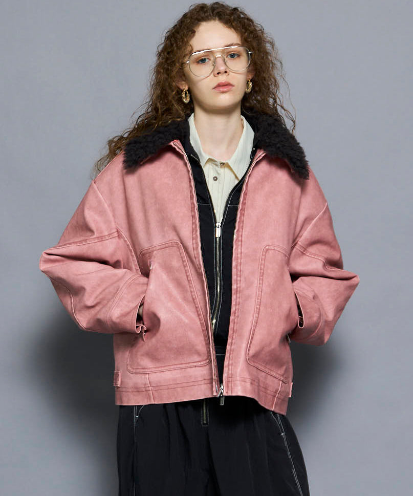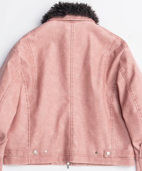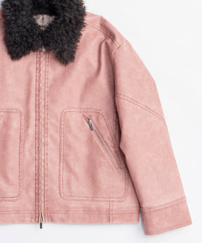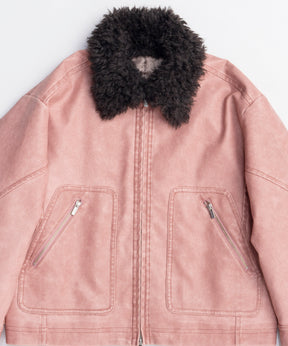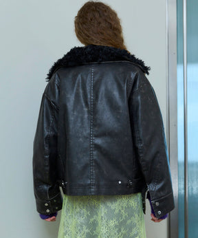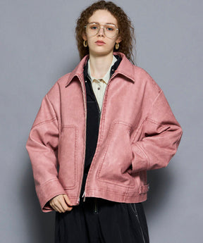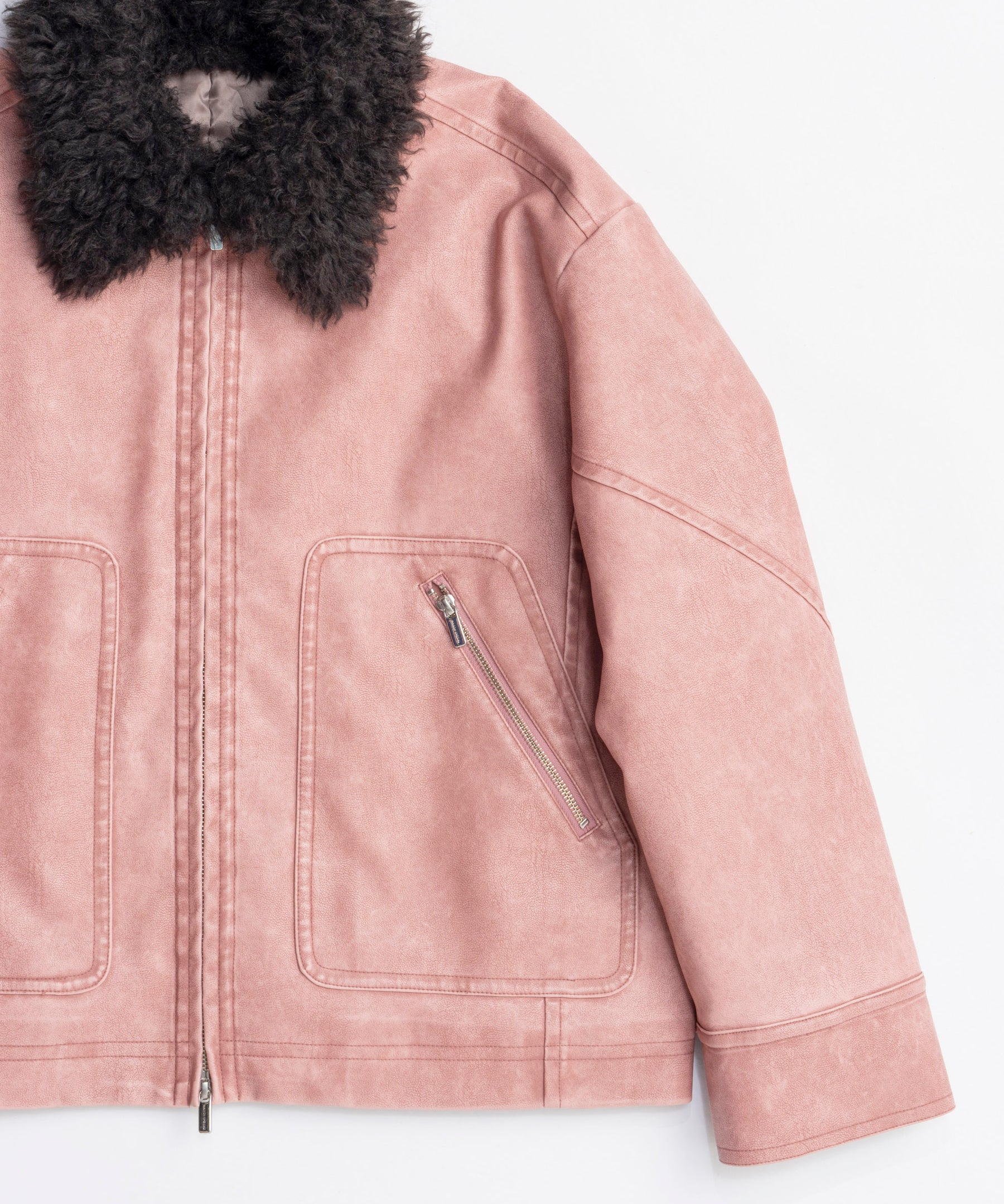 ・フェイクレザーのクールな質感に、エイジング加工を施したシーズンムード高まるジャケット。