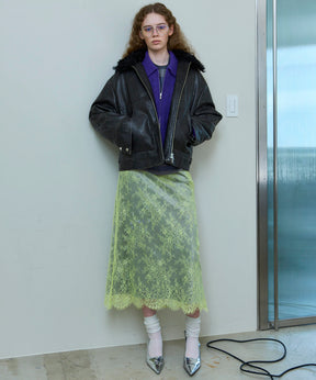 ・女性らしい柔らかさとライダース風のエッジ感を両立した、他にはないデザインが特徴のレザーブルゾン。