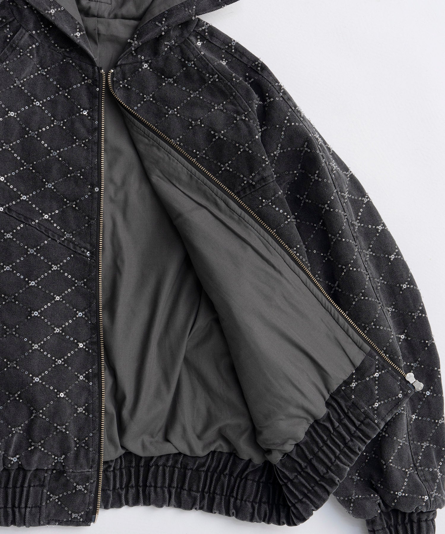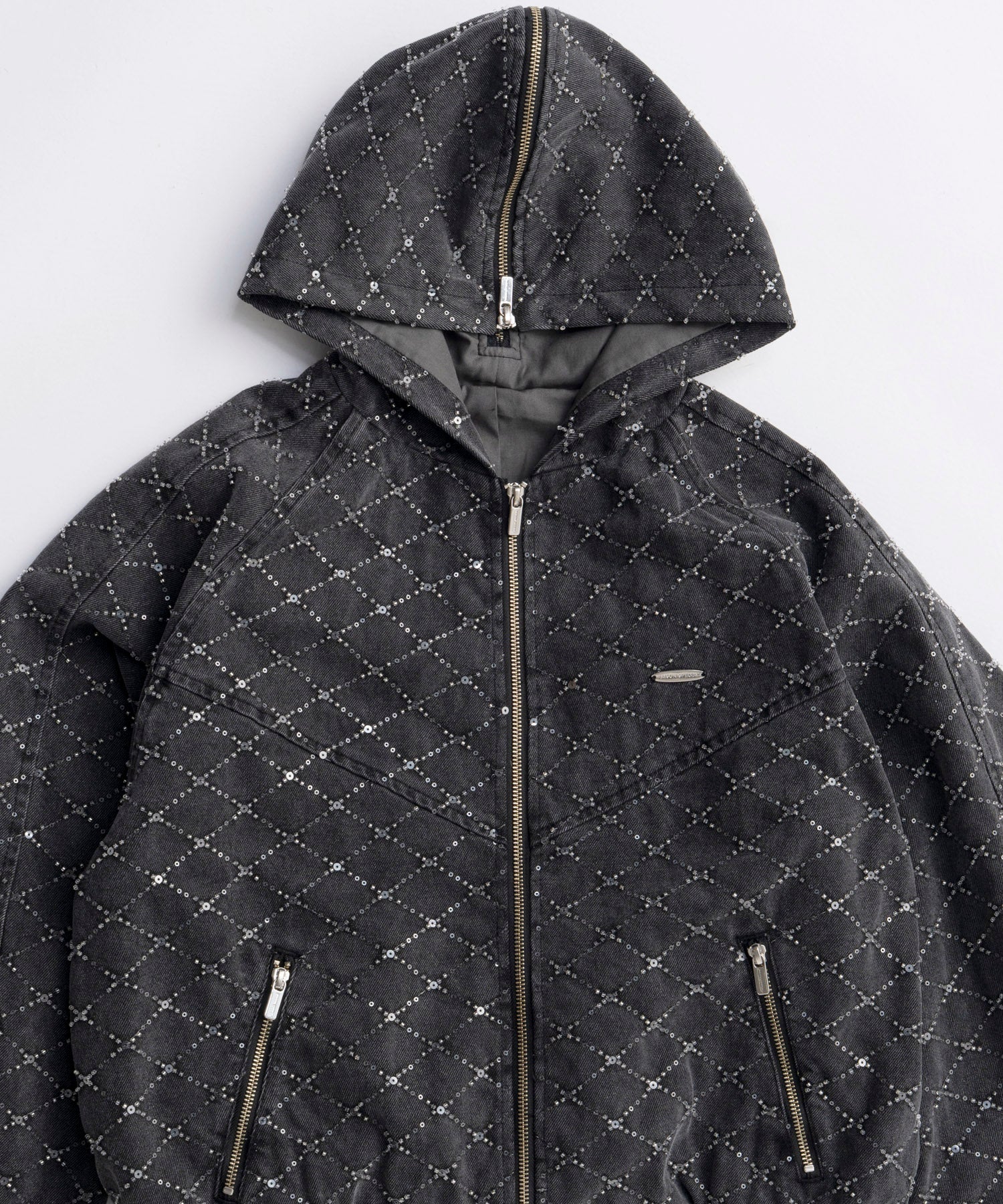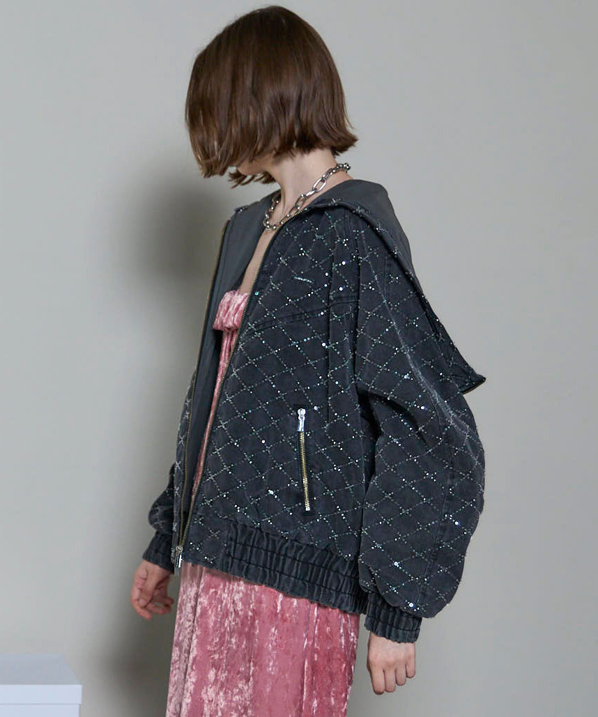 Product Name:ダイヤビーズエンブロイダリーデニムパーカー