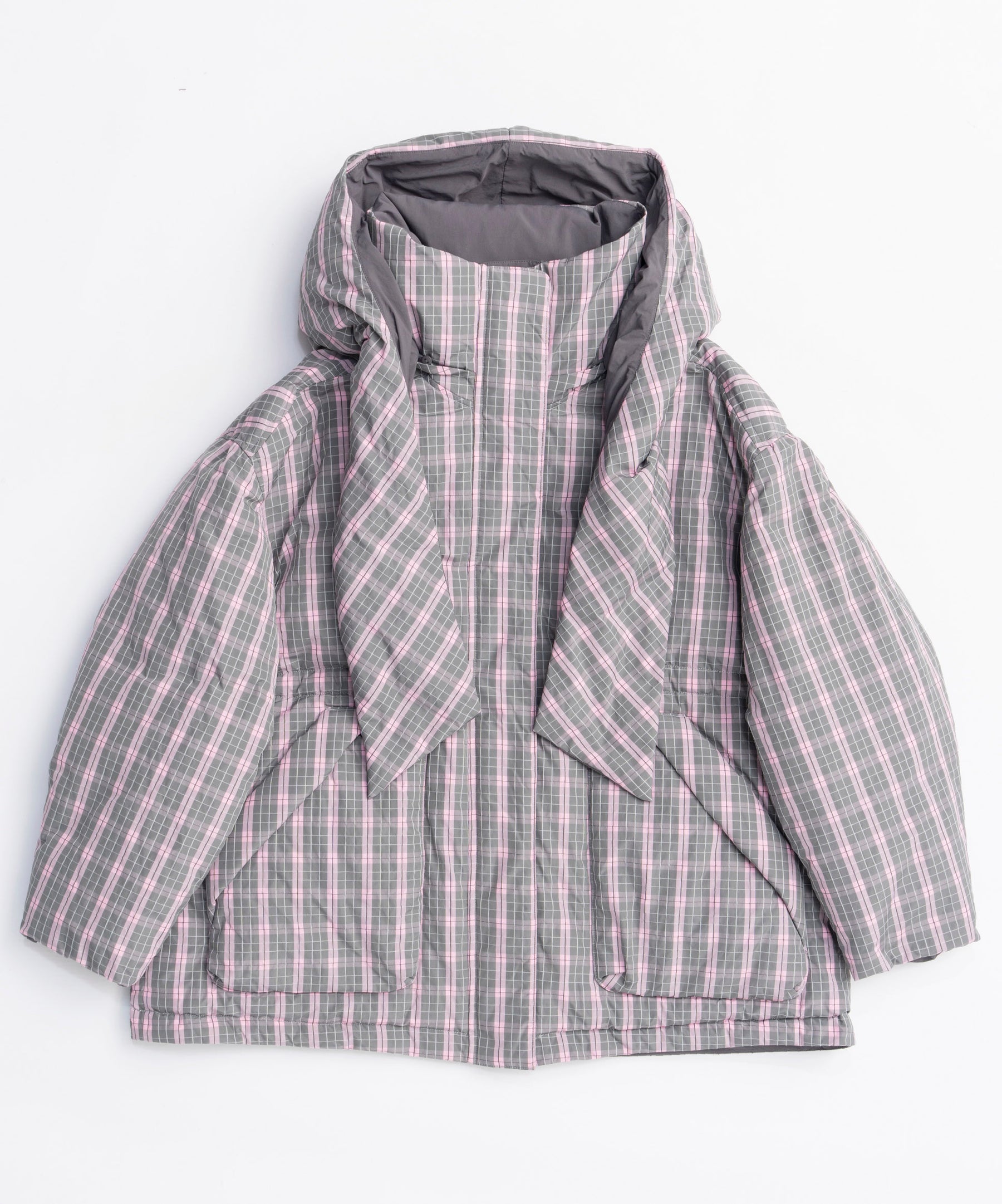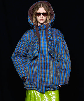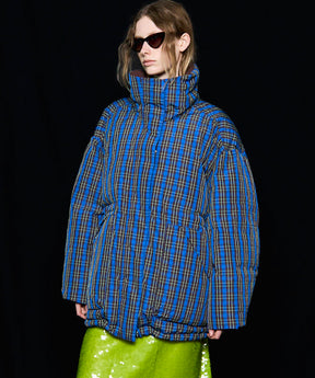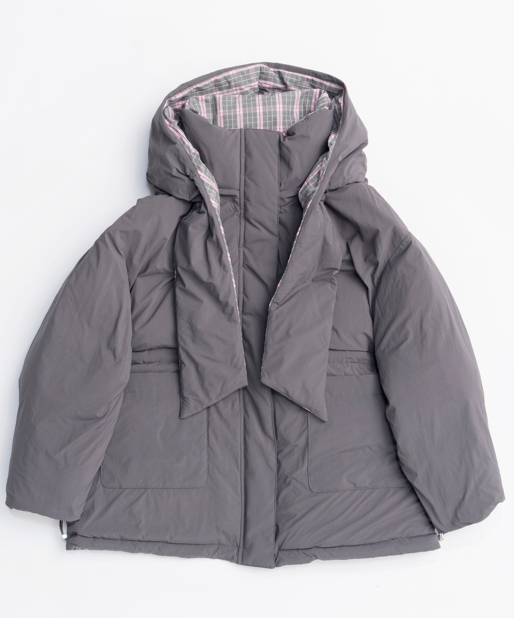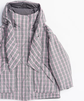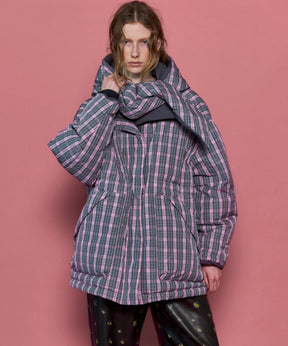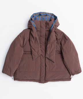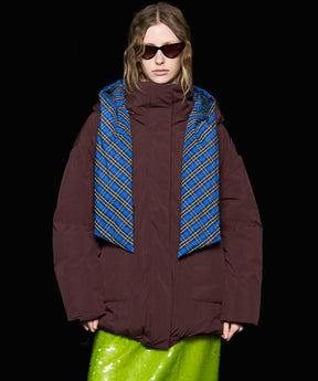 Product Name:チェックフーディマフラーミドルダウンコート