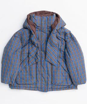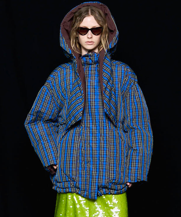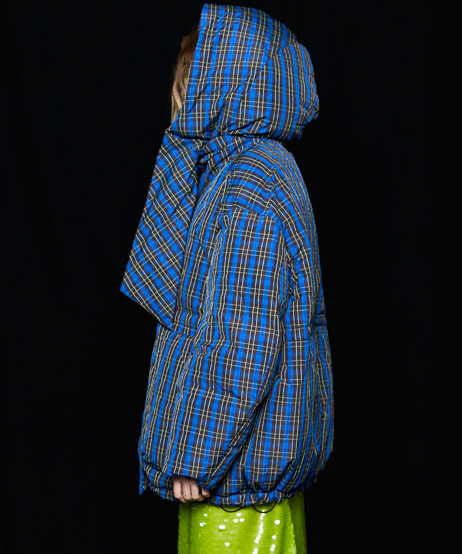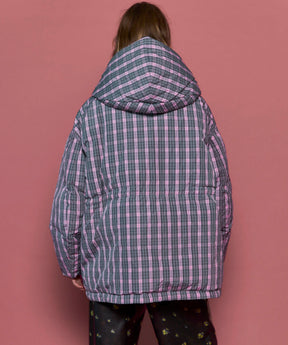 Plaid Hoodie Scarf Middle Down Coat