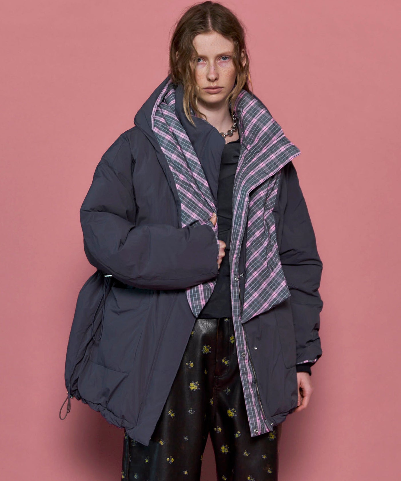 ・気分に合わせて着回せるリバーシブル仕様がポイントのダウンコート。