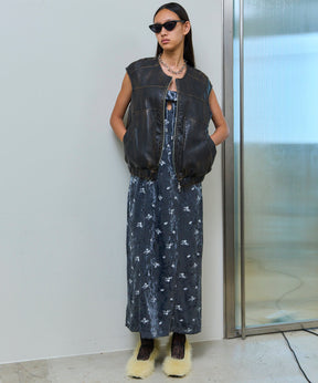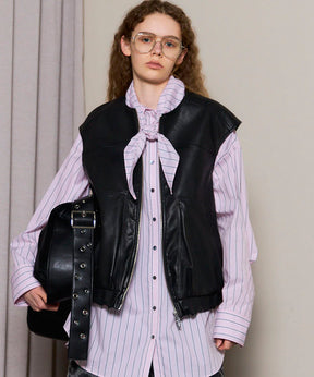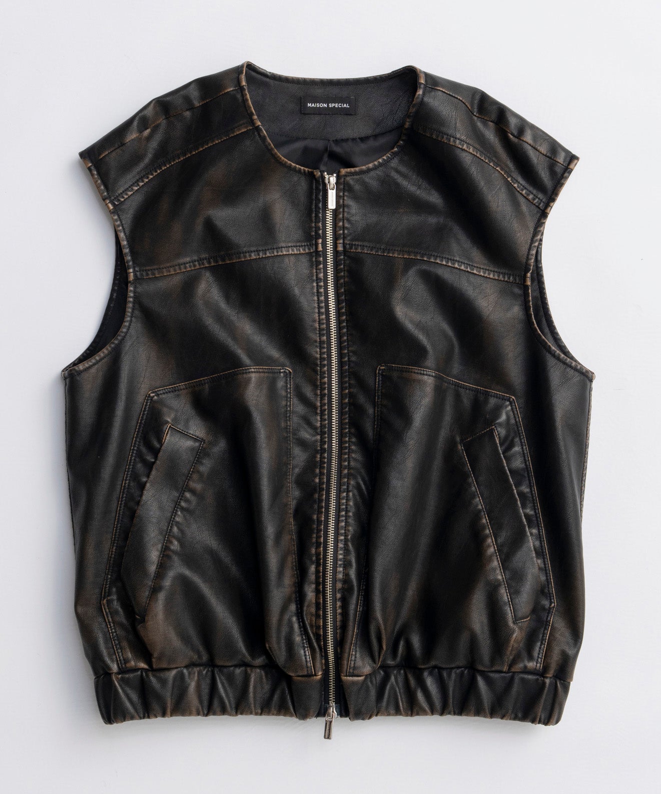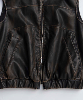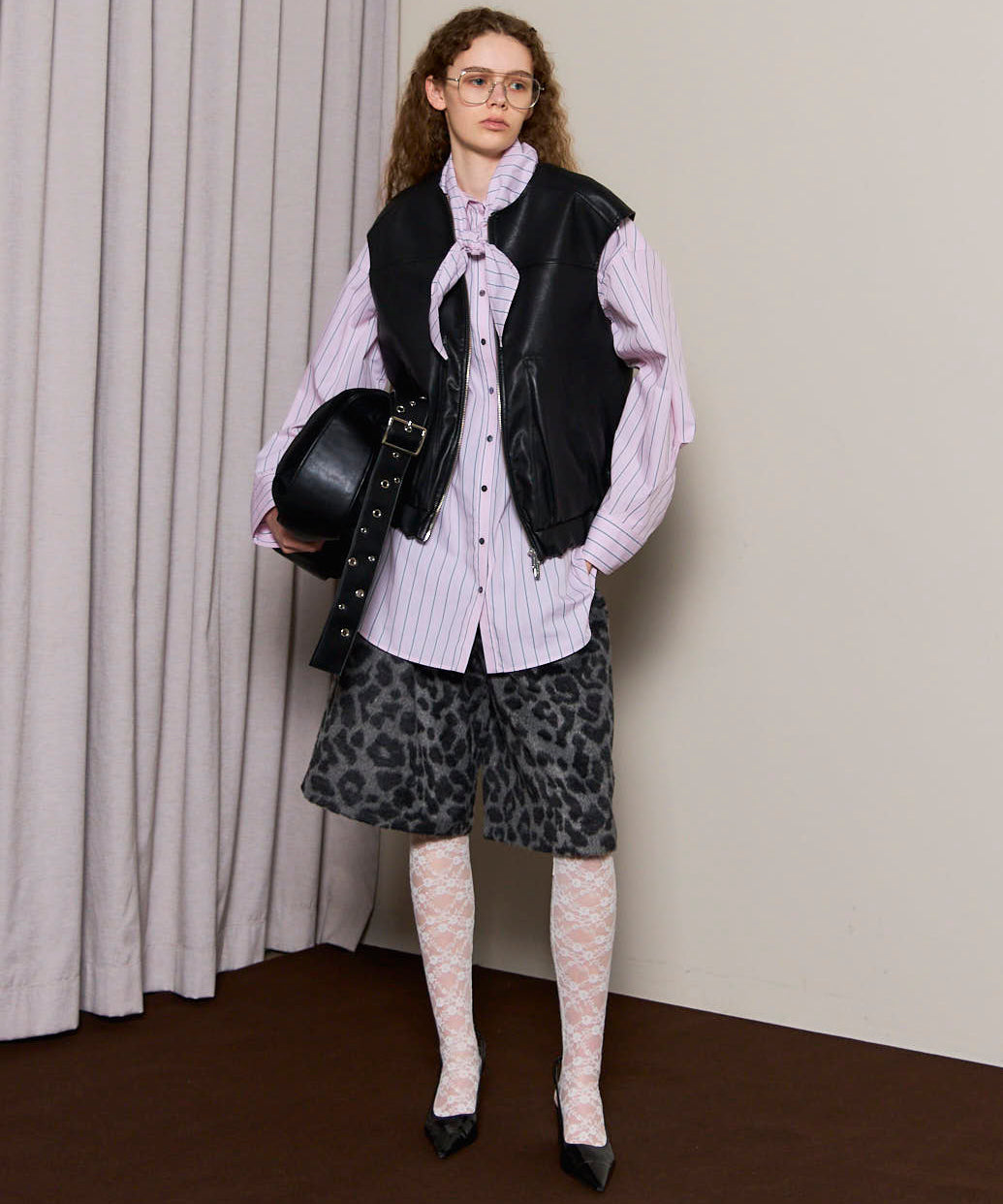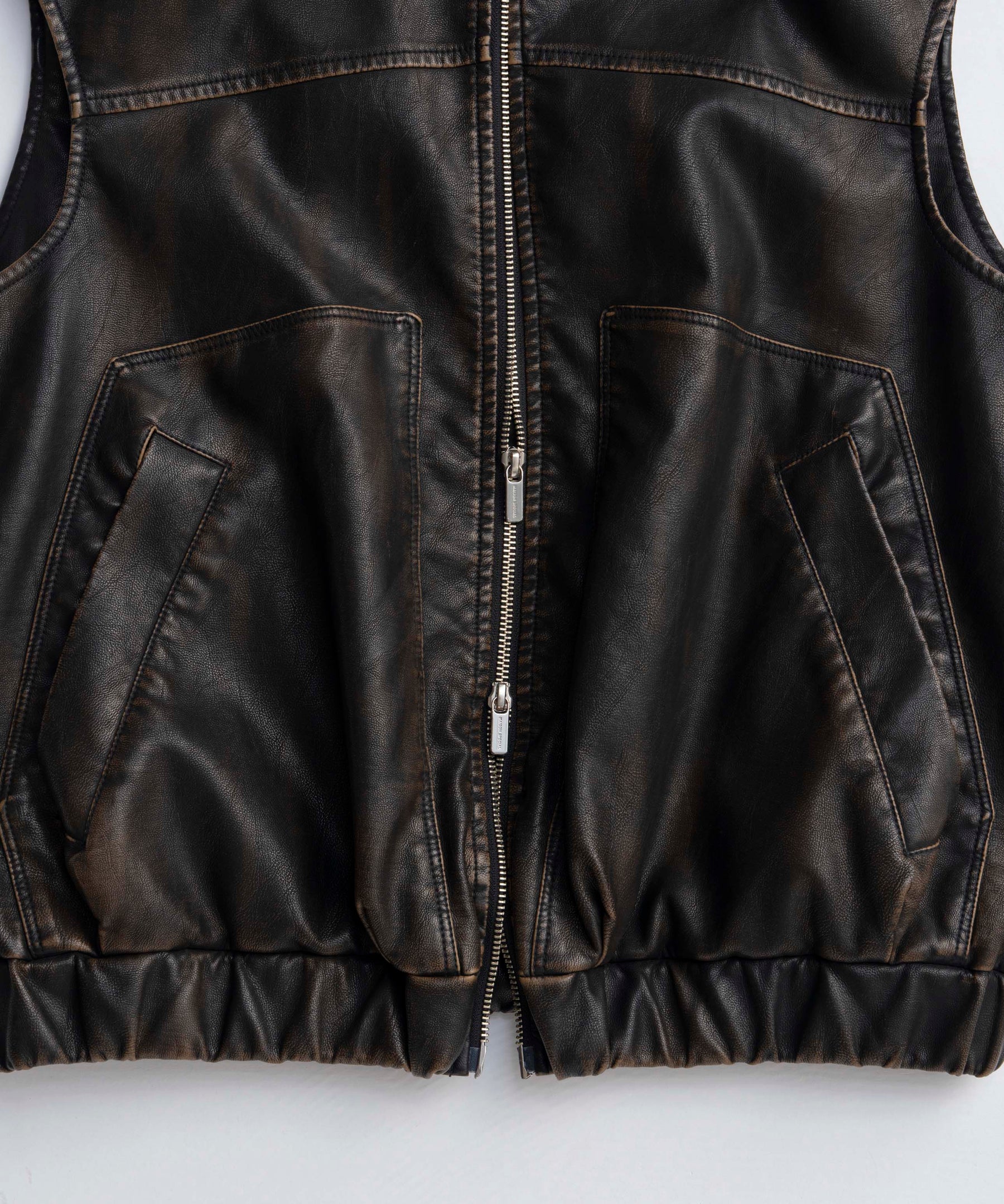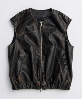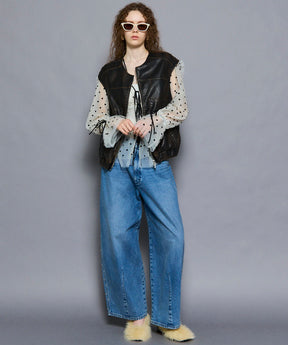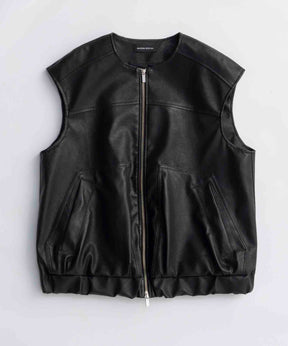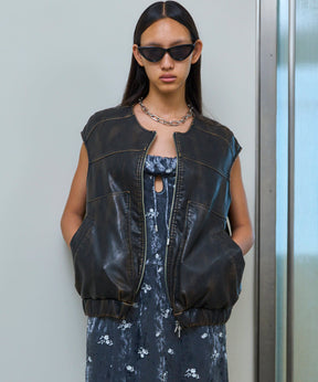 ・裾にギャザーを寄せることで、ふんわりと丸みのあるシルエットに仕上げた、甘さとエッジの絶妙なバランスがポイントのレザーベスト。