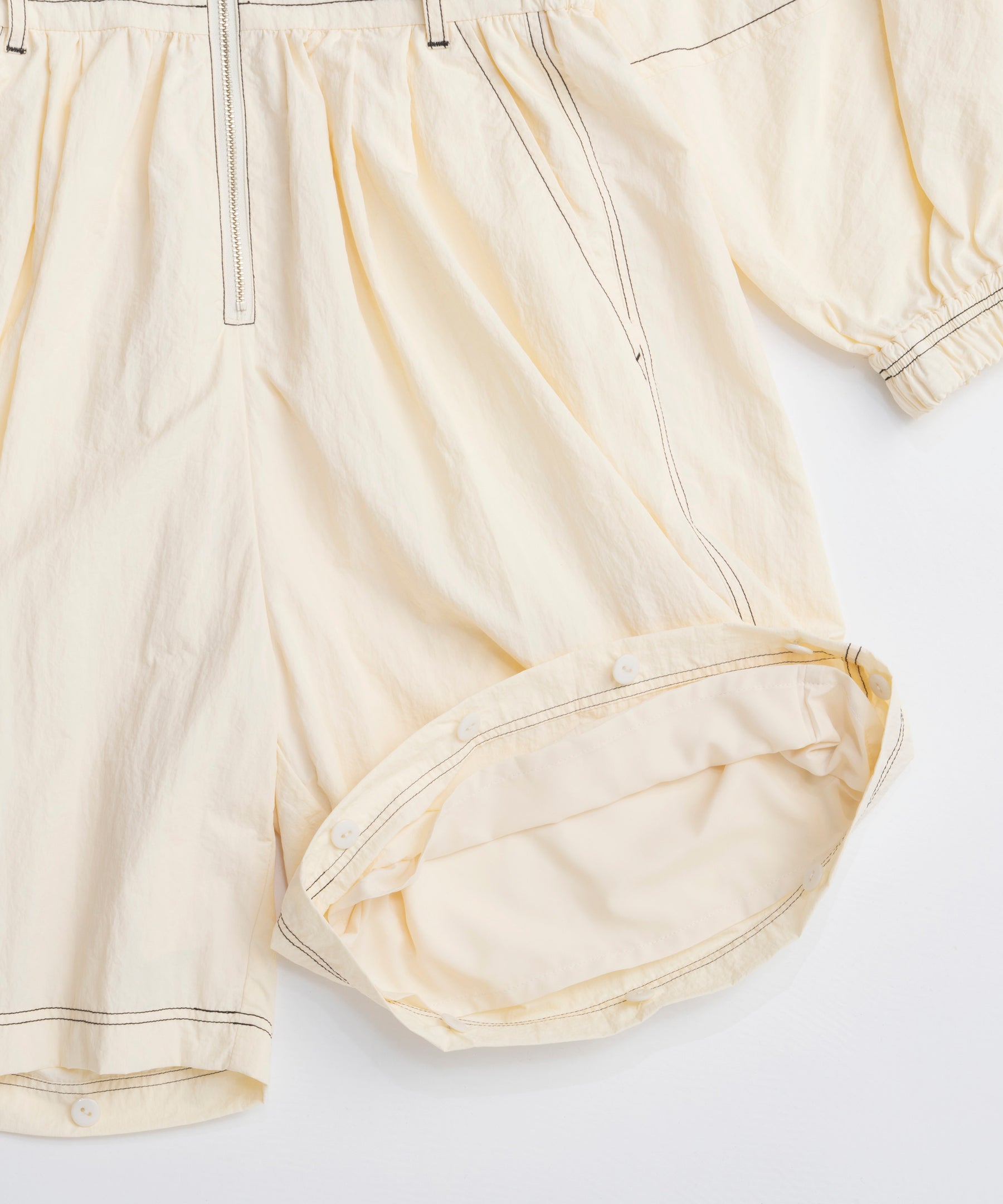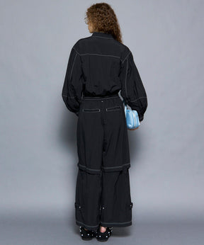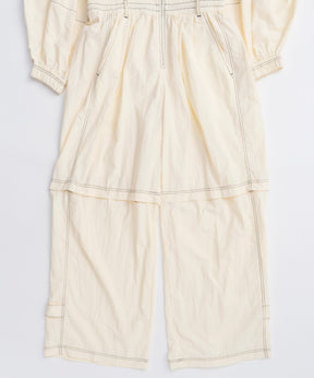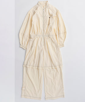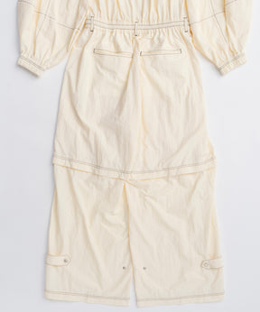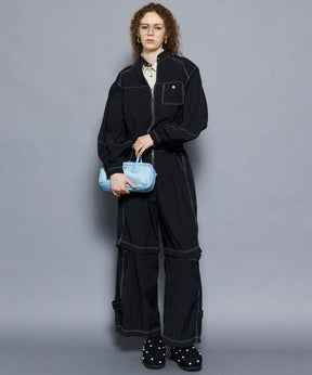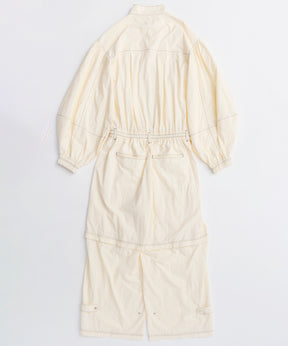 ・トレンド感と機能性を兼ね備えたこちらのオールインワンは、ワークウェアのディテールを取り入れつつも、柔らかい軽やかな素材感でフェミニンさをプラスした一着。