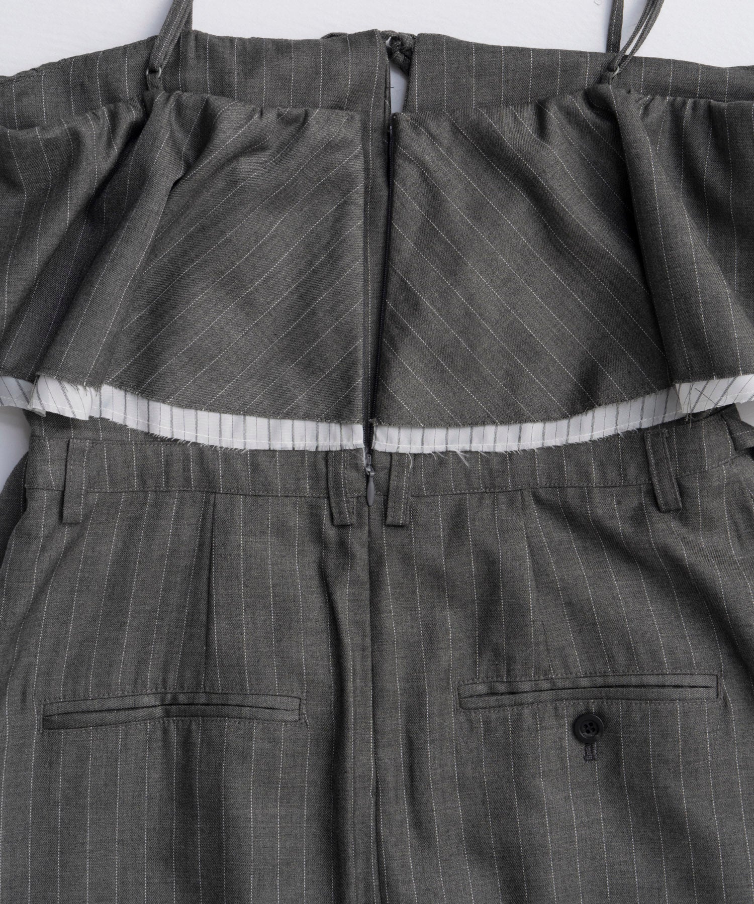 ・ピンストライプ柄のTR素材で仕立てた、スーチングの生地を使用。