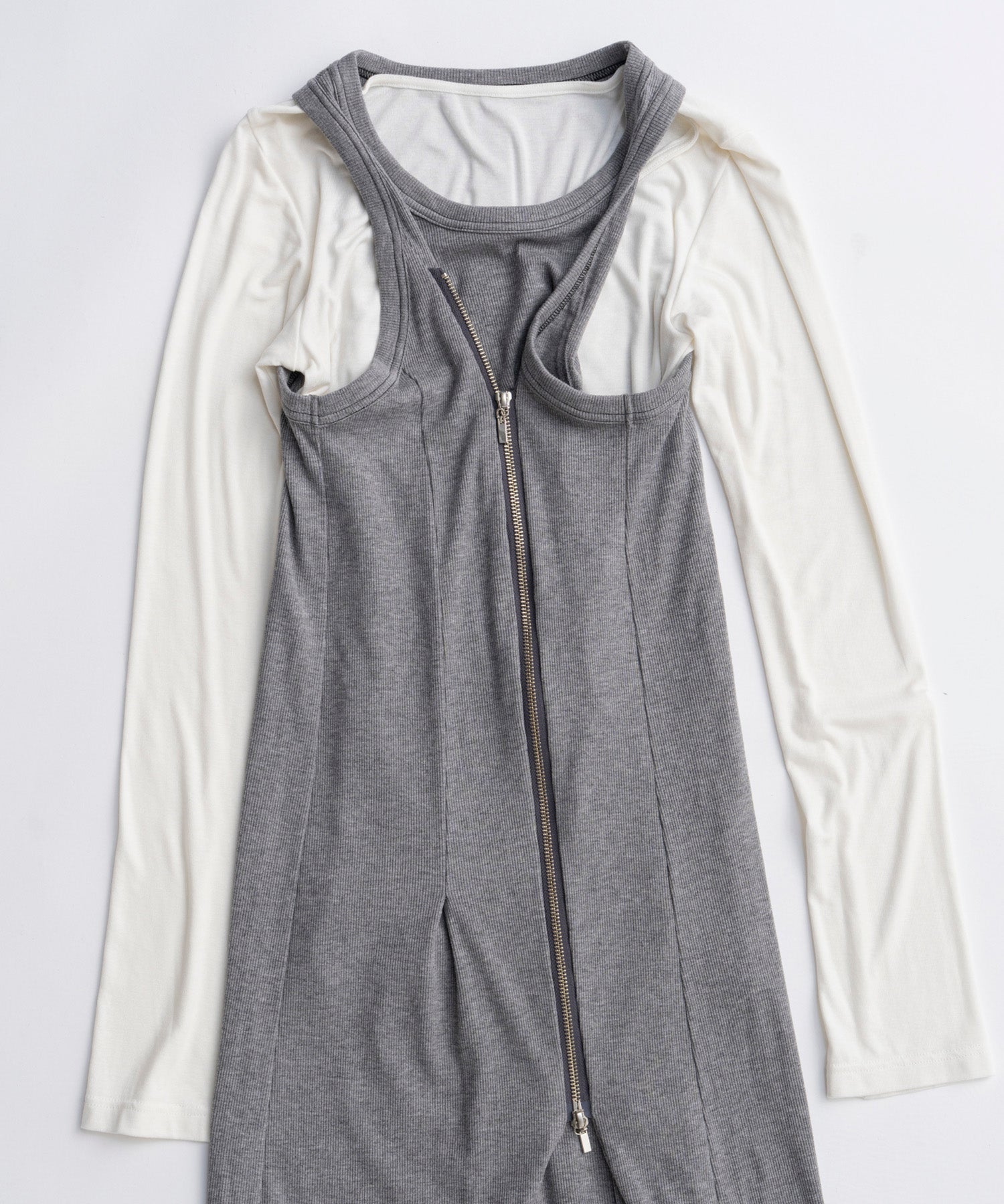 ・タンクワンピースと長袖カットソーの2枚がセットになった、一枚で印象を変えられる、着回し力抜群のレイヤードワンピース。