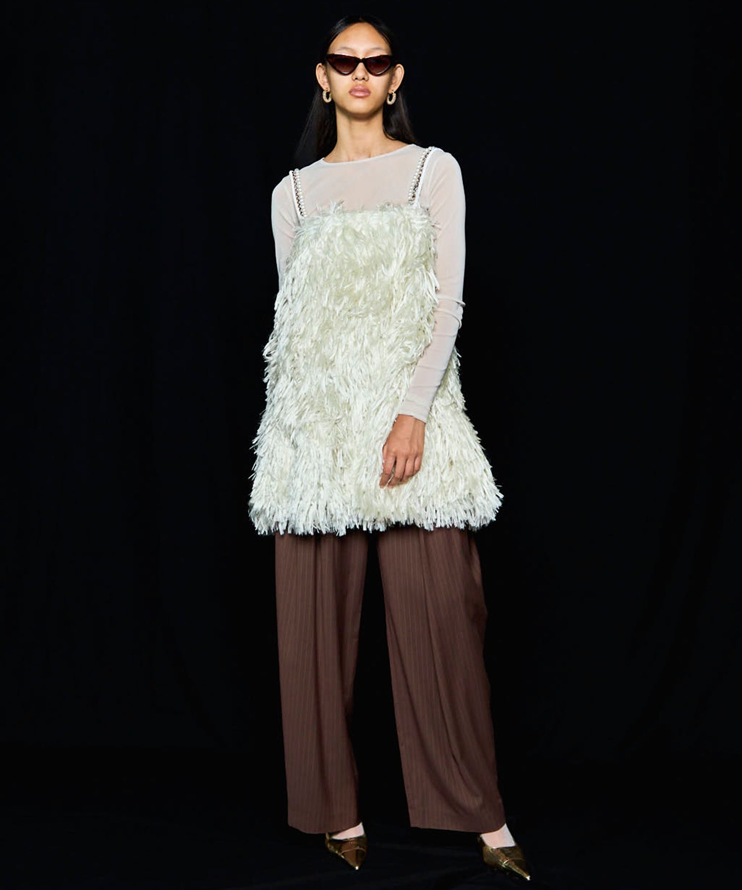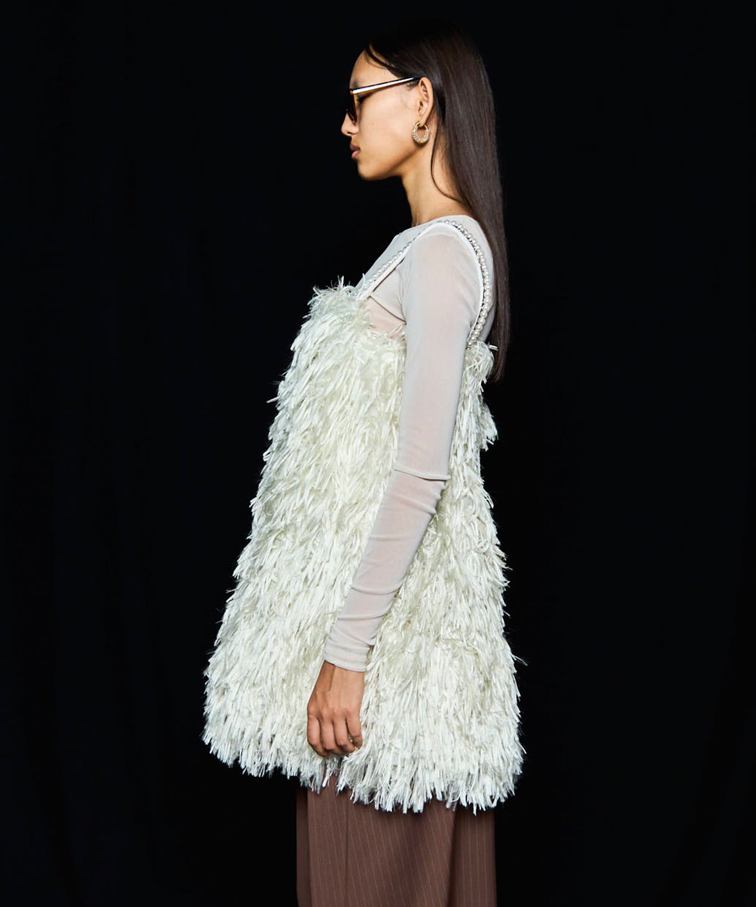 ・フェザーのような、ファーのような、ボリュームのある見た目がキャッチーなアイテム。