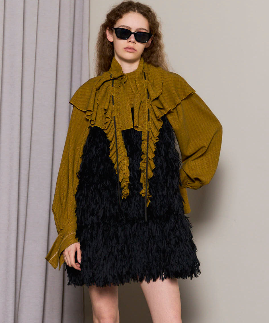 ・ファーよりも抑えめのボリュームでスタイリングへの取り入れやすさもポイントに。