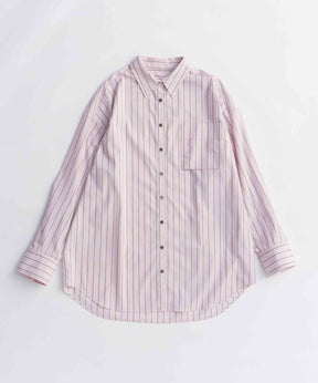 liquid ammonia(液体アンモニア)加工でソフトで光沢感のある風合いに仕上げたストライプのブロード生地。