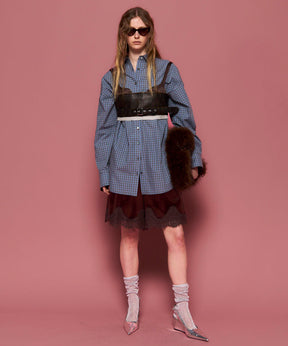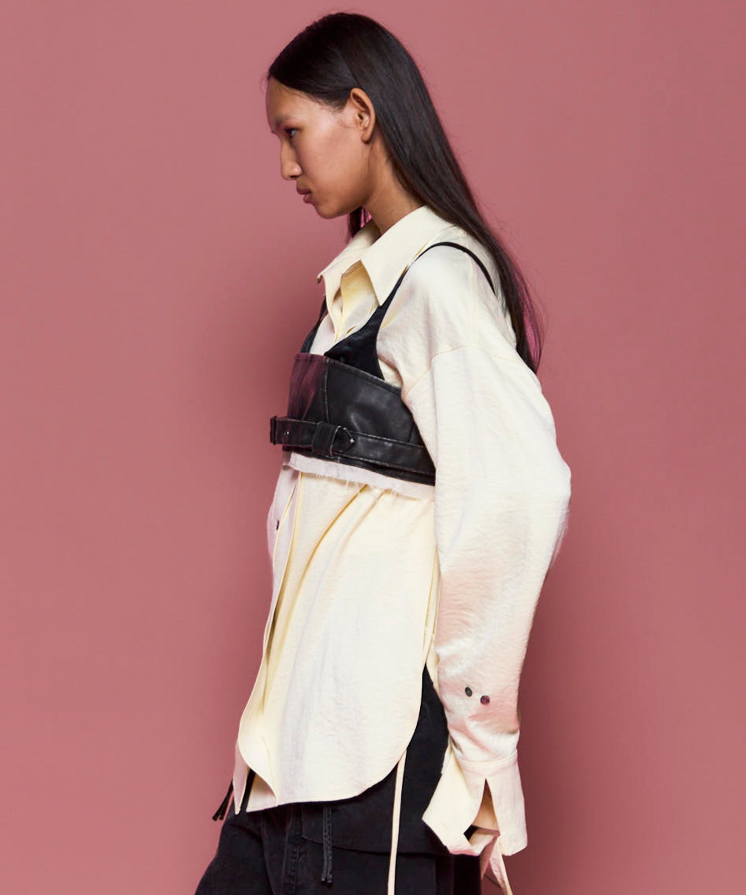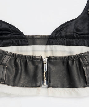・ヴィンテージライクな風合いが目を引くビスチェは、エッジの効いたスタイリングに欠かせない一着。