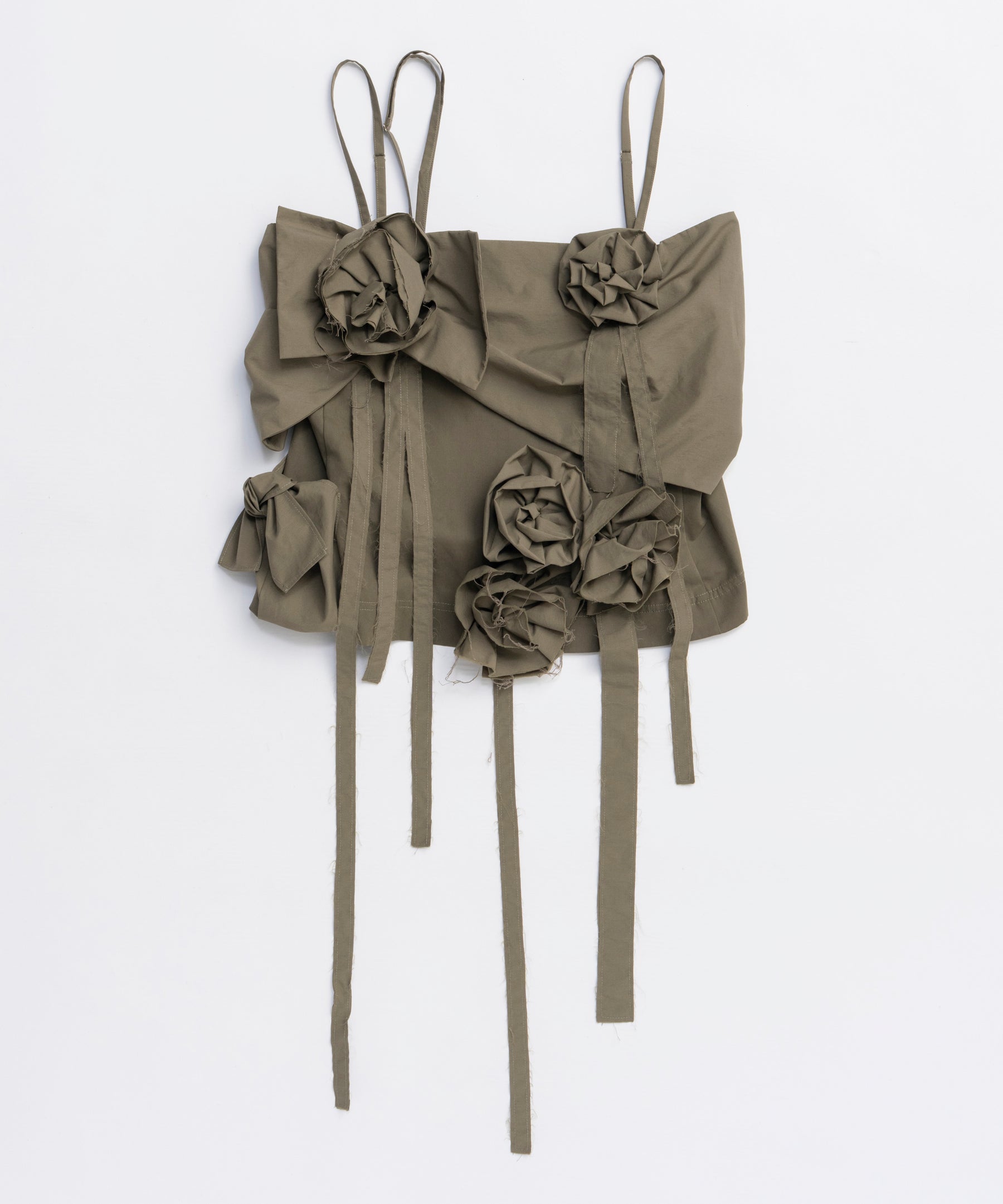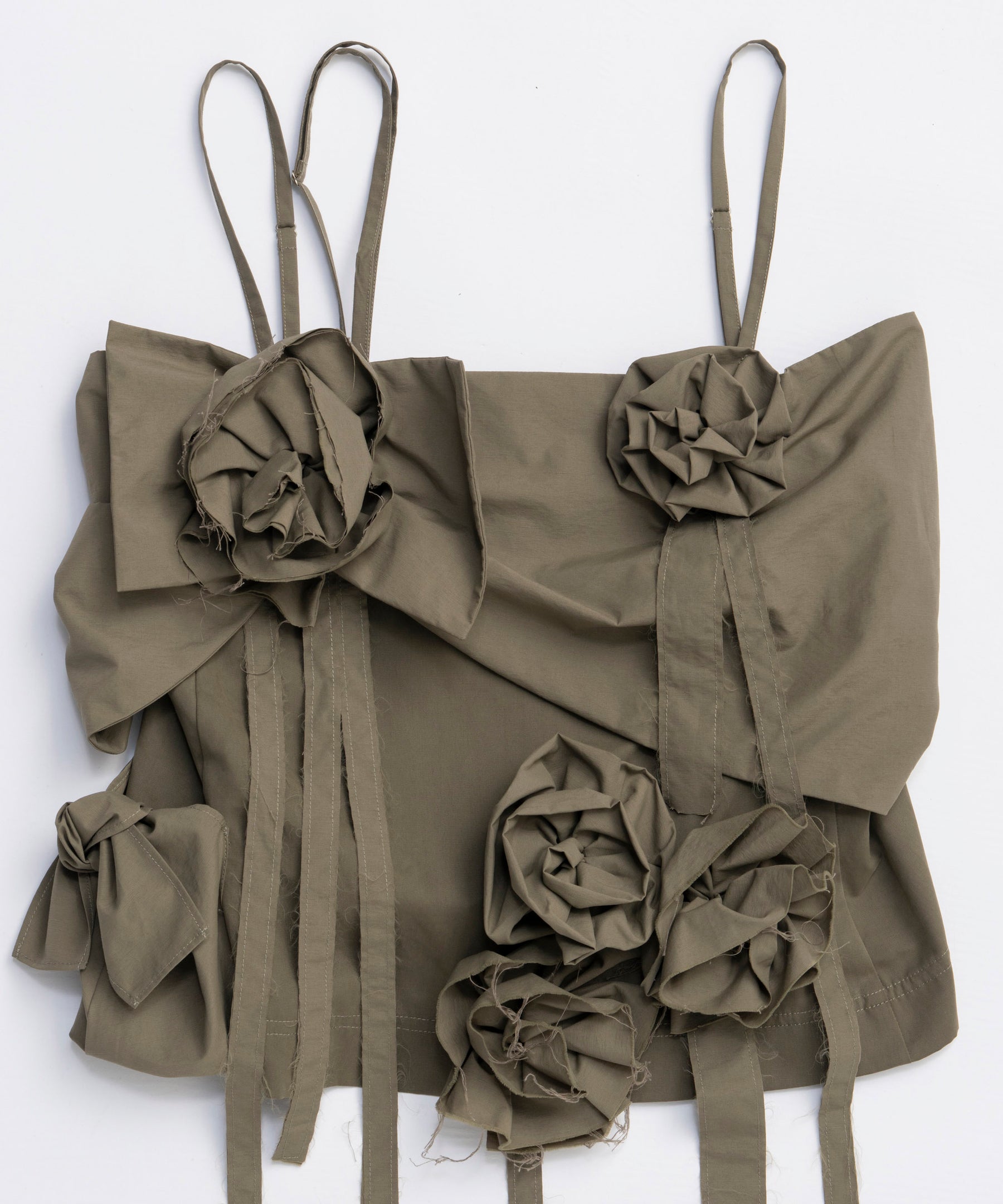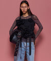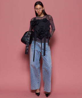 立体的な花びらが華やかさを添えつつ、素材の程よいハリ感が甘すぎない印象に。
