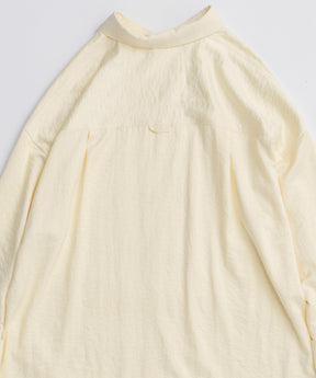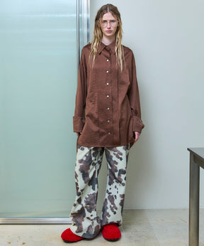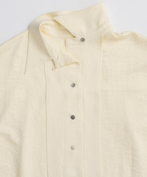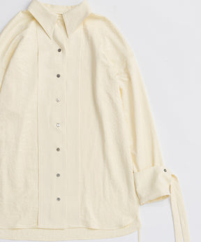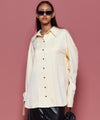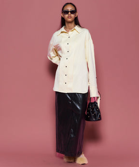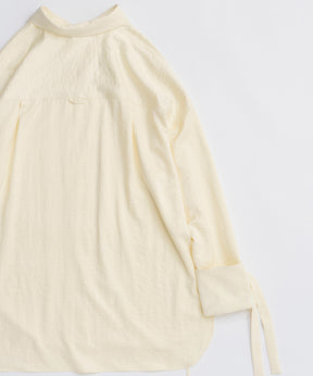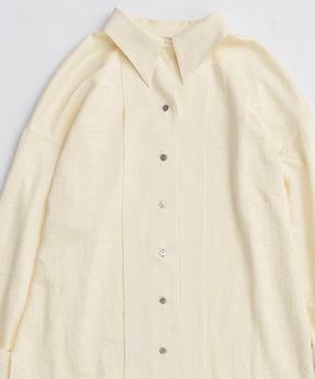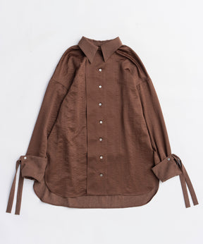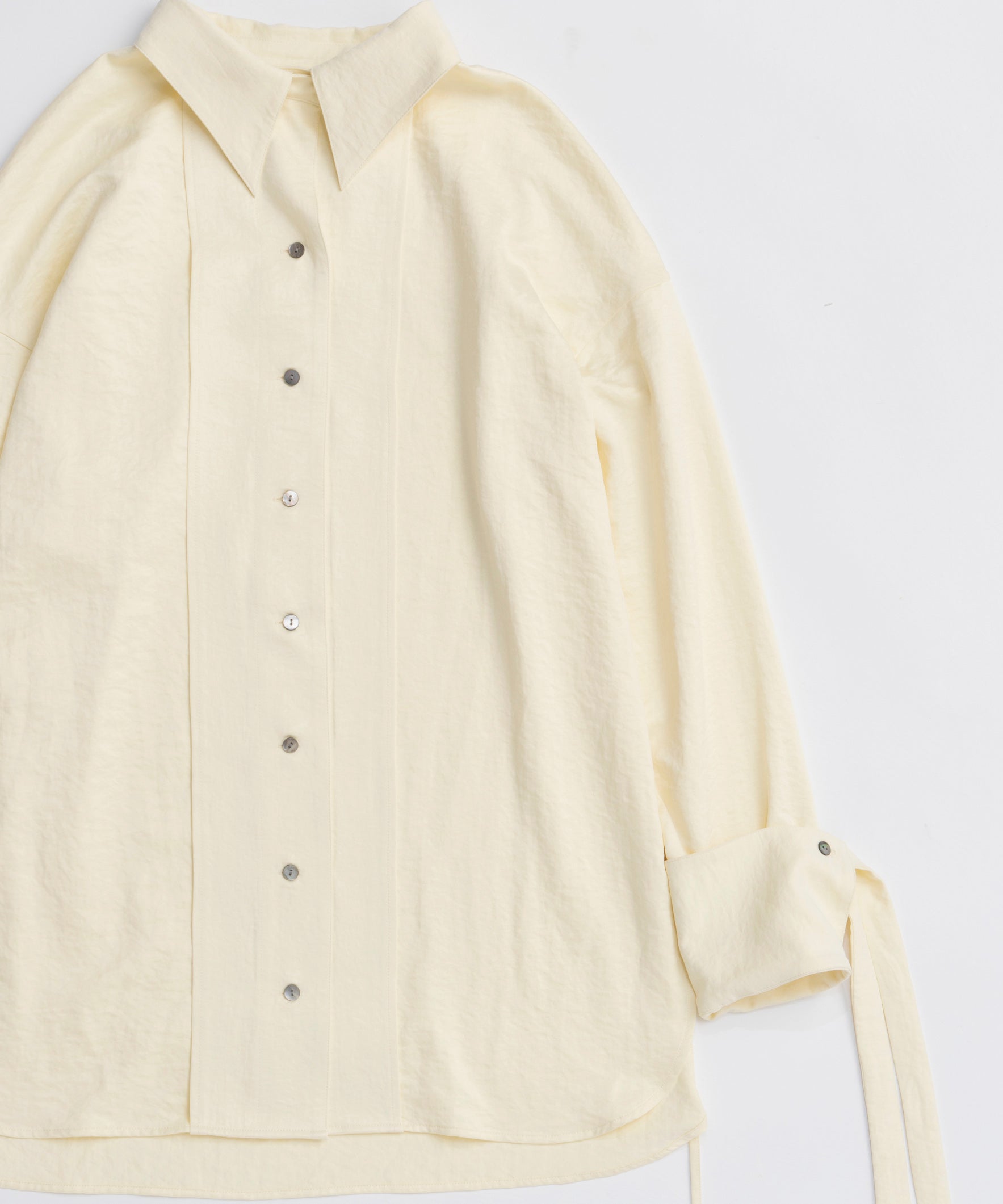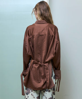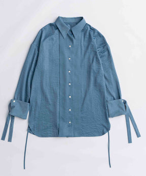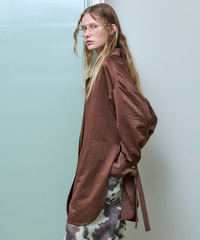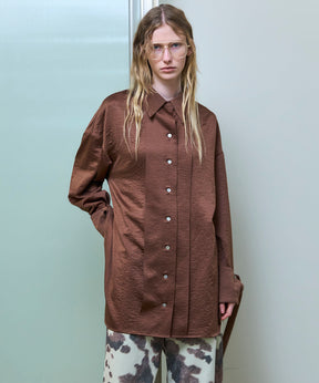 ・ゆったりとしたオーバーサイズながら、女性らしいラインも演出できるサテンシャツ。