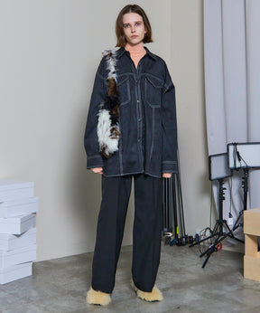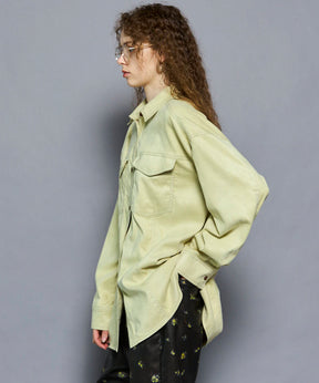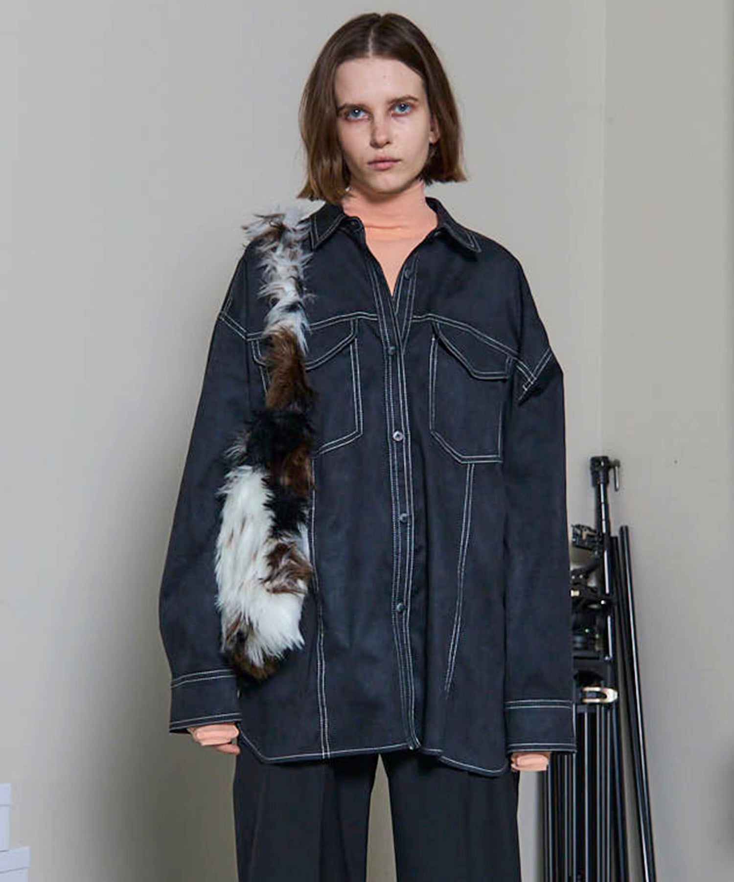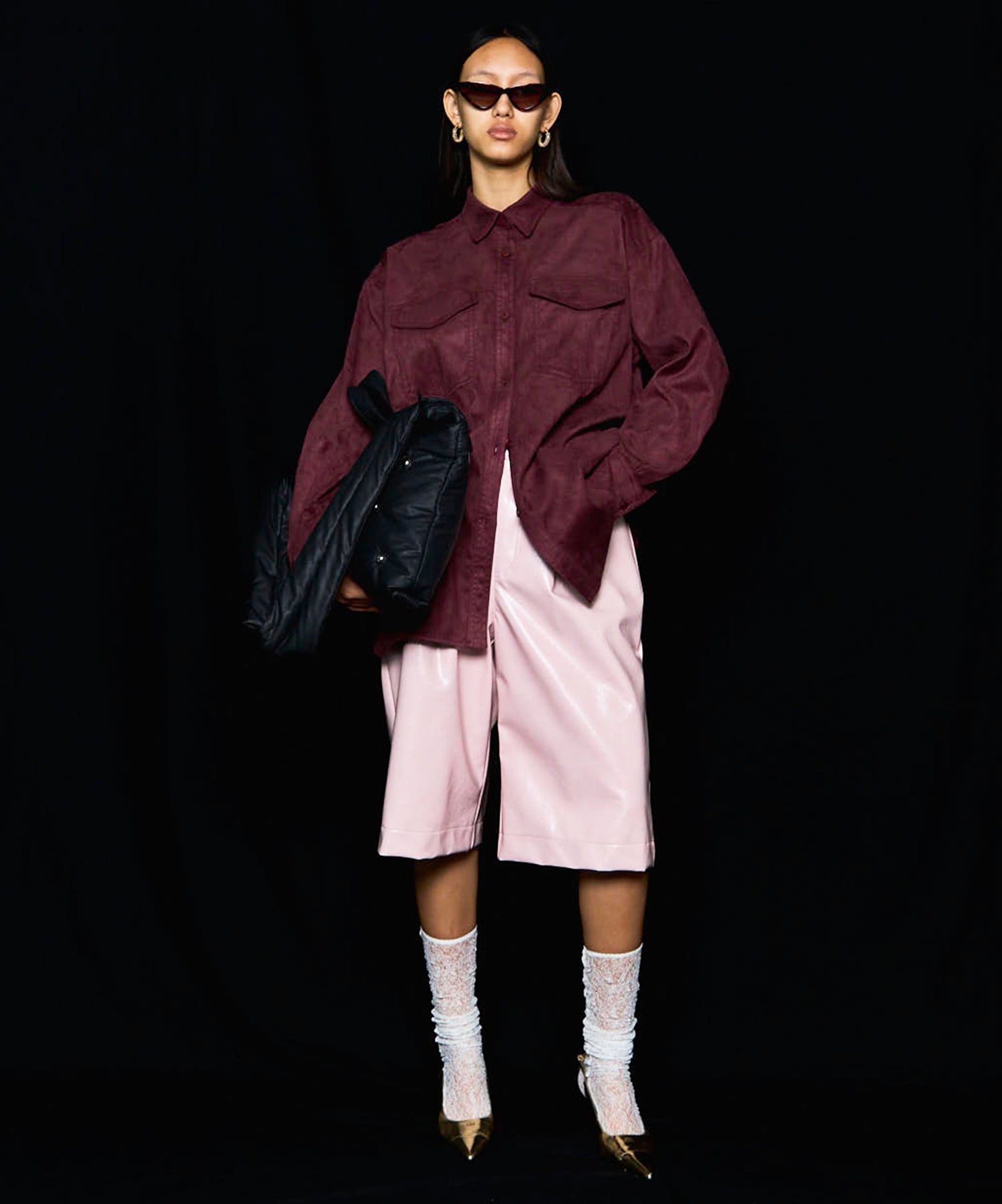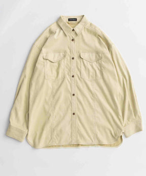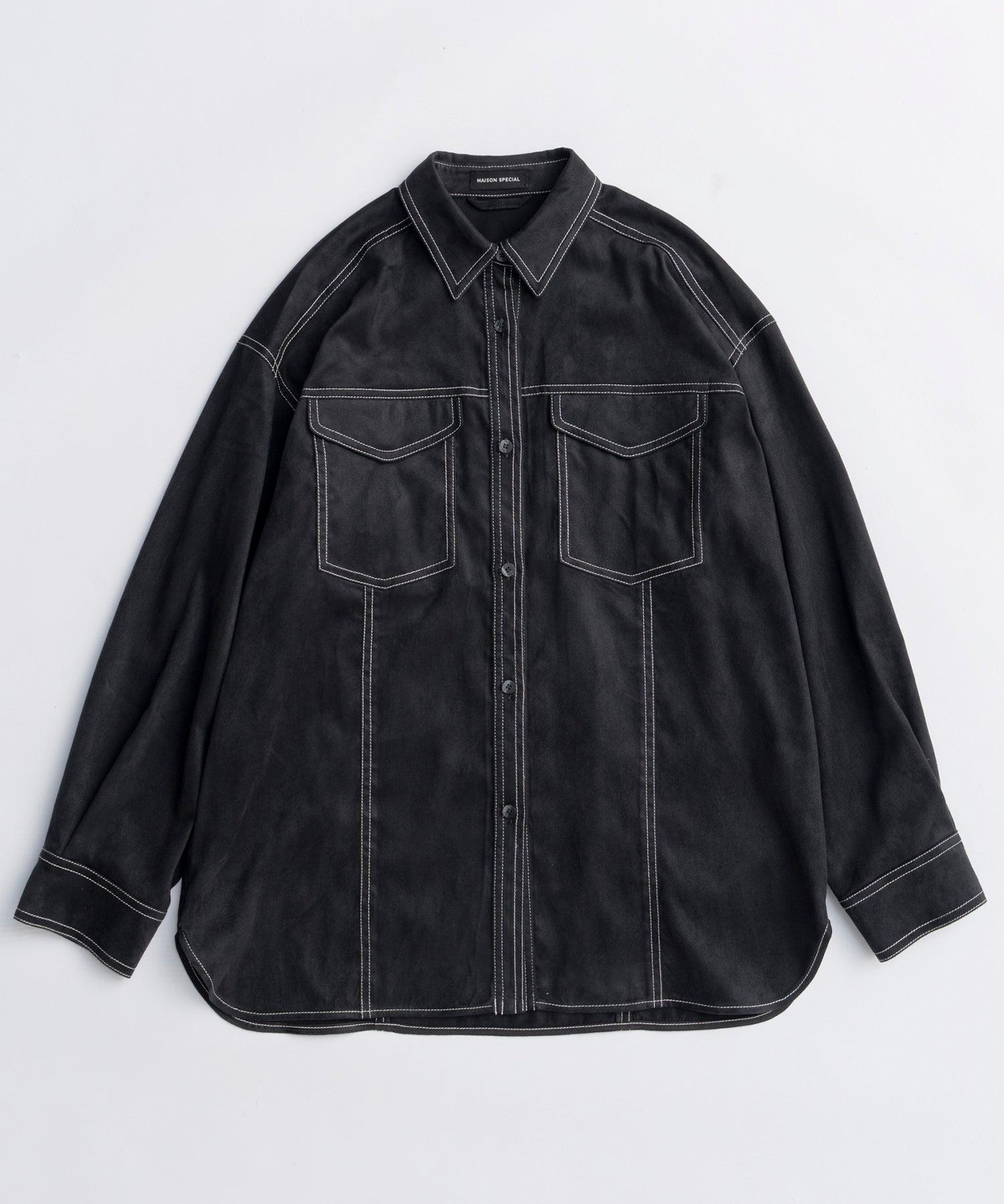 ・一見シンプルでベーシックなシャツながら、随所にモードなこだわりを散りばめたデザインのスウェードシャツ。
