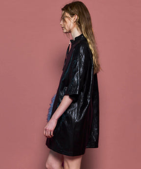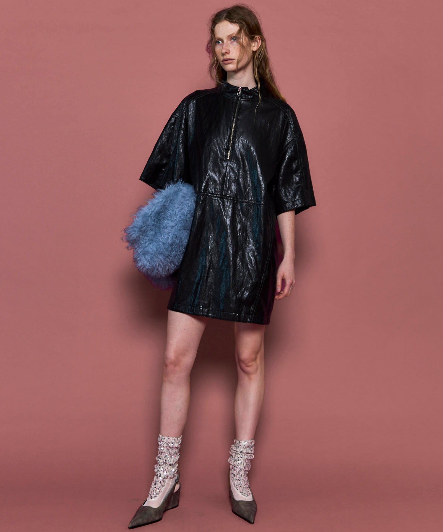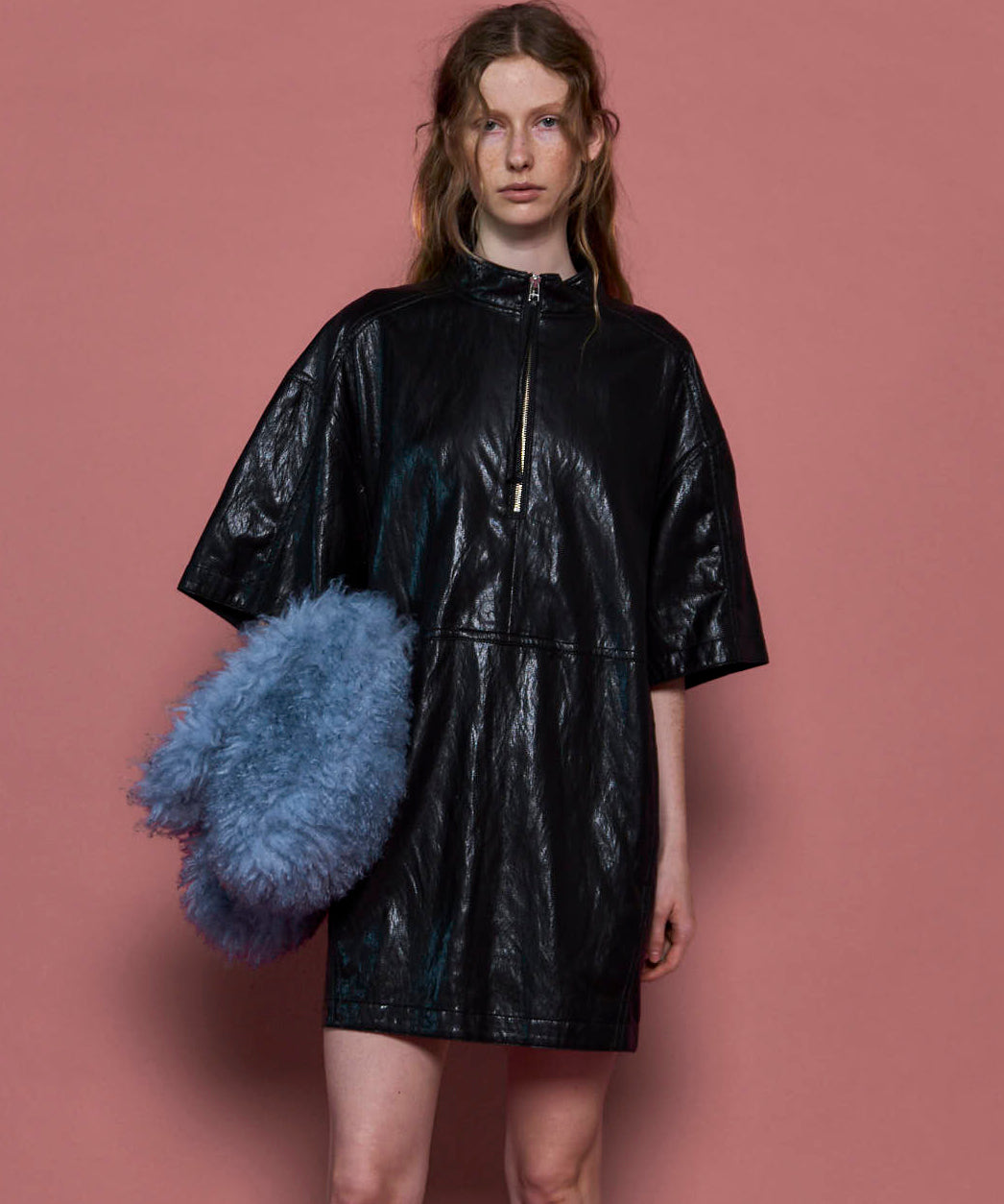 ・ヴィーガンレザーなのでケアが簡単なのは嬉しいポイントとなっており、サスティナブルな一面もある一着。