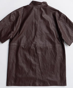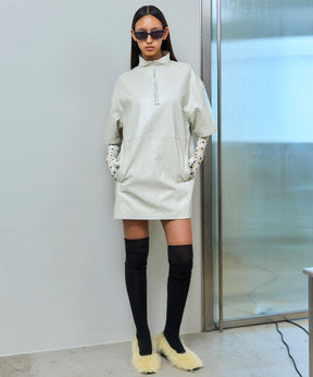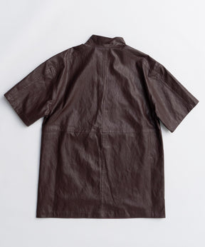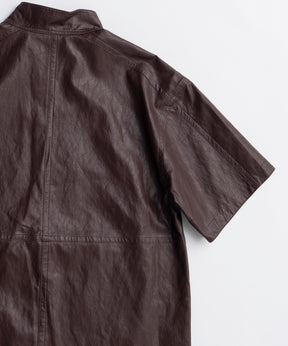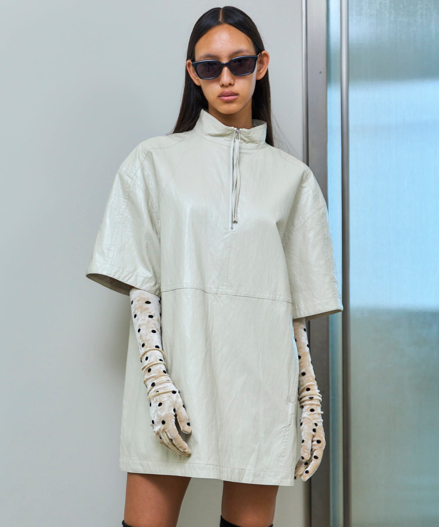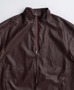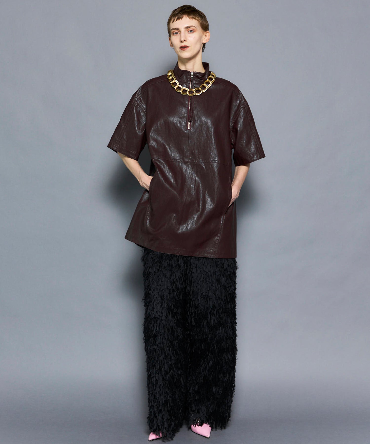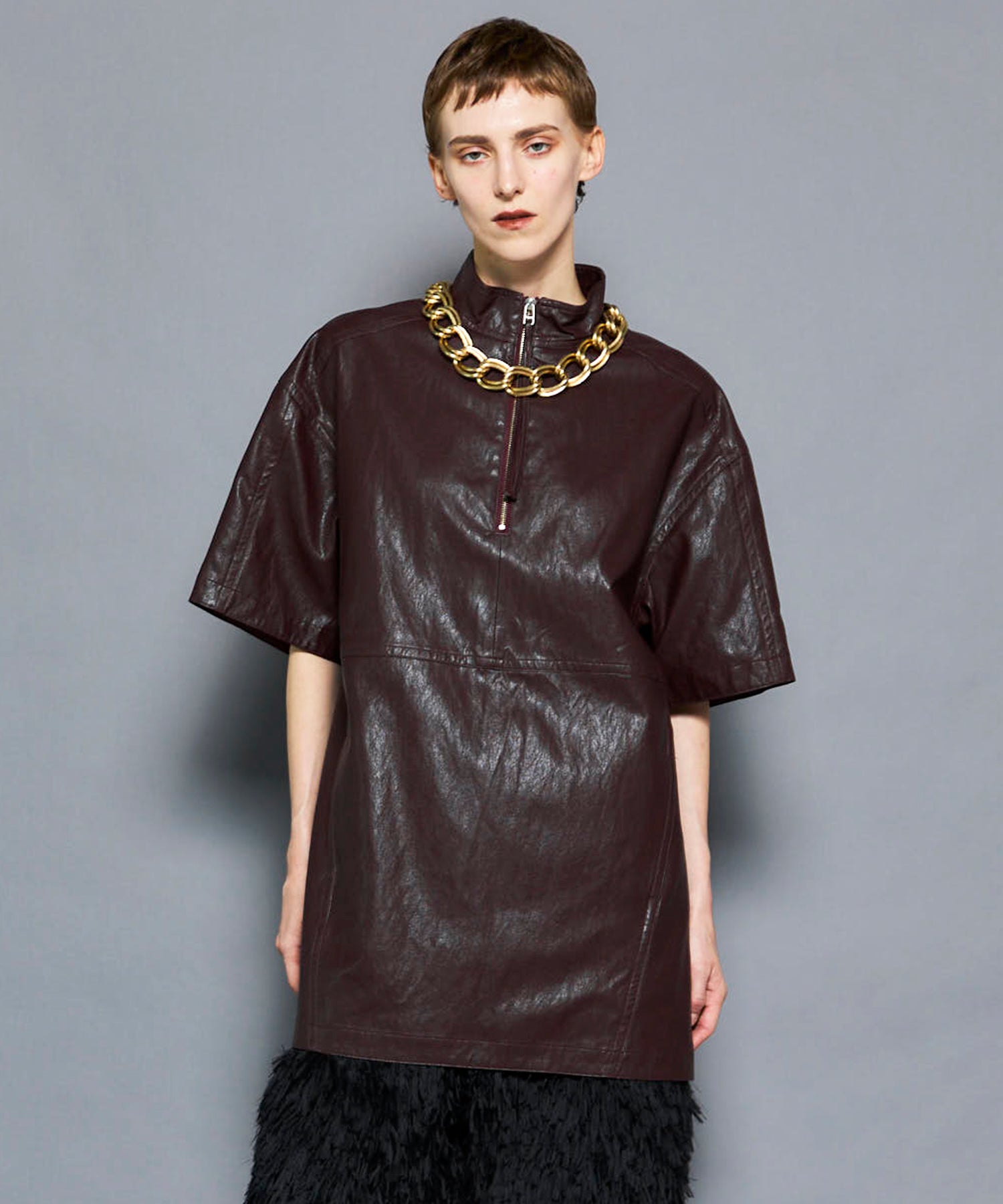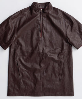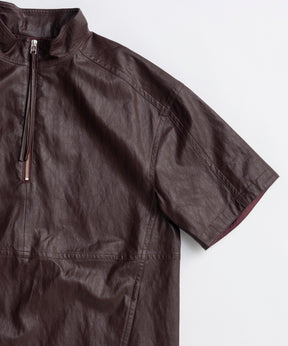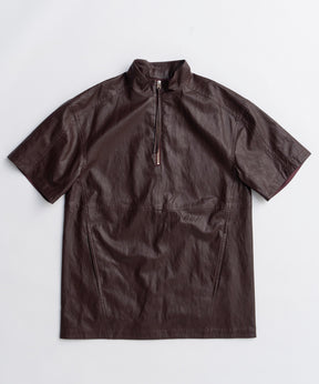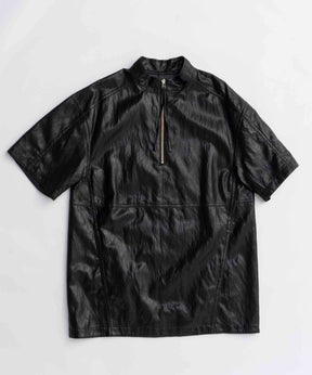 ・洗練された印象を与えるハイネックに、スポーティなムードを添えるハーフジップ仕様がポイントのレザートップス。