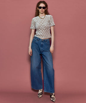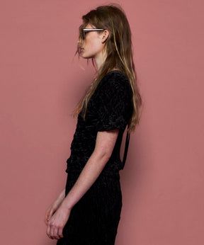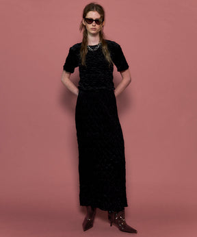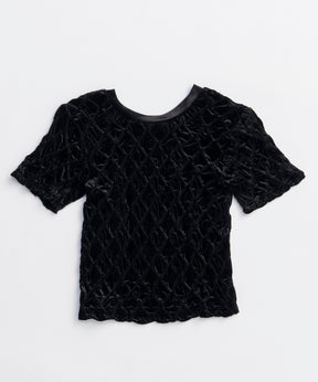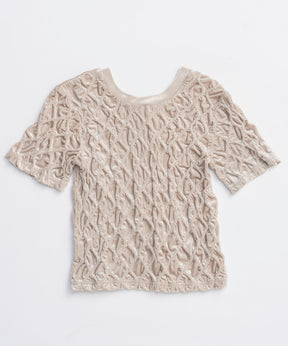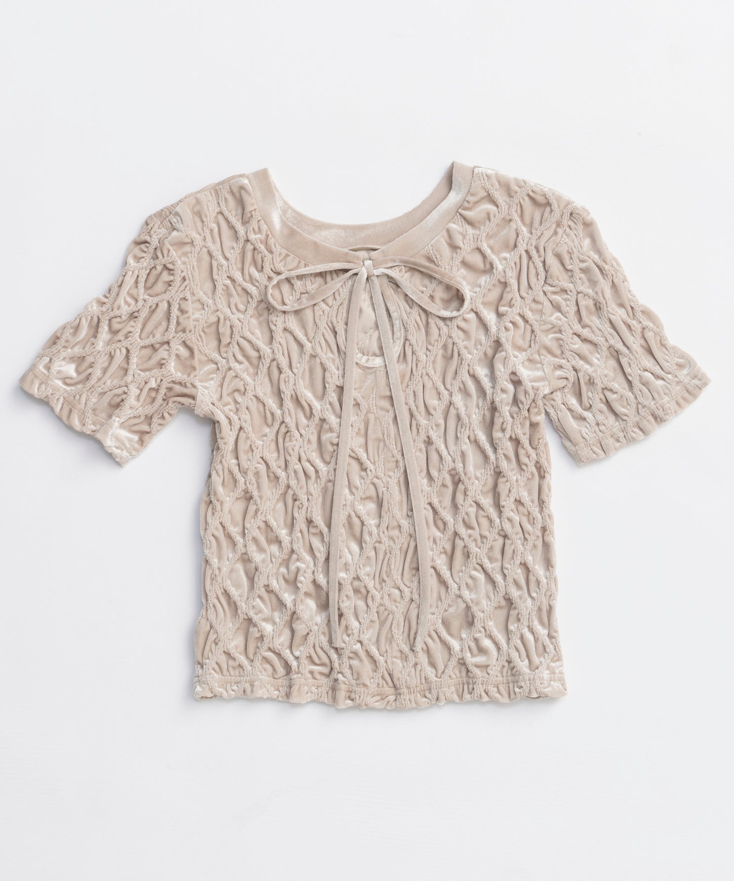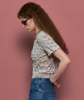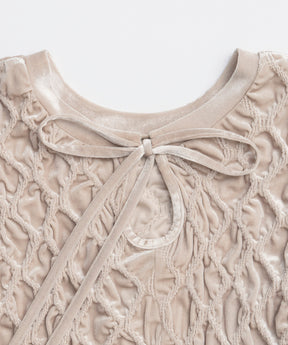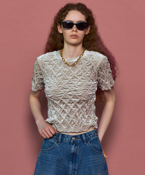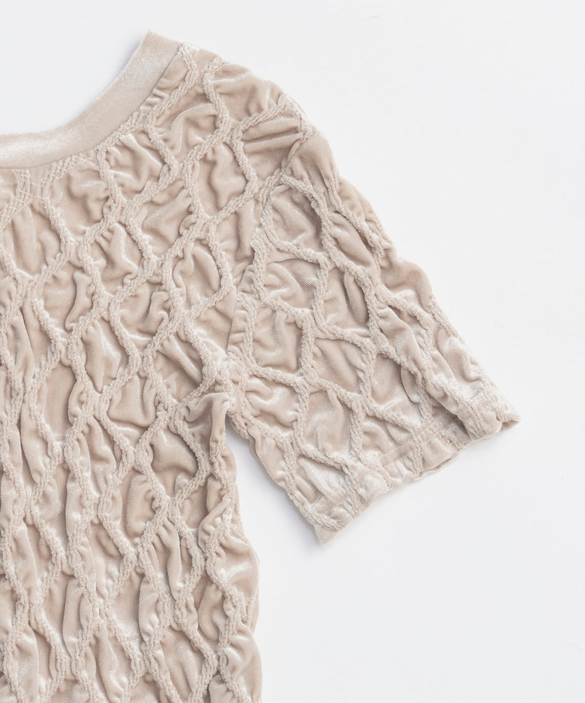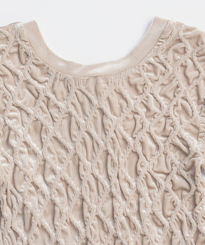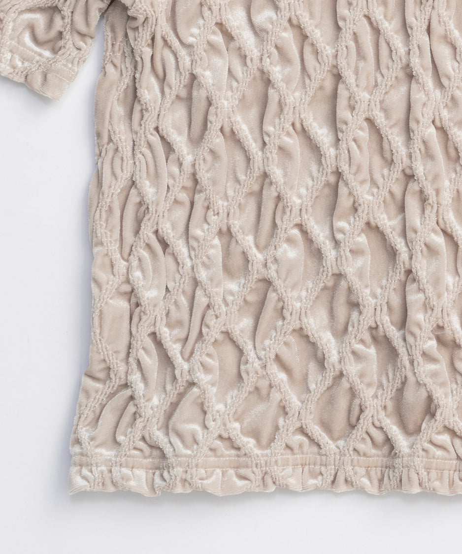 ・表面に凹凸のあるオリジナルのダイヤ型シャーリング加工を施すことで、身体に程よくフィットしながらも、肌離れがよく軽やかな印象に。