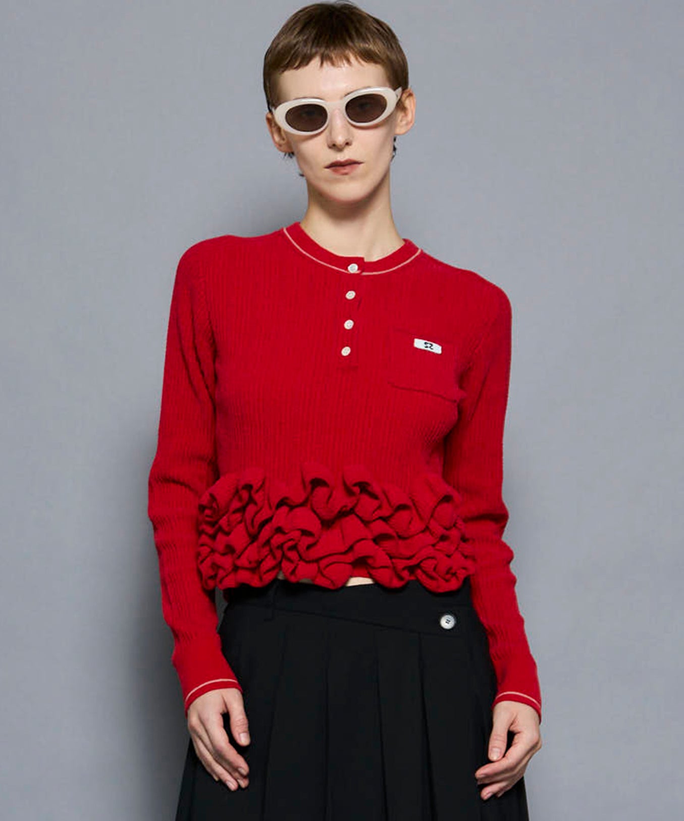 ・裾に立体的なバブルモチーフをあしらった、遊び心溢れるニットトップス。