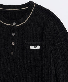 ・モール糸で編み立てた独特の光沢と滑らかな肌触りが特徴のニットアイテム。