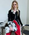 Material:〈ニット部分〉ポリエステル49%、毛32%、アクリル19%、〈布帛部分〉ポリエステル70%、レーヨン30%